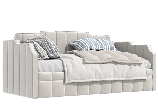 Диван-кровать Бергамо для современной детской комнаты. Дизайнерская модель - идеальное решение для вашего интерьера. Стильный и комфортабельный, он сочетает в себе изысканный дизайн и современные линии. Днем это удобный диванчик, а ночью полноценное ортопедическое спальное место. Изготовление на заказ дает возможность выбрать размер, который идеально впишется в ваш интерьер. Мы работаем с ведущими поставщикам дизайнерских тканей, поэтому сможем предложить вам на выбор большой каталог тканей по цвету и текстурам. Если есть необходимость, наши менеджеры могут приехать к вам, чтобы на месте подобрать цвета, это сэкономит ваше время и упростит выбор цвета.