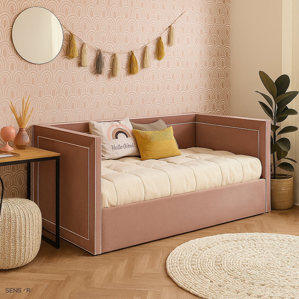 Диван-кровать Данте современная модель, которая гармонично впишется в детскую как для подростка, так и для малышей. Для совсем маленьких можно добавить защитный бортик. Декоративный кант добавляет модели стиля, он может быть как контрастным, так и в цвет кровати.