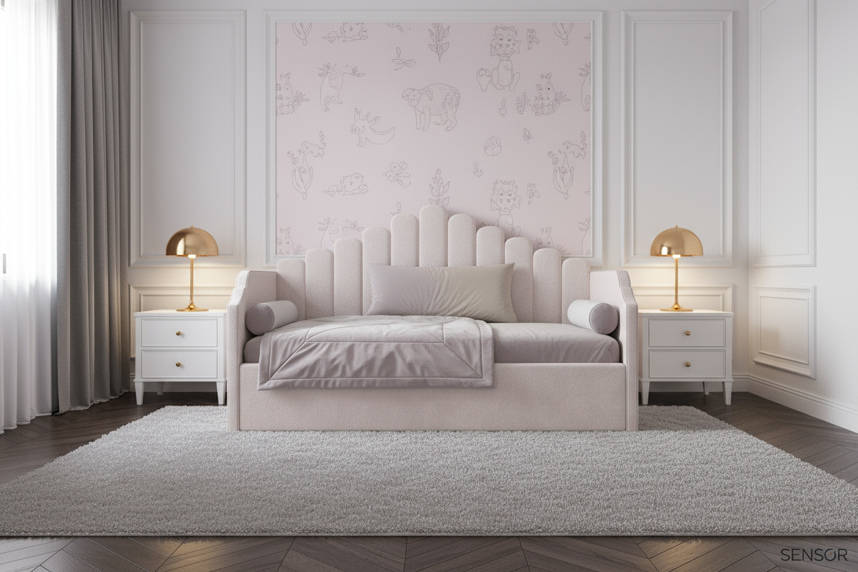Диван-кровать Моана стильная дизайнерская модель для детской. Детская комната особенная, там должны царить любовь, доброта и забота. Мечта любого ребенка красивая и оригинальная кровать, ведь часто именно она становится центральным элементом детской комнаты. А диван-кровать - это два в одном! Правильное спальное место на ортопедическом матрасе ночью+ удобный красивый диванчик днем.