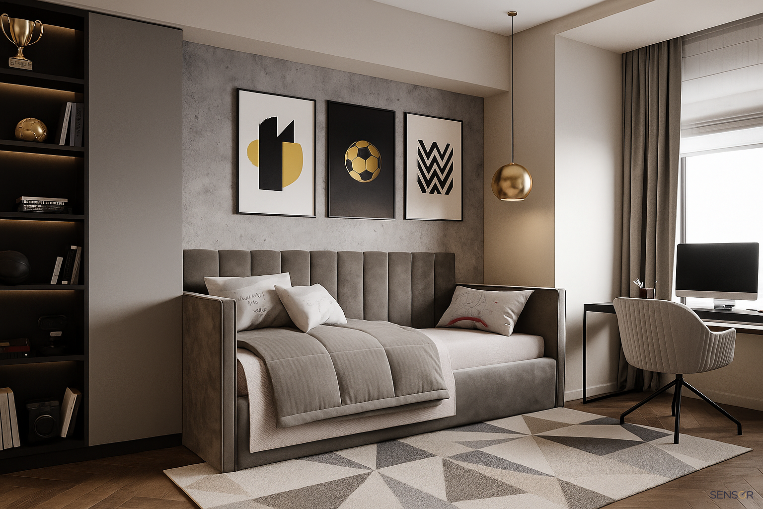 Оскар kids – подростковая кровать, сочетающая в себе удобство и функциональность. Стильный дизайн, где каждый элемент собран и обтянут вручную. Элементы продублированы и на царгах кровати. Модель подойдет как для девочек, так и для мальчиков.
