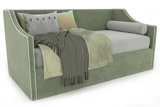 Диван-кровать Палермо стильная дизайнерская модель для детской комнаты. Никаких лишних деталей, плавные линии боковин,отделка декоративными кантами. Универсальный дизайн подойдёт как для девочки, так и для мальчика Благодаря простым формам можно поиграть текстурами тканей, которые прекрасно раскроются на ровных деталях. Дизайнерские ткани на ваш выбор в большом ассортименте.