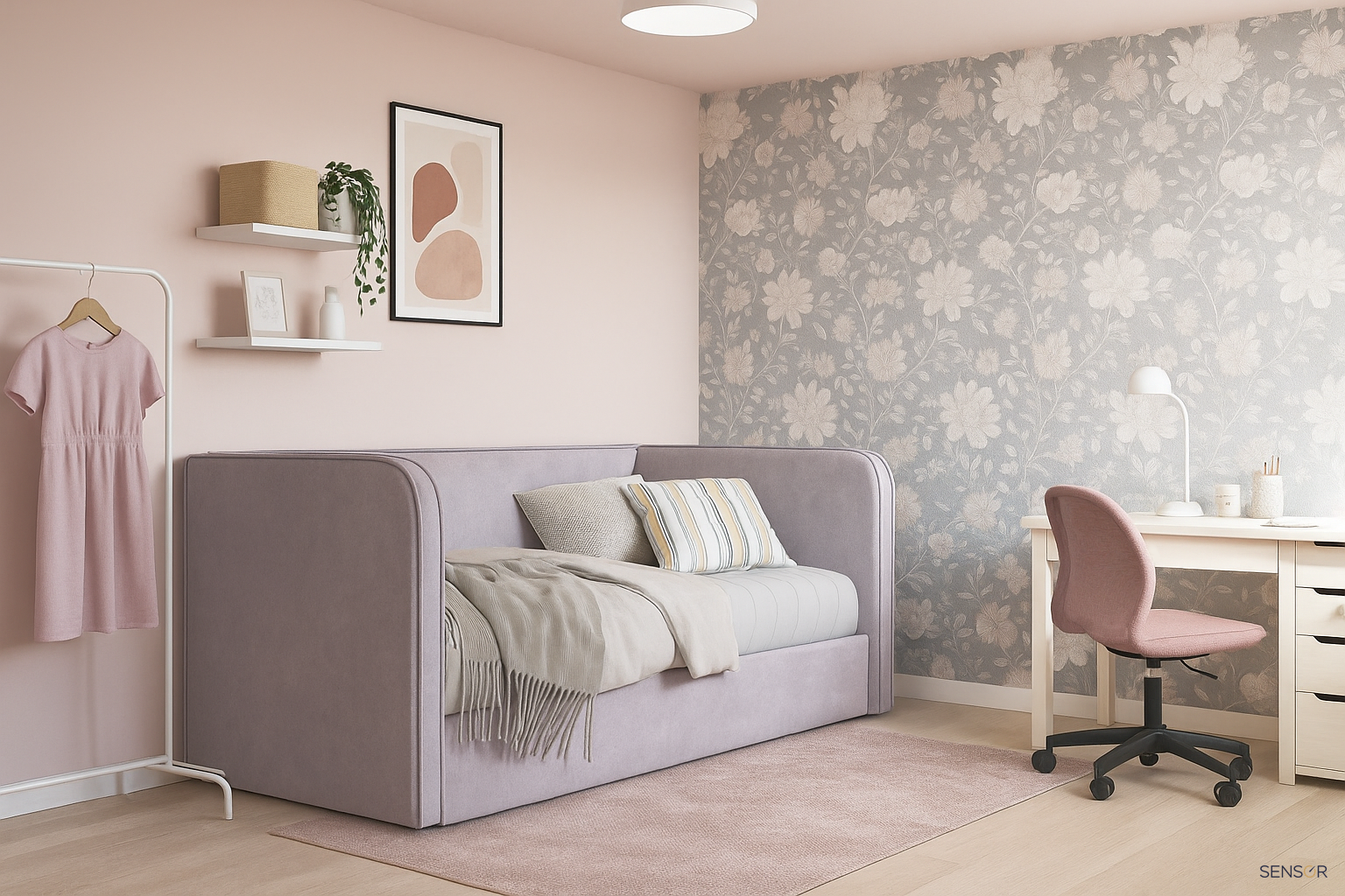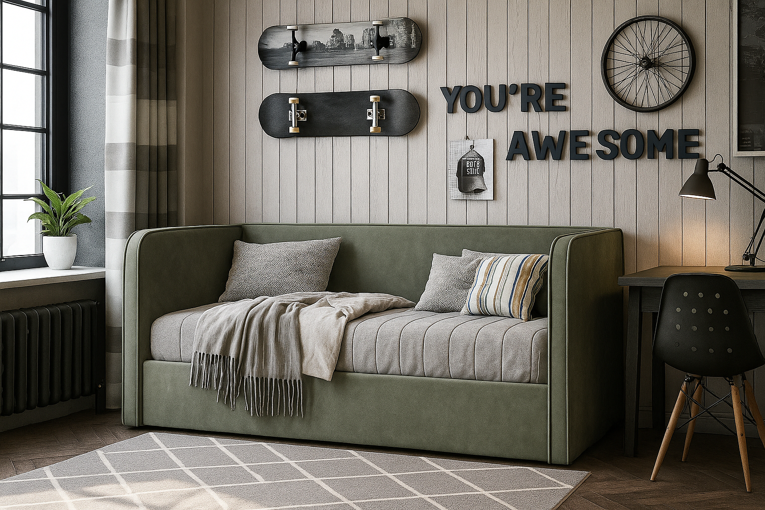 Диван-кровать Руби kids с лаконичным дизайном. Максимальный комфорт обеспечивает модель с мягкими спинками с обоих сторон, она одновременно уютная и безопасная. Руби Кидс прекрасно впишется в любой современный интерьер детской комнаты. Стиль минимализм.