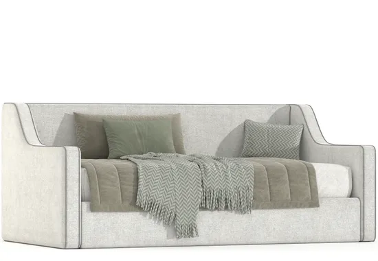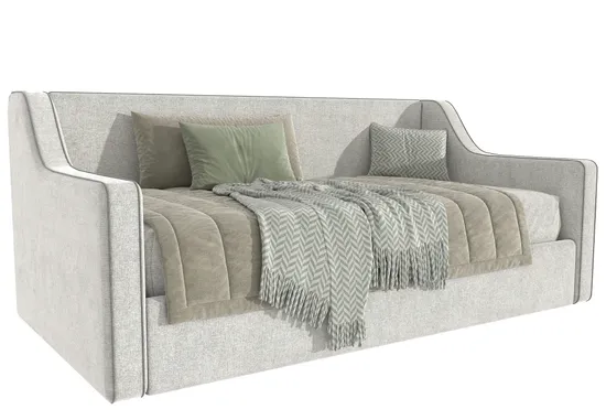 Диван-кровать Тахо для современной детской комнаты. Ничего лишнего, плавные изгибы боковых спинок придают диванчику лёгкости, тем самым делая  визуально пространство комнаты более открытым. Декоративные канты подчёркивают формы диванчика, их можно сделать как однотонными так и контрастными. Задняя спинка по длине может быть строгой, прямой, а может добавить интересных акцентов в комнате, если выбрать форму волны. Интересная модель в стиле минимализма прекрасно впишется в комнату как для девочки так и для мальчика.