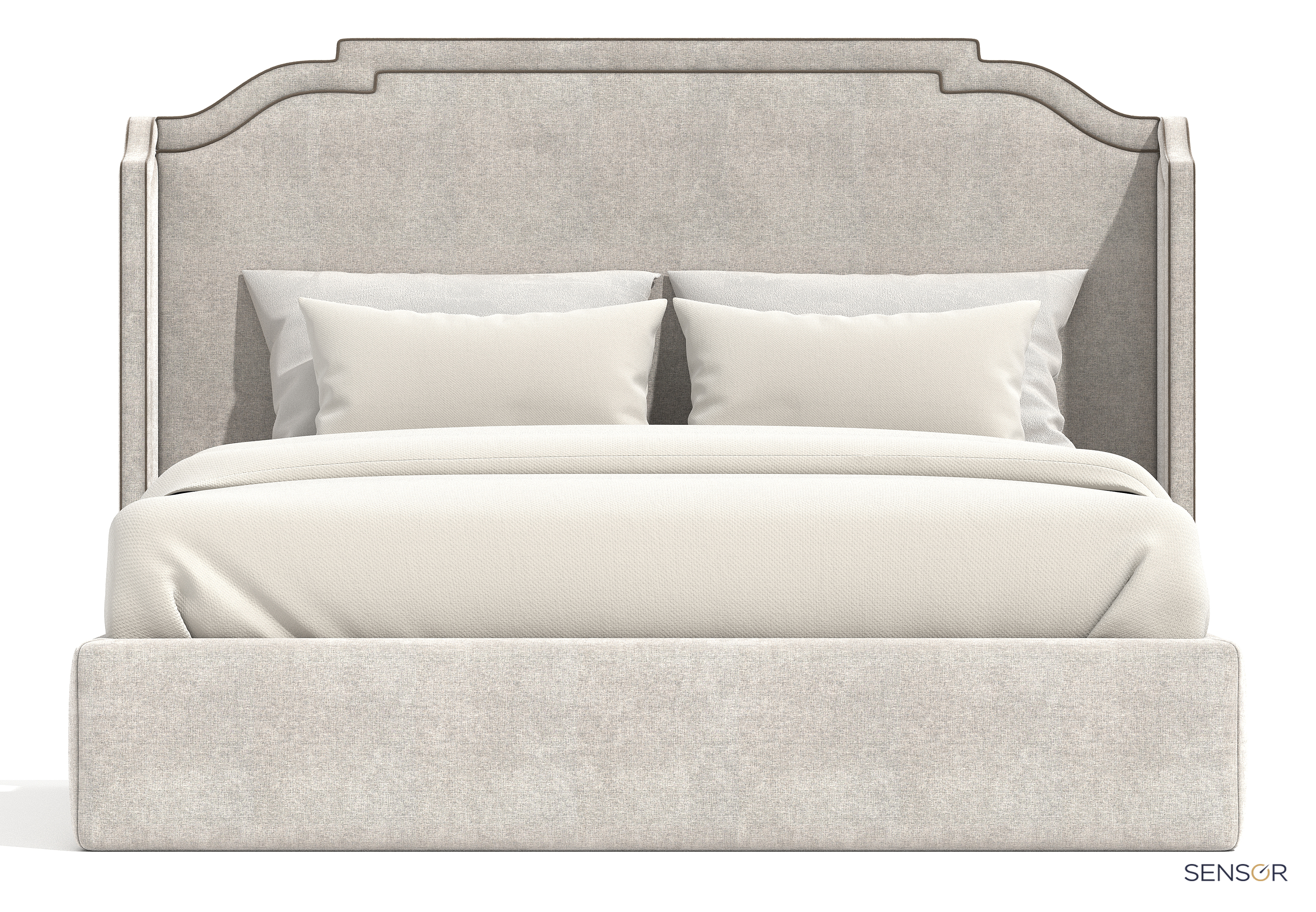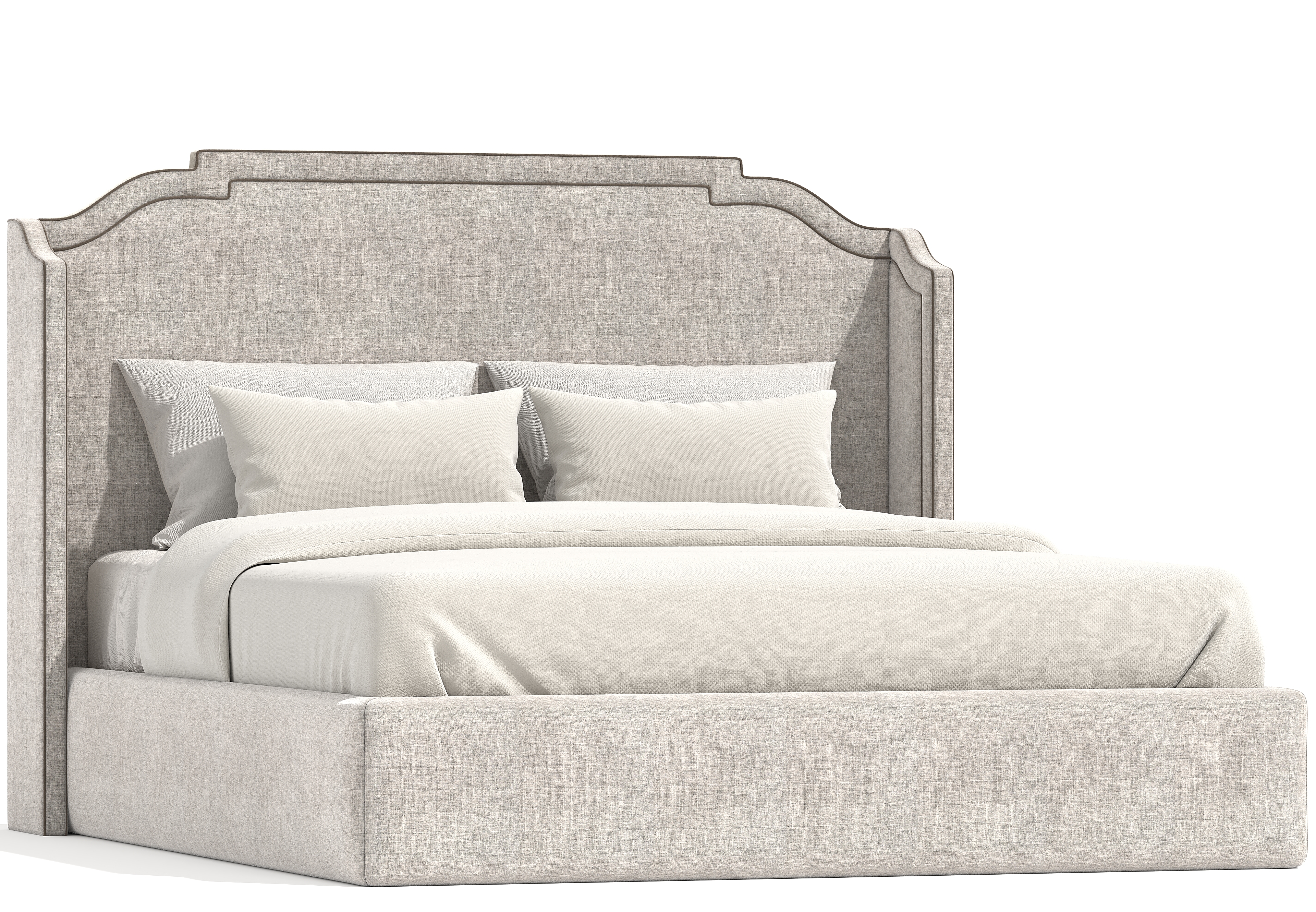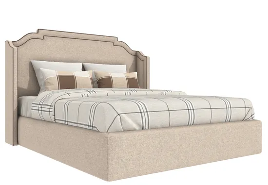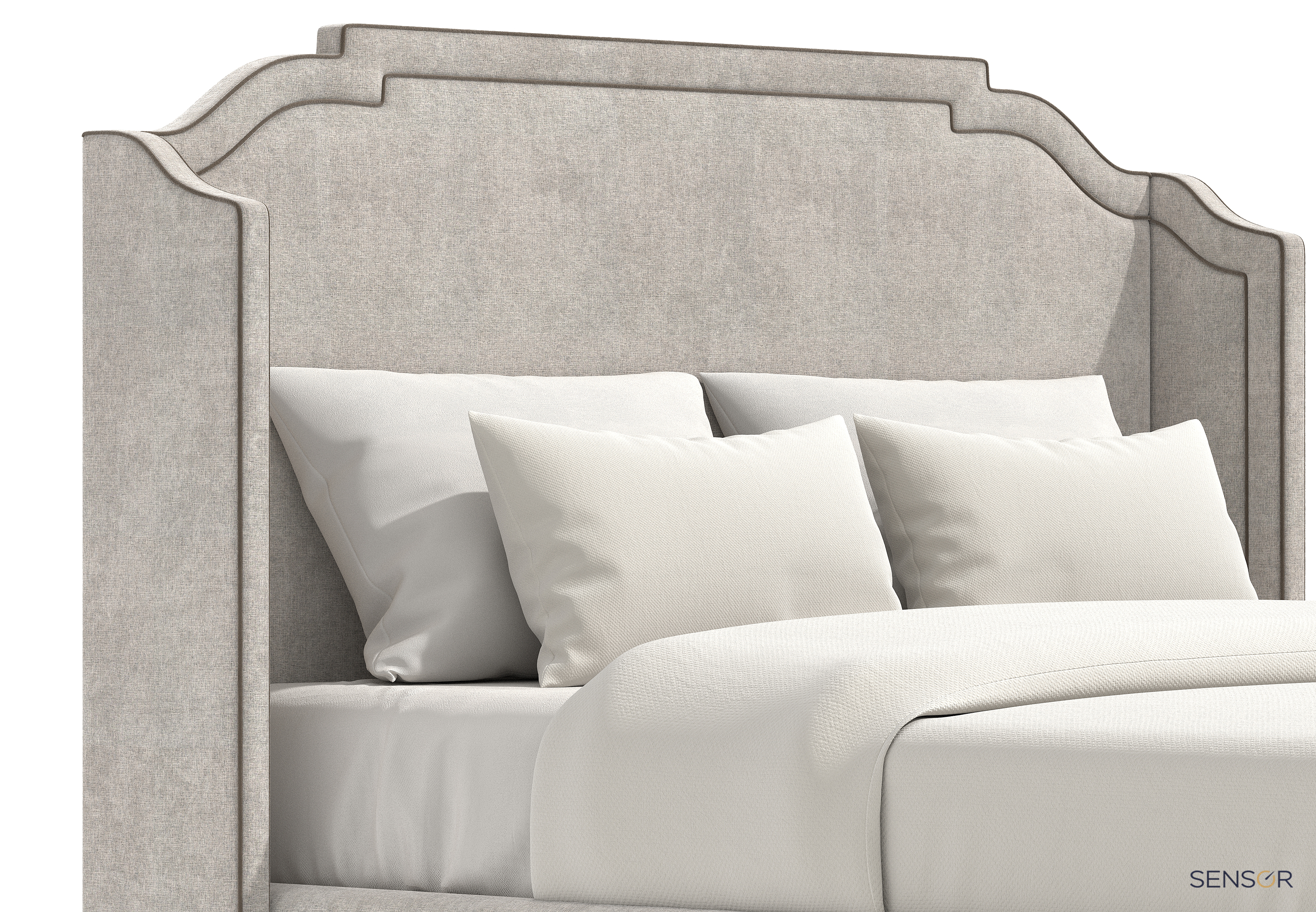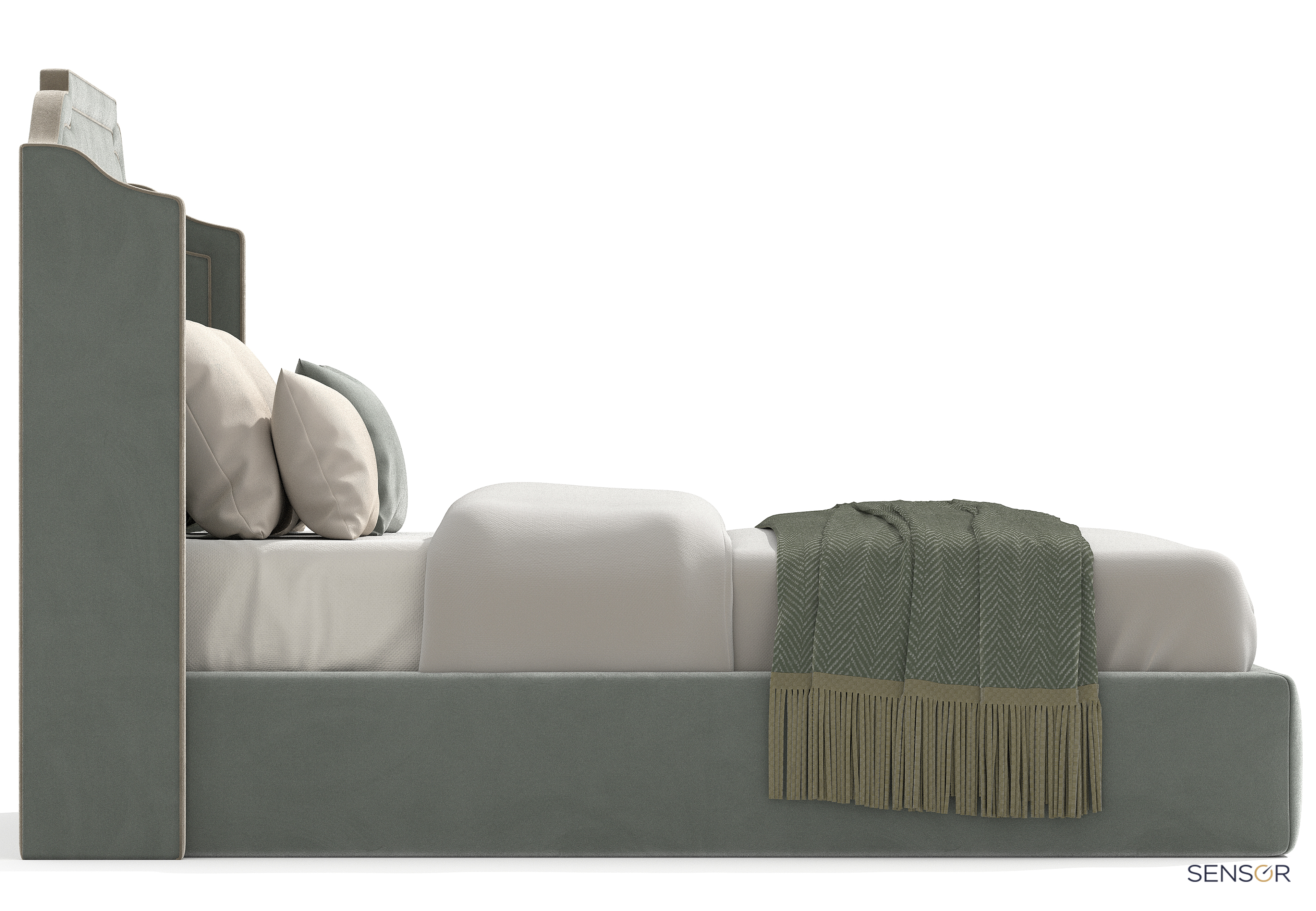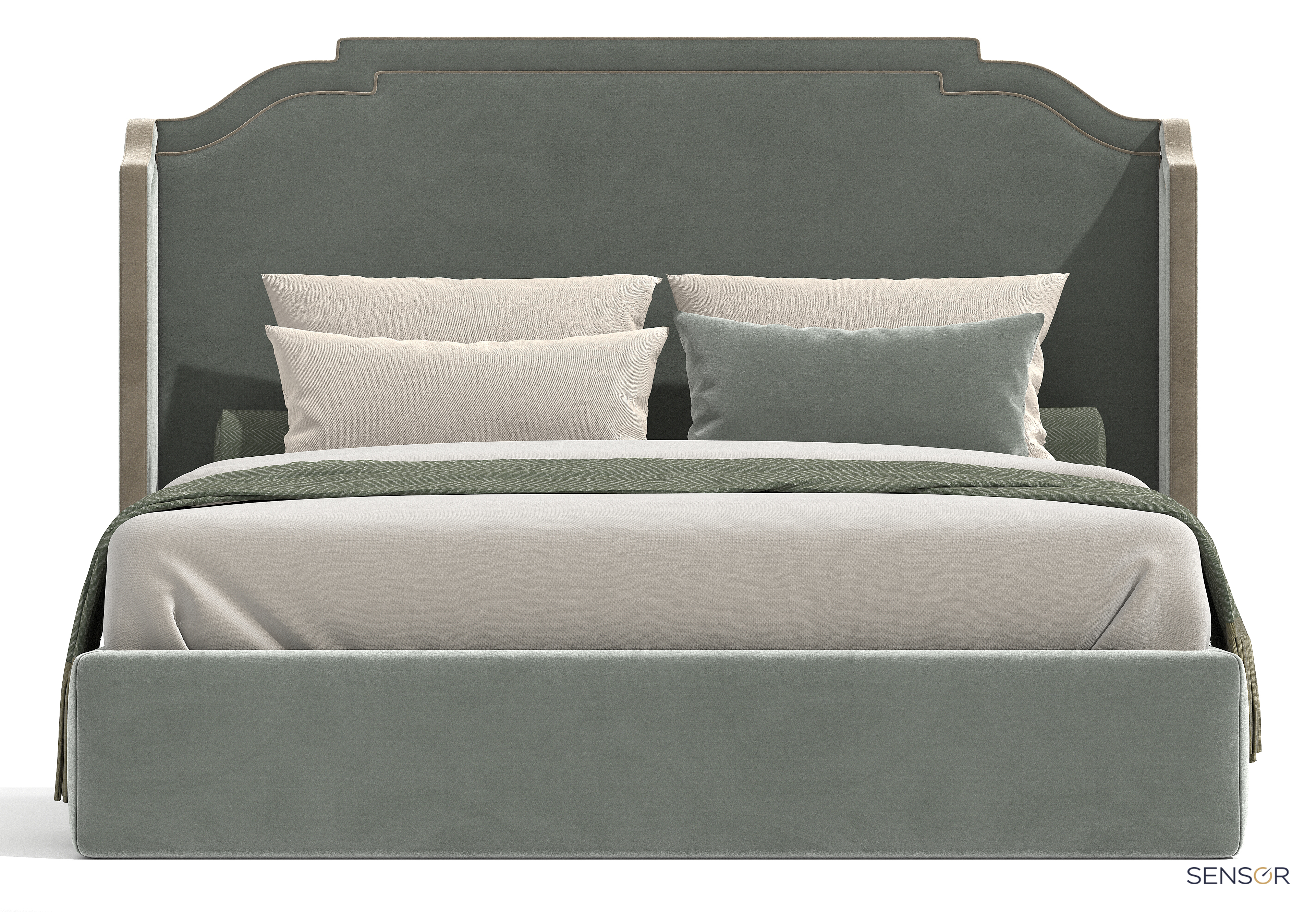 Дизайнерская кровать Аликанте для спальной комнаты. Элегантная модель, необычной формы изголовье. Декоративный кант подчеркивает  резные линии изголовья и боковых ушей на контрасте с основным цветом кровати. Элегантность и шарм этой модели будут радовать вас каждый раз, когда вы будете заходить в спальню. Это настоящее сокровище для интерьера. В шоу-руме фабрики вы можете подобрать дизайнерские ткани по цвету и текстуре. Менеджеры фабрики помогут вам адаптировать любую модель из каталога под размеры вашей комнаты, выбрать правильный вариант по цвету, дизайну.