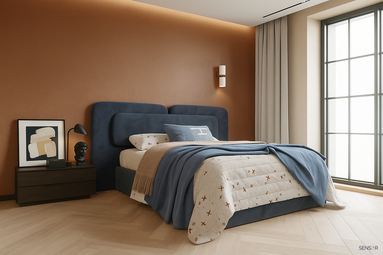 Дизайнерская кровать Армани. Стильная современная модель. Плавные линии изголовья идеально дополняют обстановку спальни, они создают уют и расслабляющее пространство. Изготавливаем стильные кровати на заказ по вашим параметрам для всей семьи.