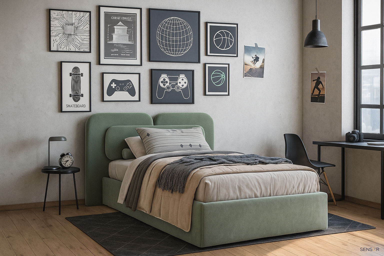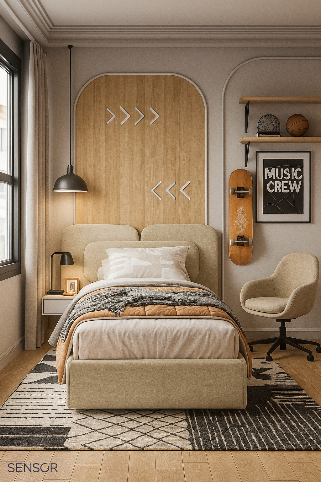 Дизайнерская кровать Армани kids для детской комнаты. Стильная современная модель. Плавные линии изголовья идеально дополняют обстановку спальни, они создают уют и расслабляющее пространство. Изготавливаем стильные кровати на заказ по вашим параметрам для всей семьи.