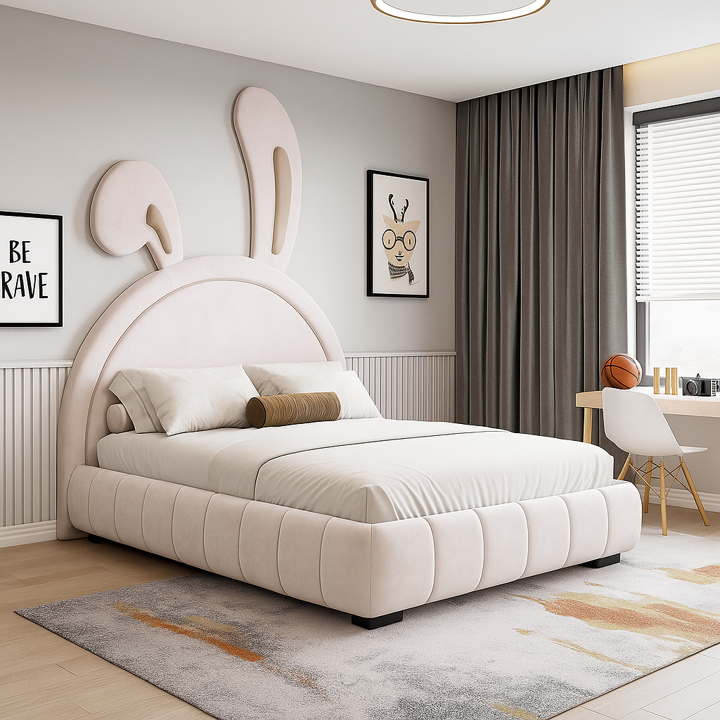 Односпальная мягкая кровать Банни Дизайн в виде зайчика с ушами. Детство должно быть ярким! Оригинально, мило. Такая необычная модель украсит любую детскую. Все, что в нас есть-формируется в детстве. Давайте чаще дарить своим детям мечту!