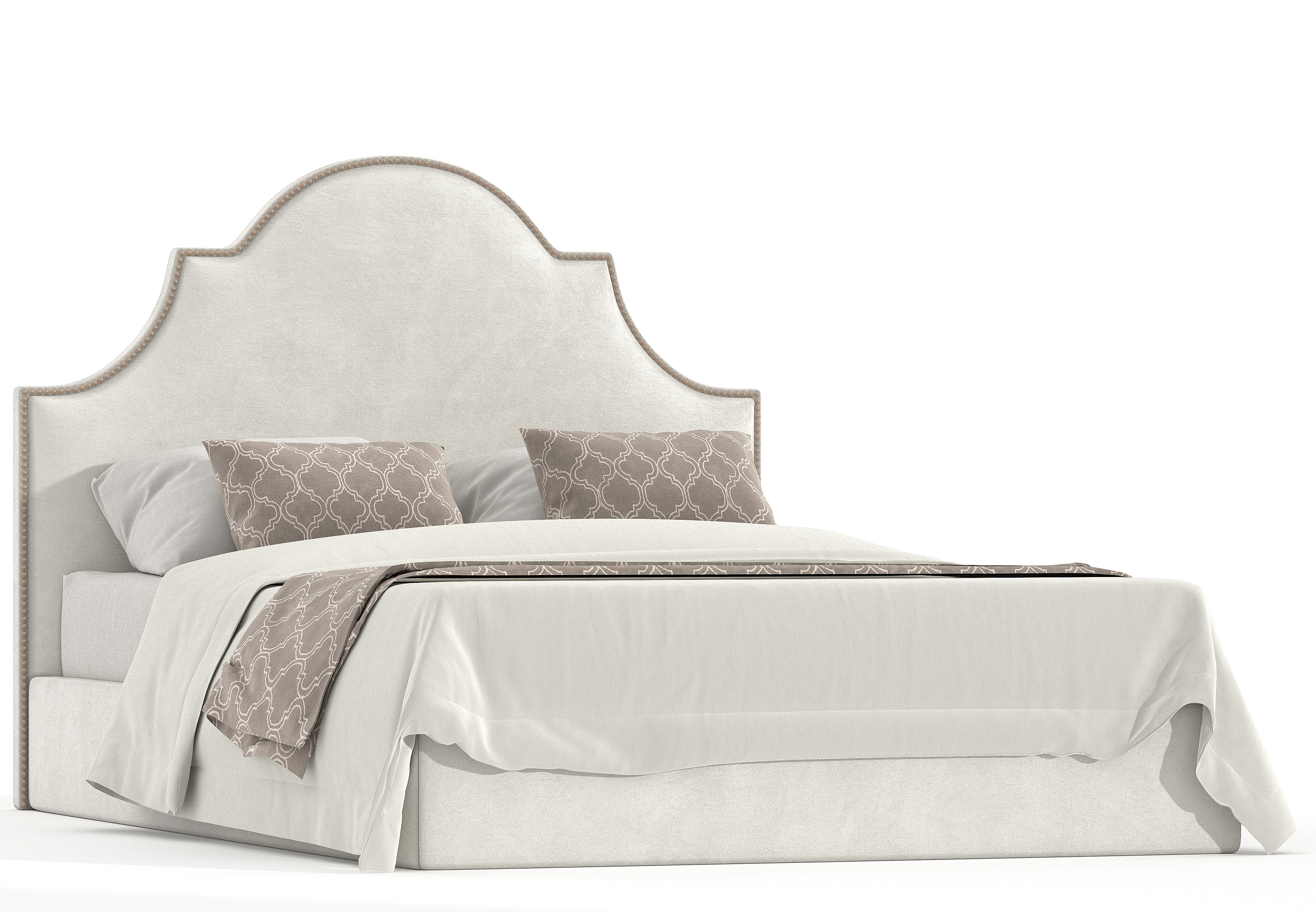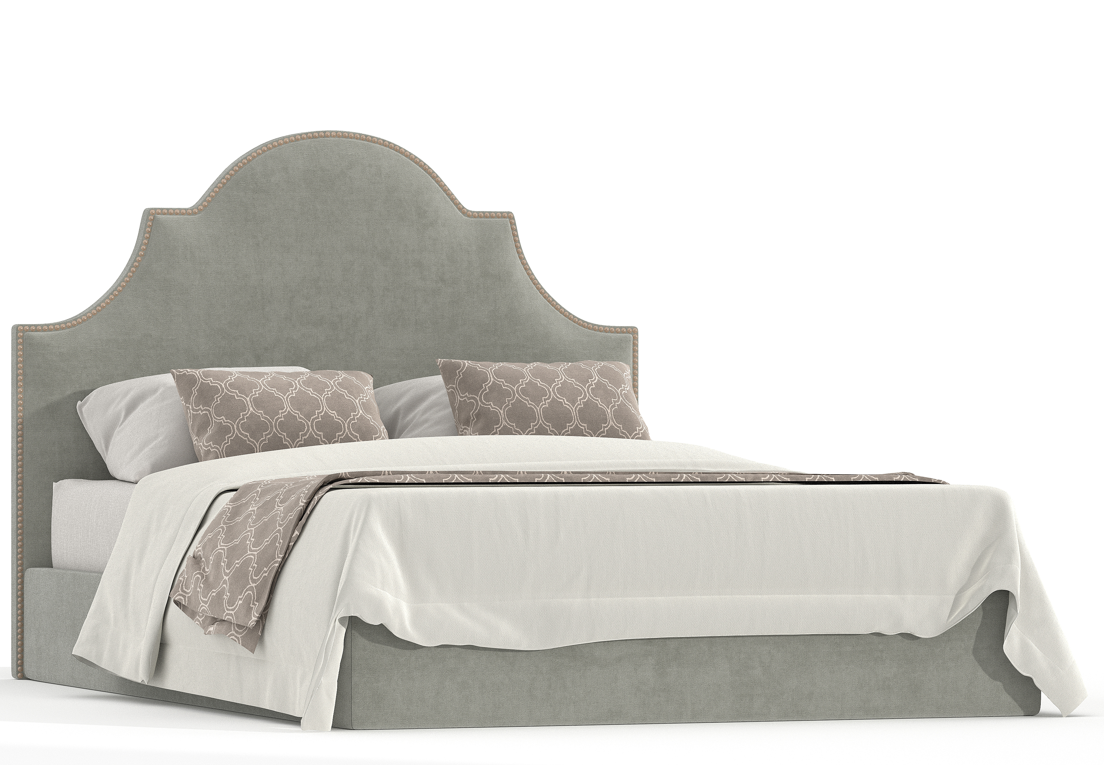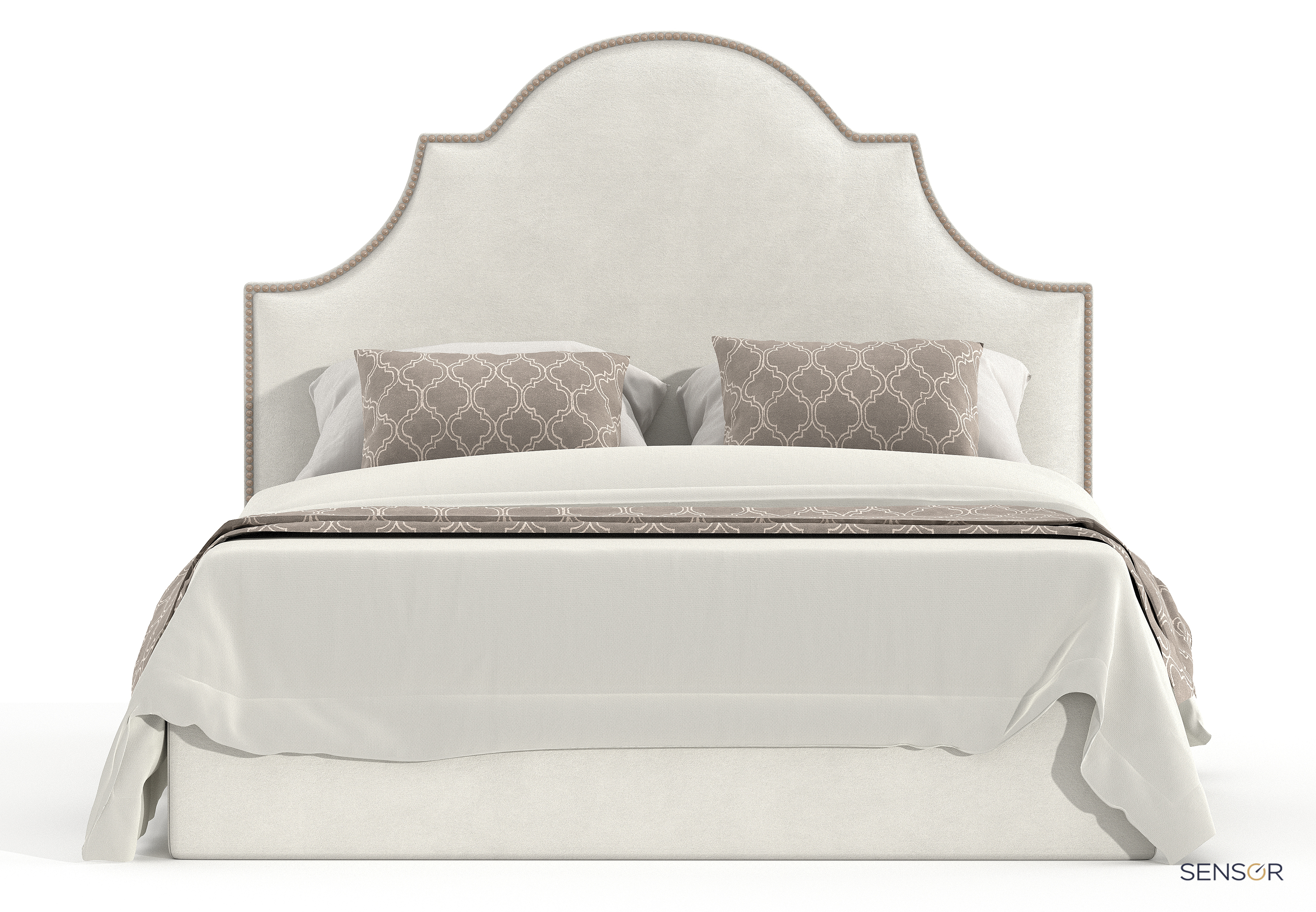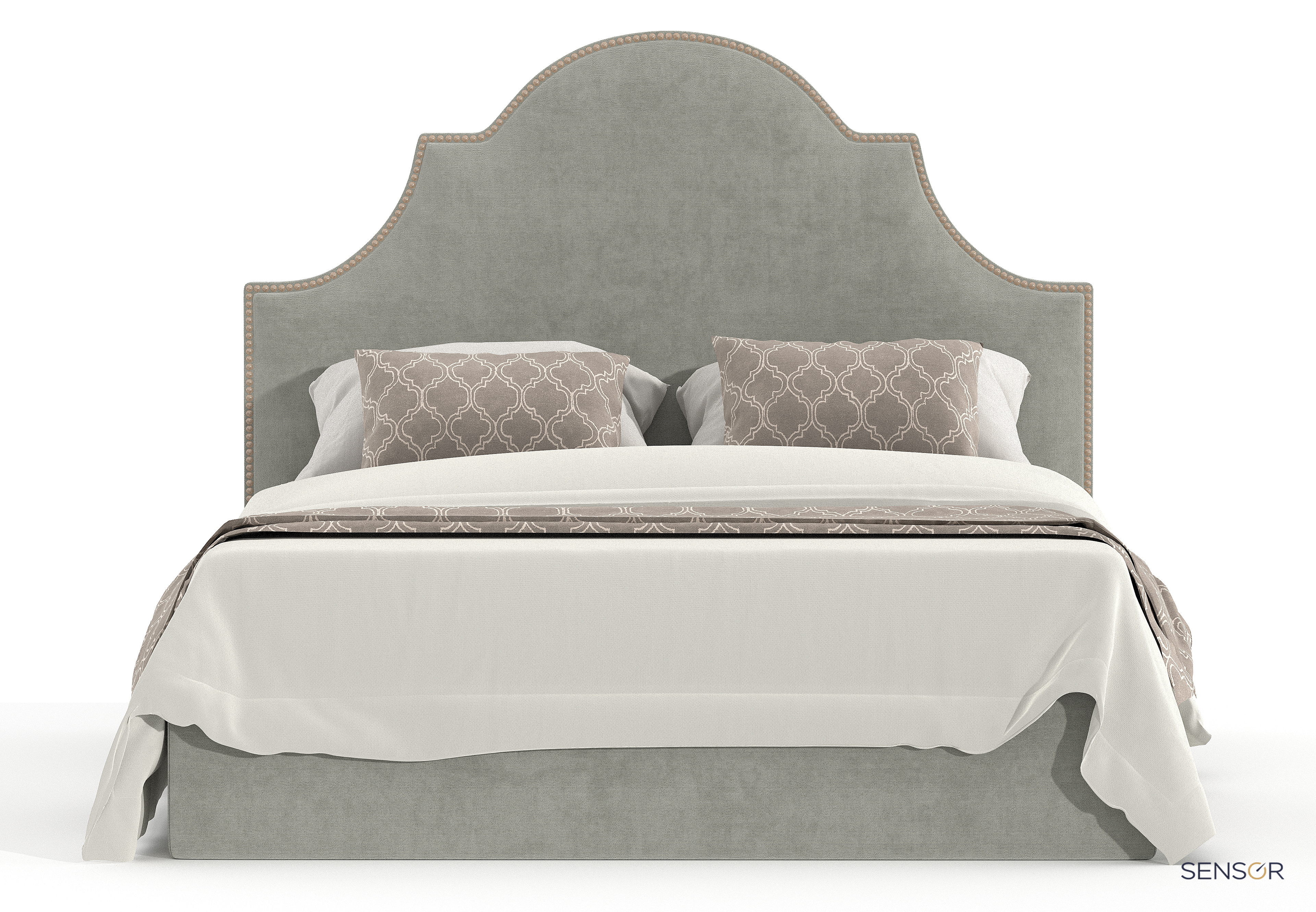 Интерьерная кровать Беатриче для современной спальни. Элегантное изголовье наполнит атмосферу спальни спокойствием, уютом и романтикой. Декоративные гвозди подчёркивают плавные изгибы и добавляют шика. Изготовление кровати на заказ даёт возможность выбрать ткань по цвету и текстуре, скорректировать ее габаритные размеры и высоту изголовья.