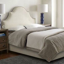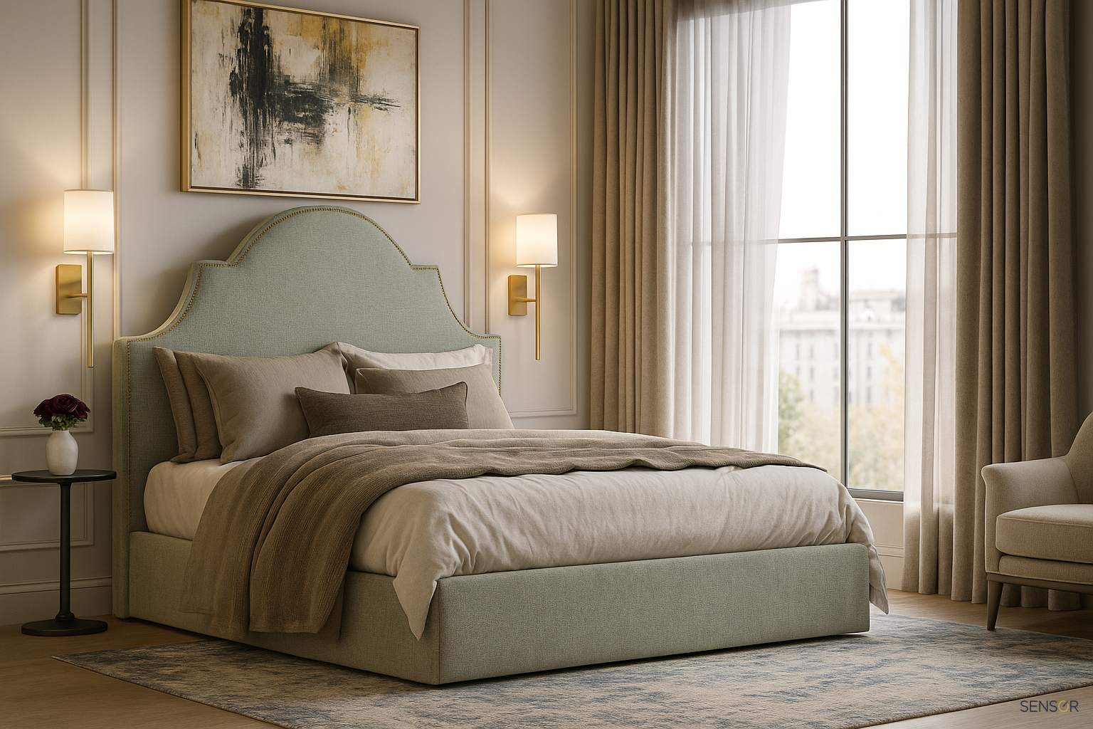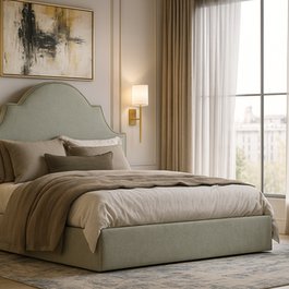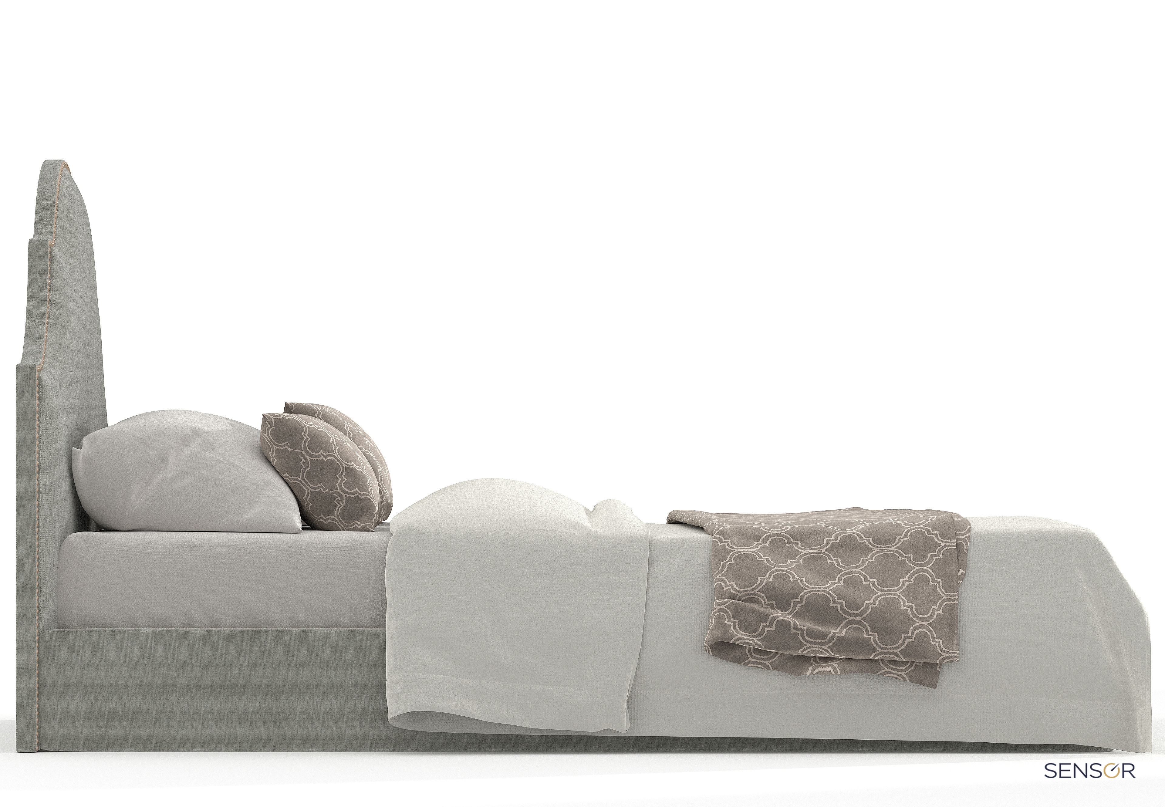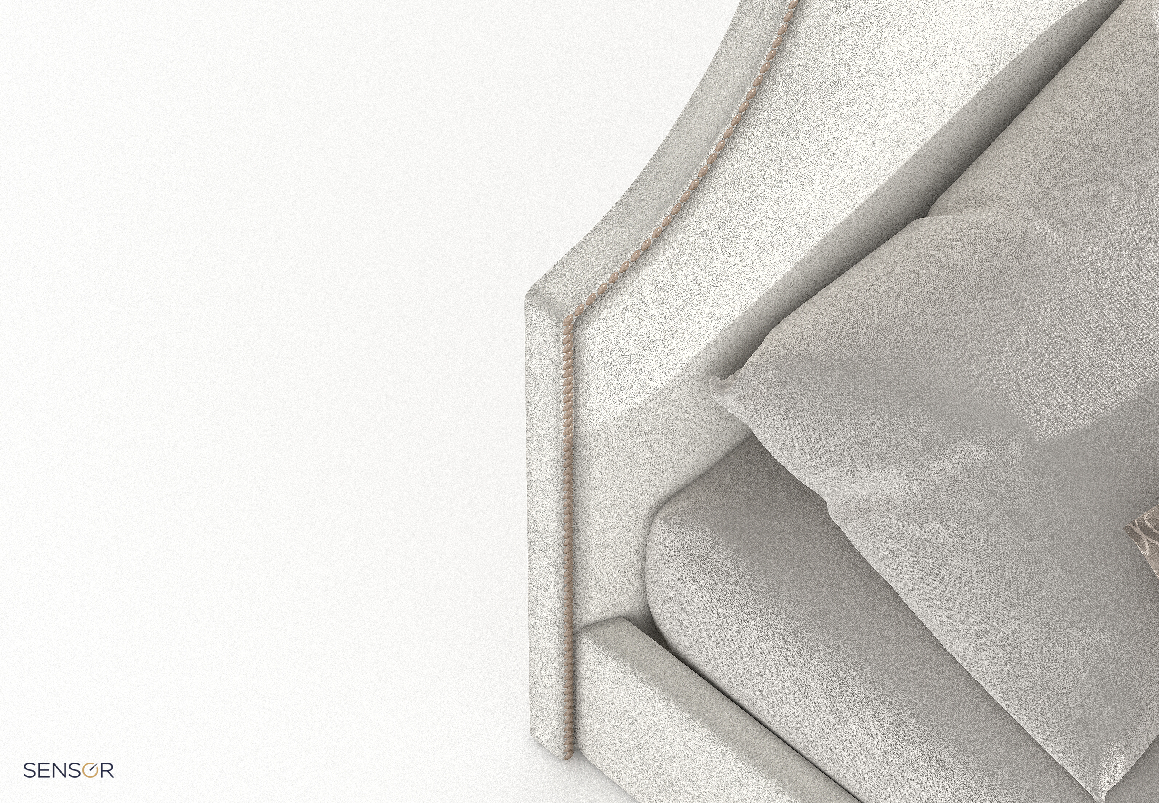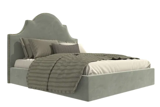 Интерьерная кровать Беатриче для современной спальни. Элегантное изголовье наполнит атмосферу спальни спокойствием, уютом и романтикой. Декоративные гвозди подчёркивают плавные изгибы и добавляют шика. Изготовление кровати на заказ даёт возможность выбрать ткань по цвету и текстуре, скорректировать ее габаритные размеры и высоту изголовья.