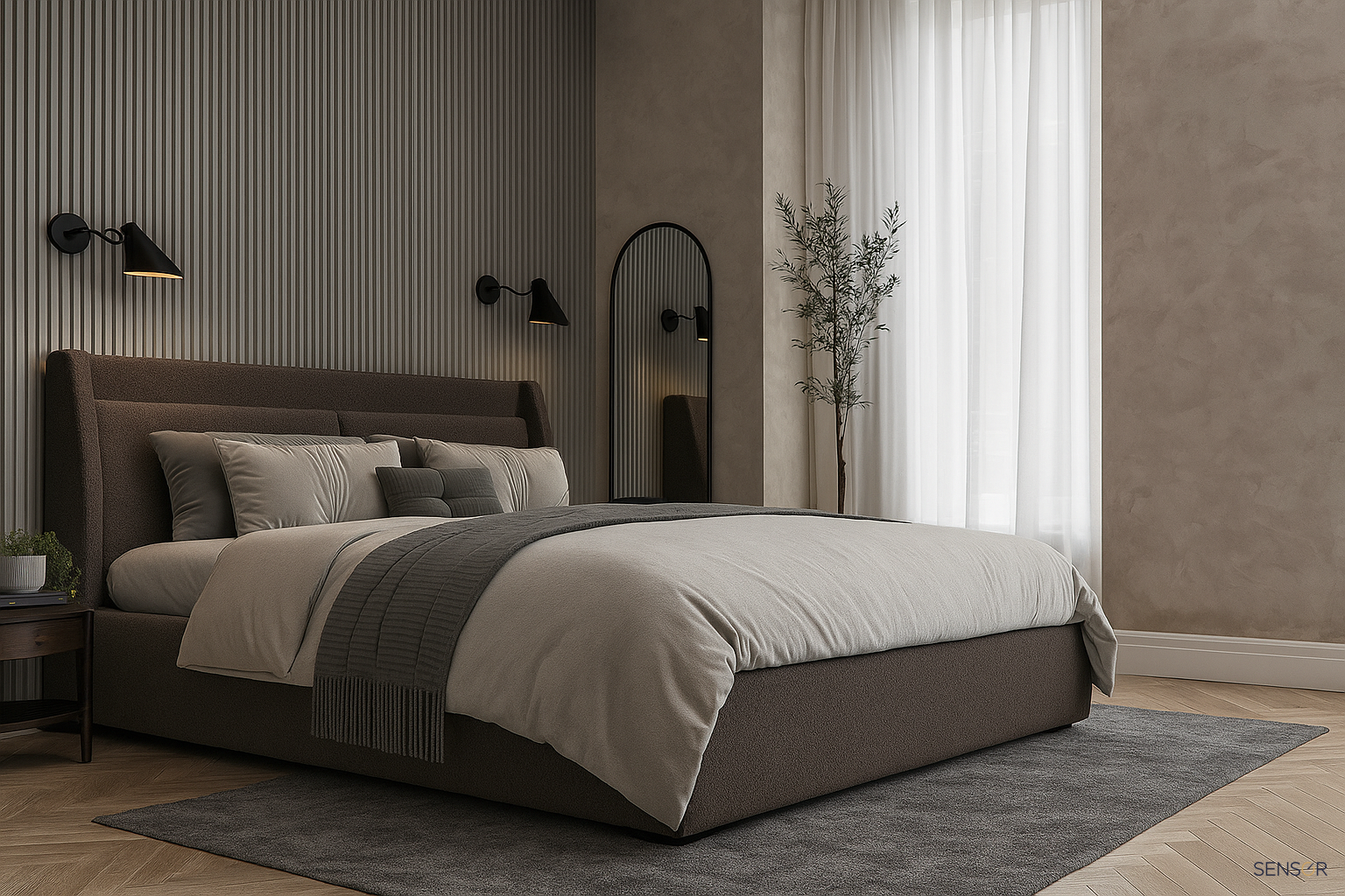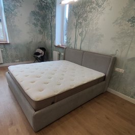 Двуспальная кровать Беатрис для современной спальни. Трендом этого года стали кровати с низким изголовьем, с боковыми ушками, что добавляет интерьеру мягкости, уюта. Выразительное изголовье кровати составлено из двух интересных деталей. Это две мягкие подушки и декоративные боковые ушки необычной формы. Низкое изголовье хорошо подходит к спальням компактных размеров, кровать выглядит более воздушно, не громоздко. Выбирая модель, важно подобрать такой вариант, который будет гармонировать с окружающей обстановкой. Мягкая кровать под заказ Беатрис будет легко сочетаться с остальной мебелью и органично впишется в пространство современной спальни. Мы изготовим данную модель в различных вариантах ткани, адаптируем под размеры вашей спальни.