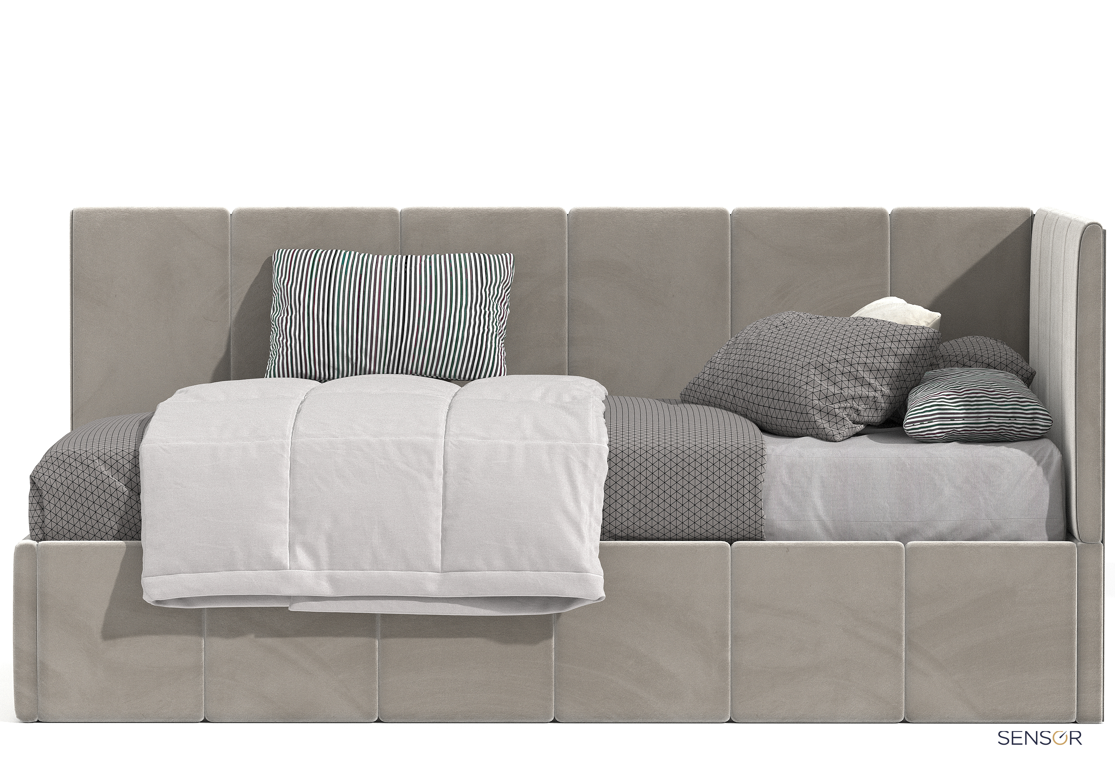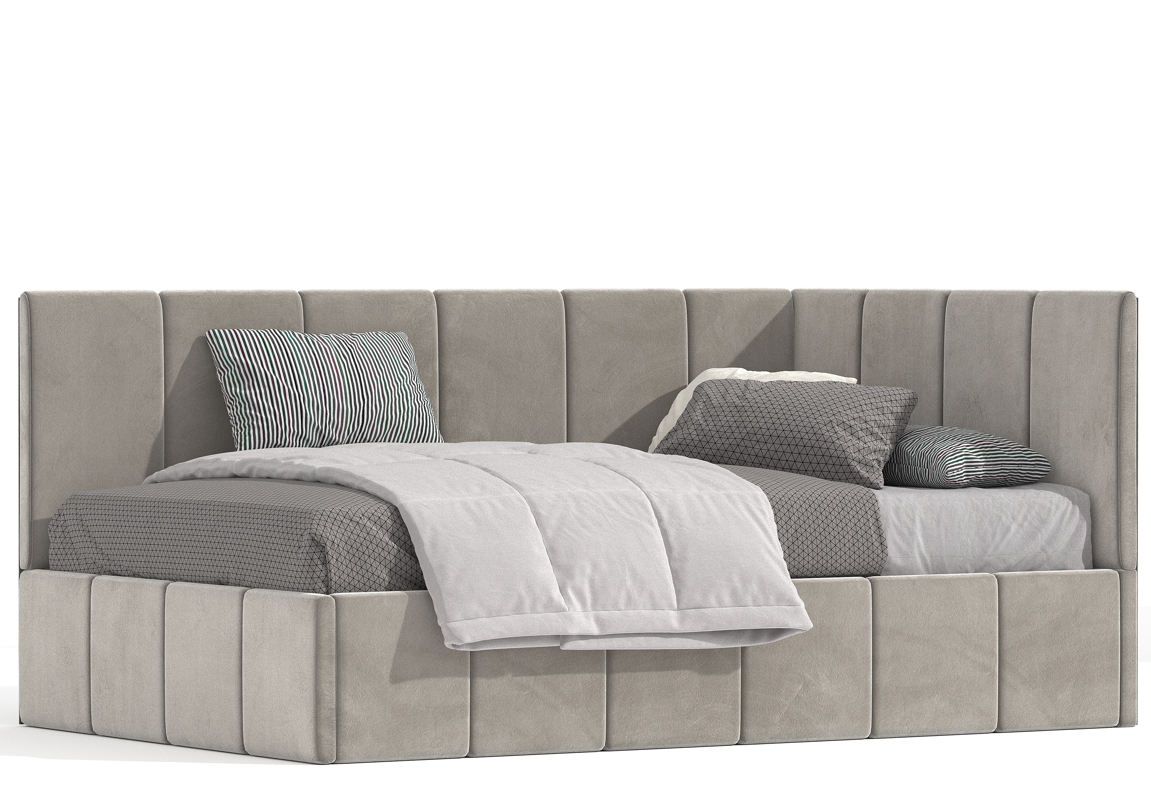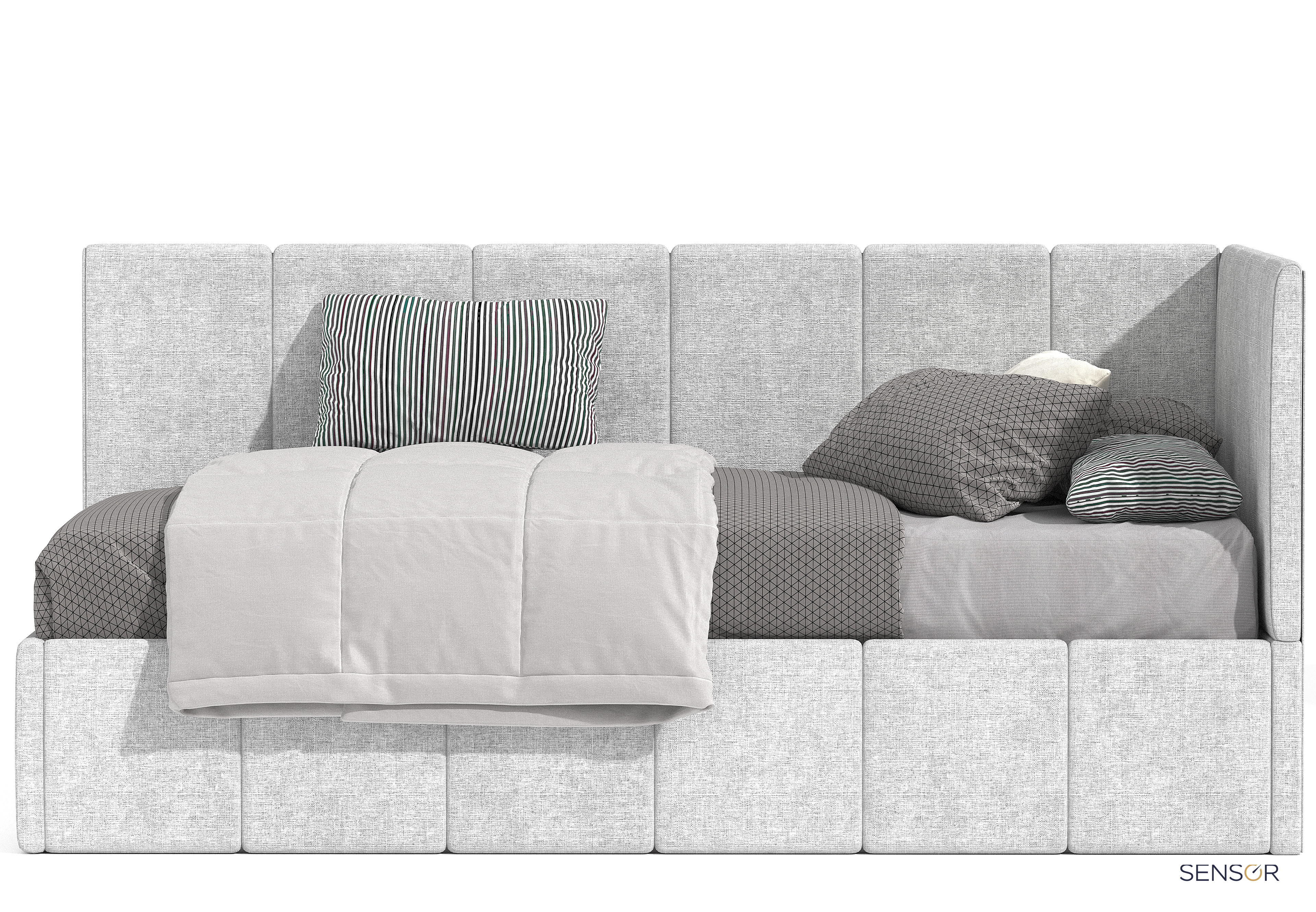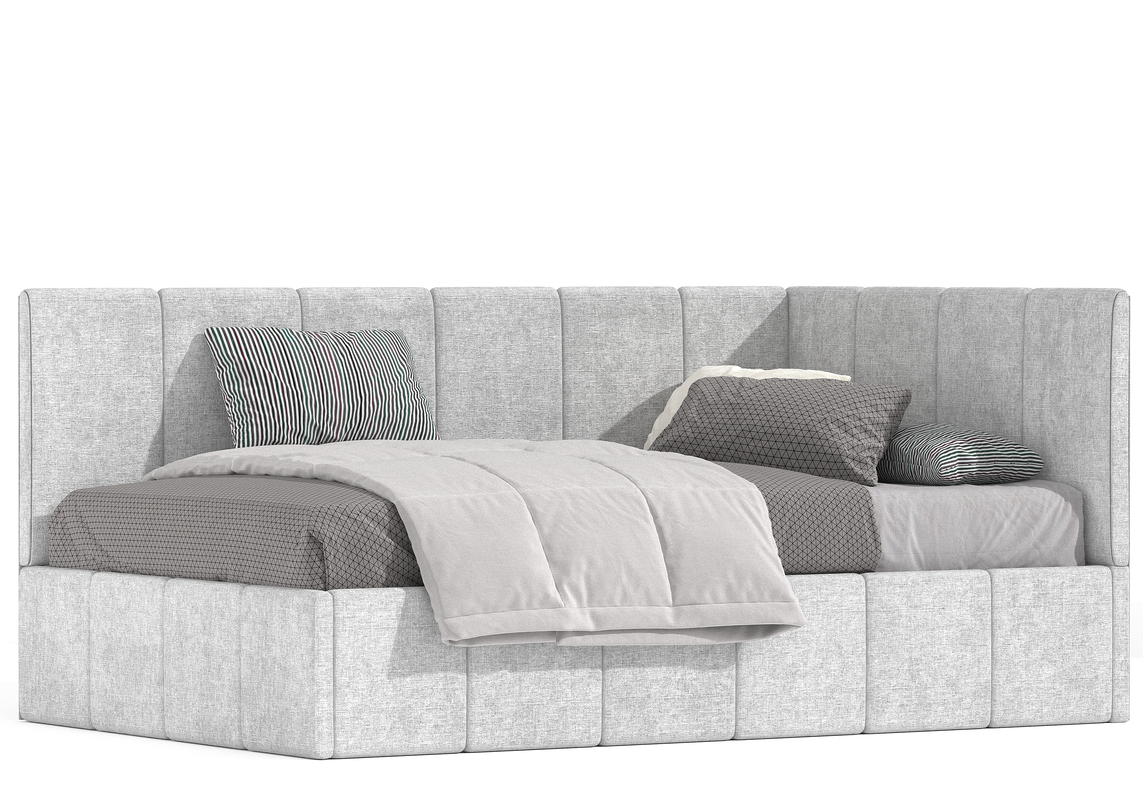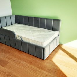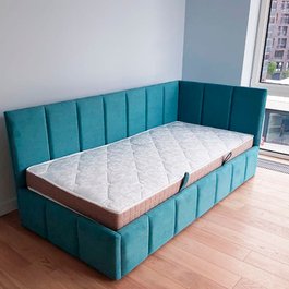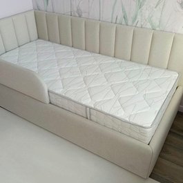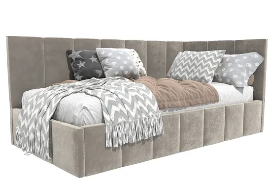 Кровать Денди kids - подростковая кровать, сочетающая в себе удобство и функциональность. Стильный дизайн, где каждый элемент собран и обтянут вручную. Элементы продублированы и на царгах кровати. Модель подойдет как для девочек, так и для мальчиков.
