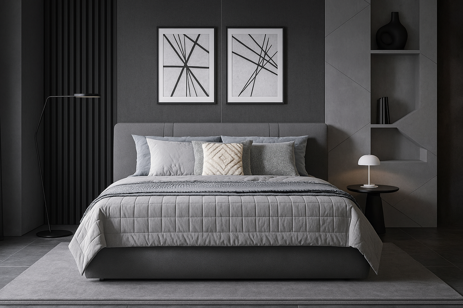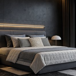 Кровать Дантоне для современной спальни. Минимализм в дизайне интерьера — стиль, характеризующийся простотой. Он функционален, оформлен минимальным количеством орнаментов, декоративных элементов. Именно это направление было ориентиром при создании кровати Дантоне. Стильный дизайн, простота и лаконичность, никаких лишний деталей. Декоративный кант в цвет кровати смотрится благородно. Если хочется внести дополнительные цвета, можно поиграть цветом канта. Изготовление мебели на заказ даёт возможность не только выбрать ткань по цвету и текстуре, но и сделать кровать идеального размера для вашей спальни.