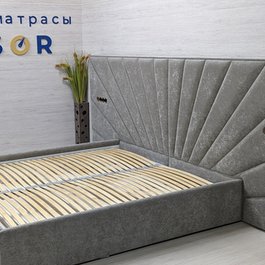 Дизайнерская кровать с широким изголовьем DAWN. Современное интерьерное решение, которое выглядит не только стильно, но и решает большую часть декорирования. Элементы рисунка изголовья напоминают лучи восходящего солнца. Каждая деталь изготавливается отдельно, а затем, по принципу мозаики выкладывается общий рисунок изголовья. Визуально такой дизайн расширяет пространство. Кровать выглядит роскошно!