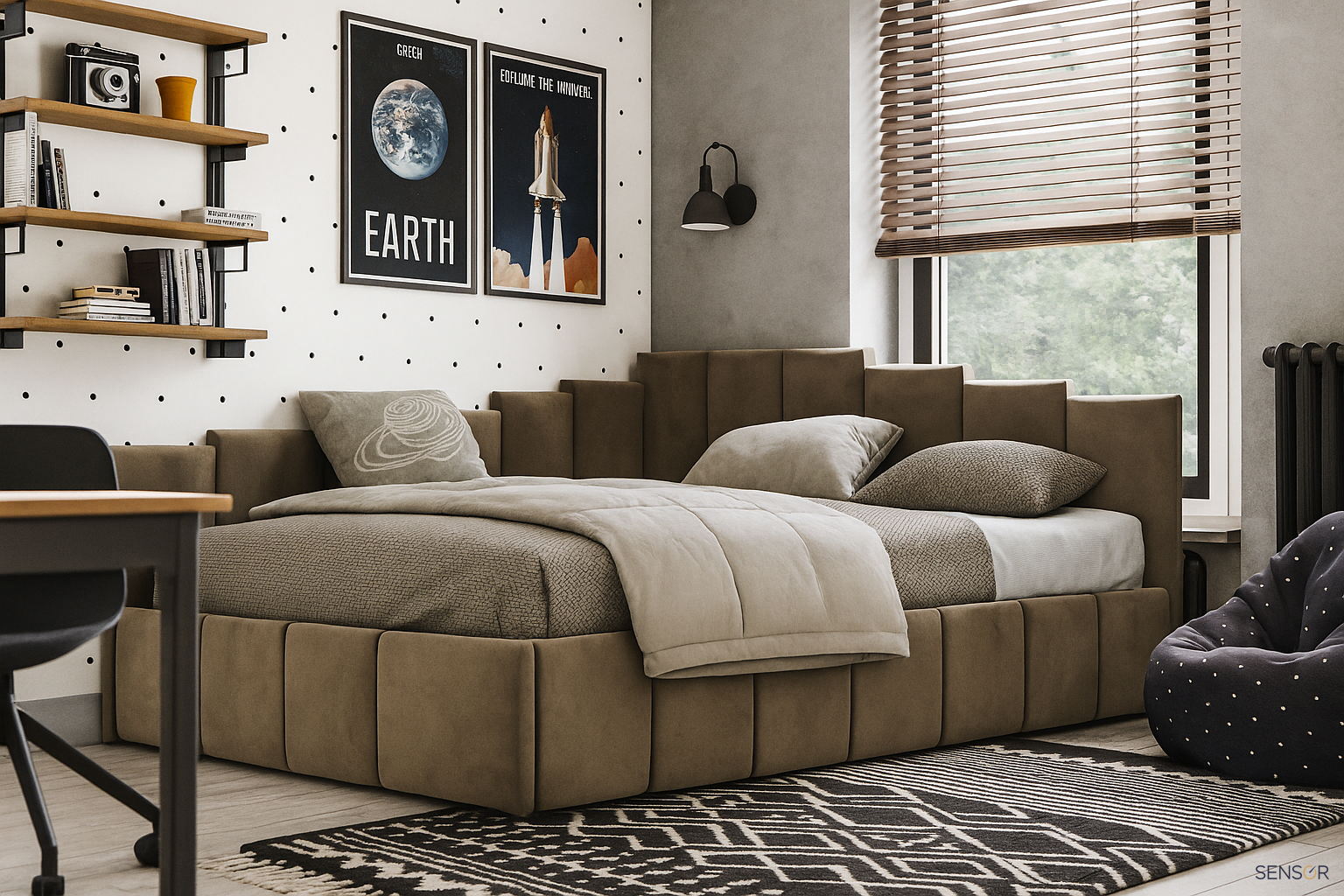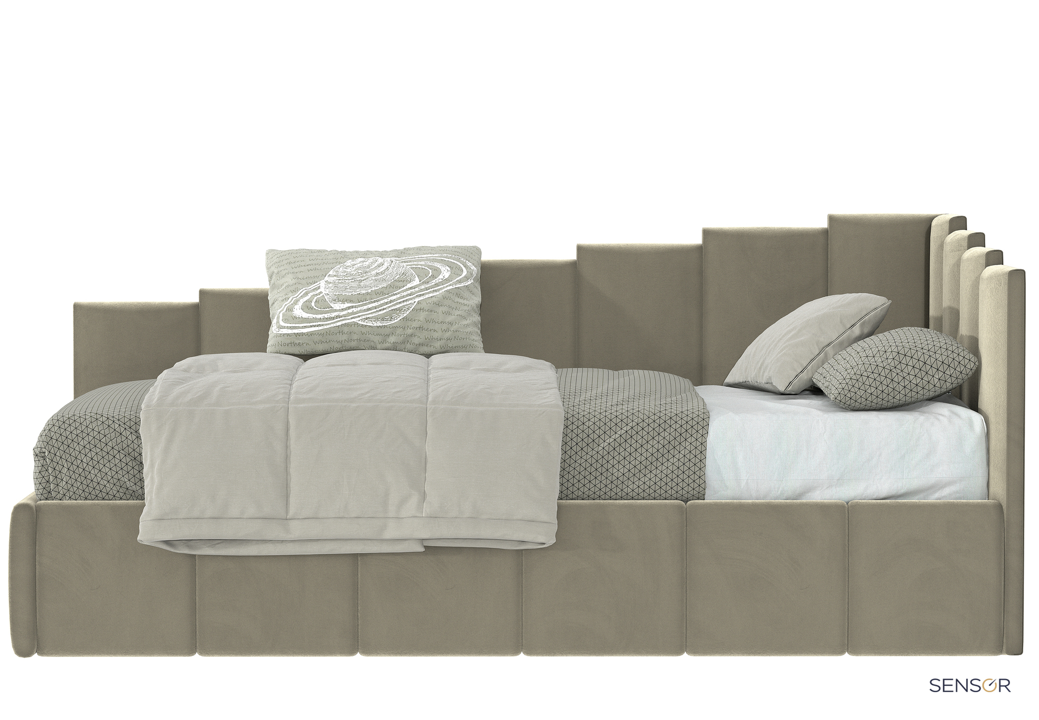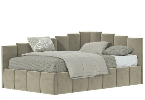 Денди kids - подростковая кровать, сочетающая в себе удобство и функциональность. Стильный дизайн, где каждый элемент собран и обтянут вручную. Элементы продублированы и на царгах кровати. Модель подойдет как для девочек, так и для мальчиков.