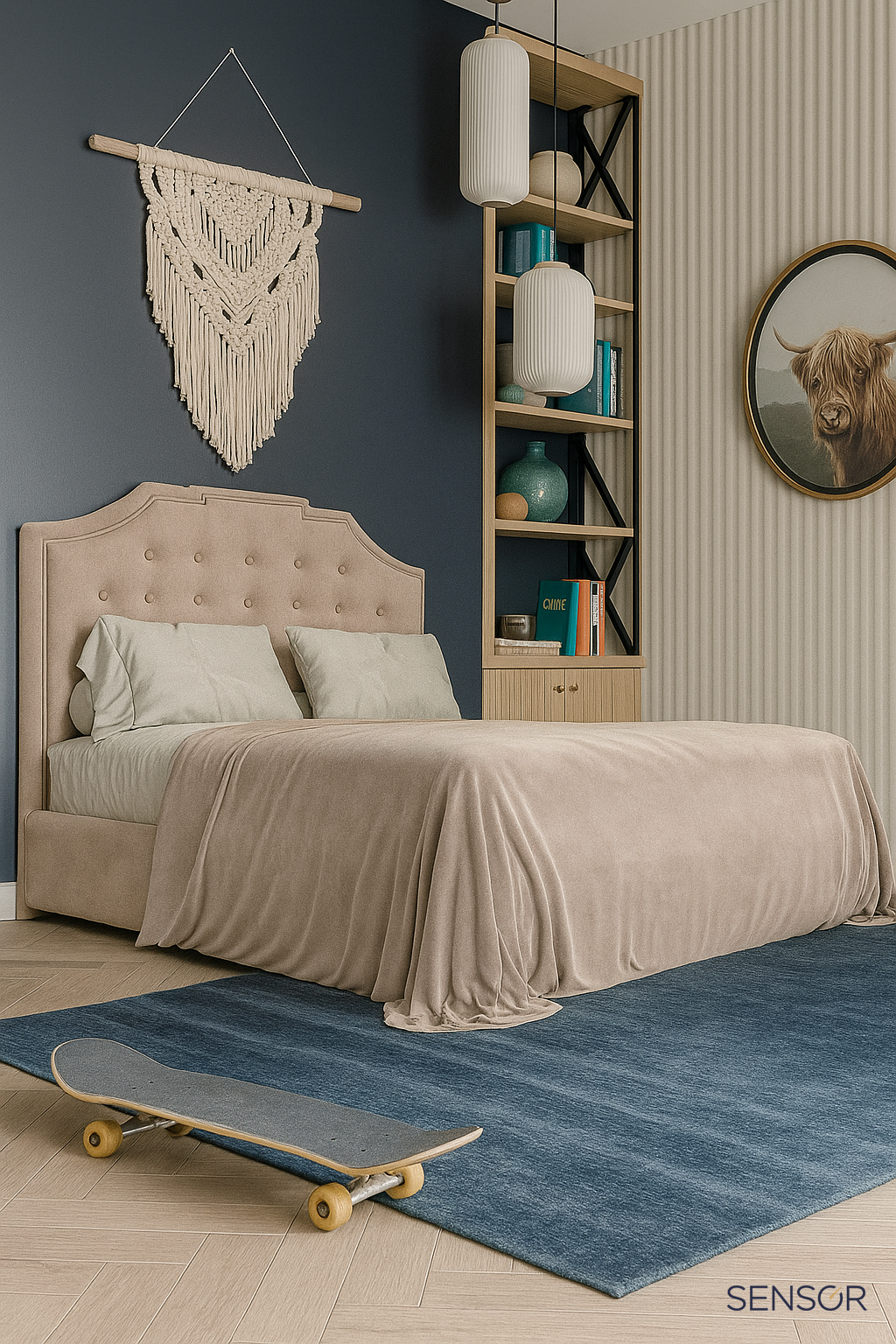 Дизайнерская кровать Джильда для современной детской комнаты. Стильная, элегантная модель с декоративным кантом по периметру изголовья. Дополняют дизайн изголовья декоративные пуговицы из ткани изделия. Привлекает внимание своей оригинальностью форма изголовья, такая модель станет украшением спальни. Декоративный кант можно сделать в одном цвете с кроватью, а можно подобрать контрактный вариант. Изготовление мебели на заказ даёт возможность адаптировать модель под размеры вашей комнаты, подобрать необходимый цвет из большого каталога дизайнерских кроватей.