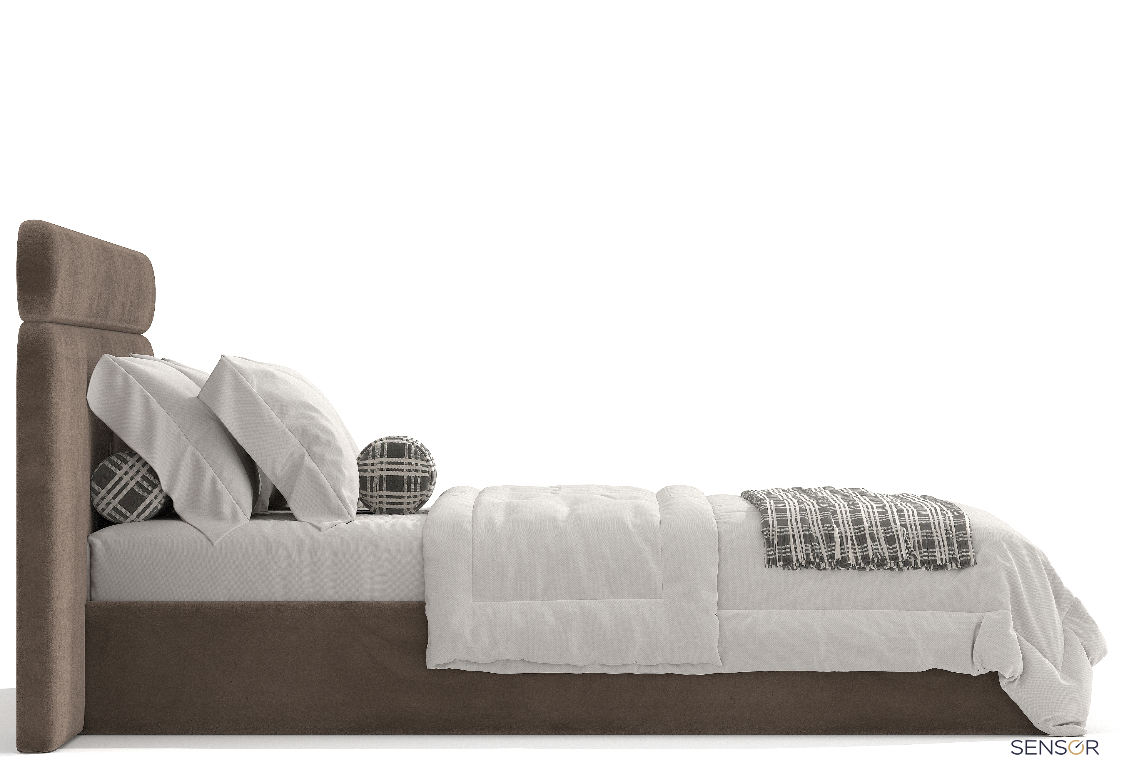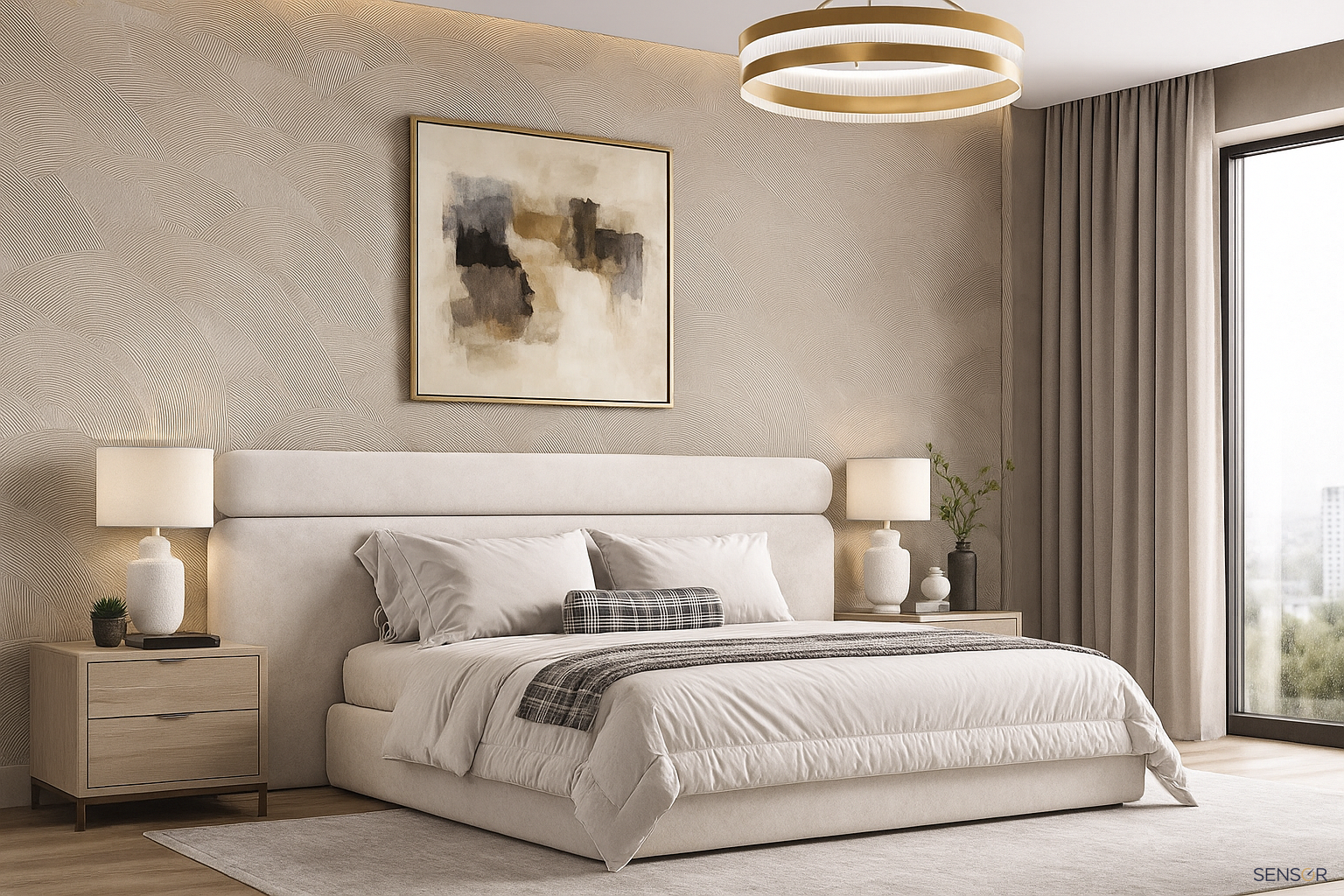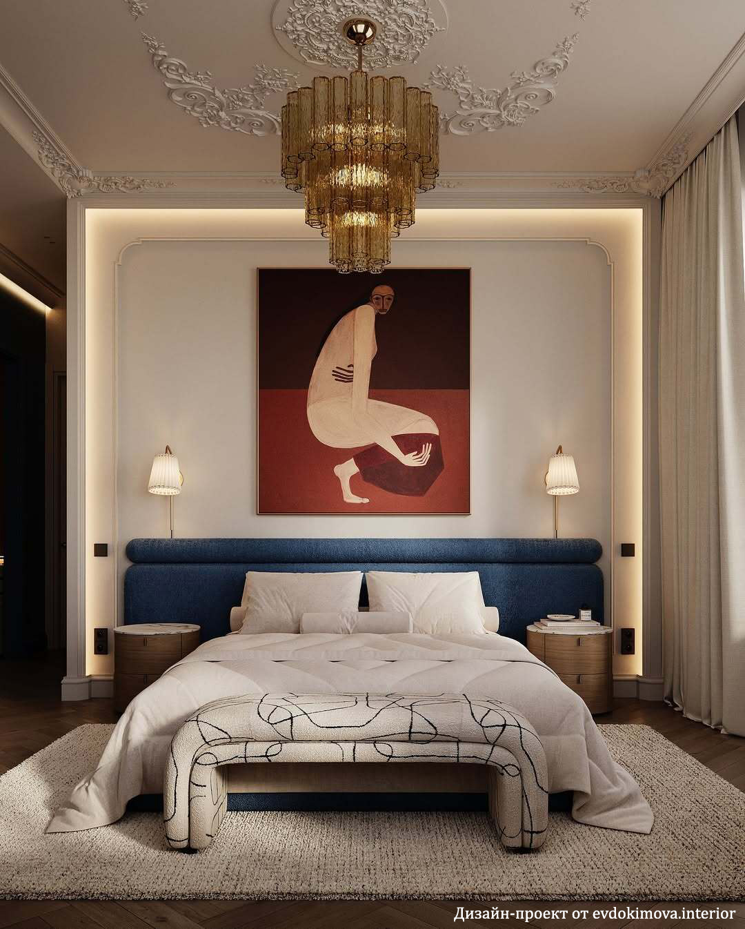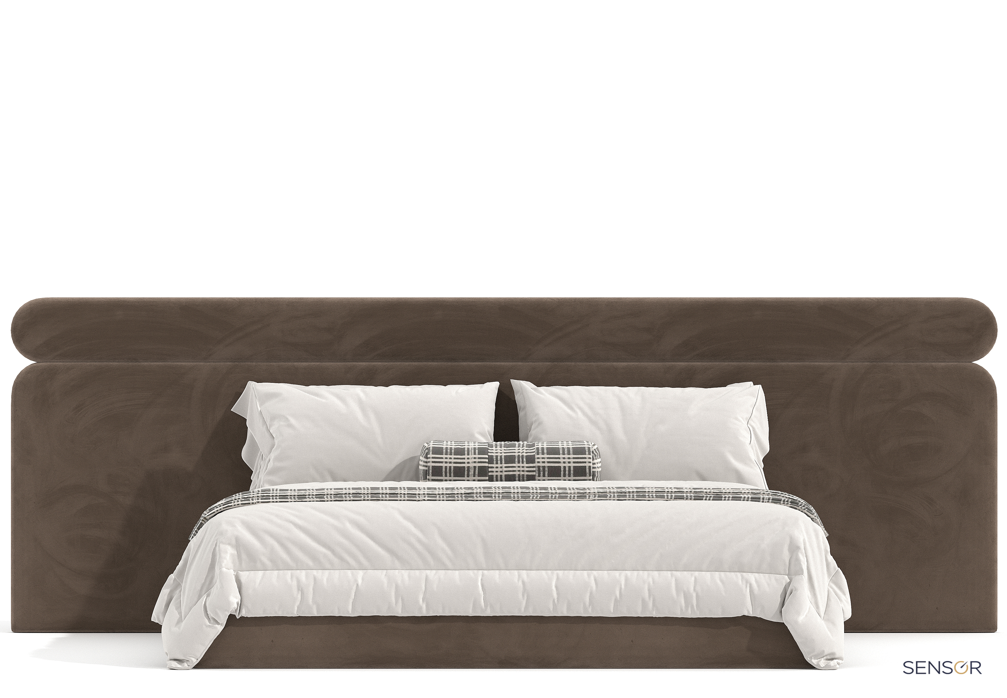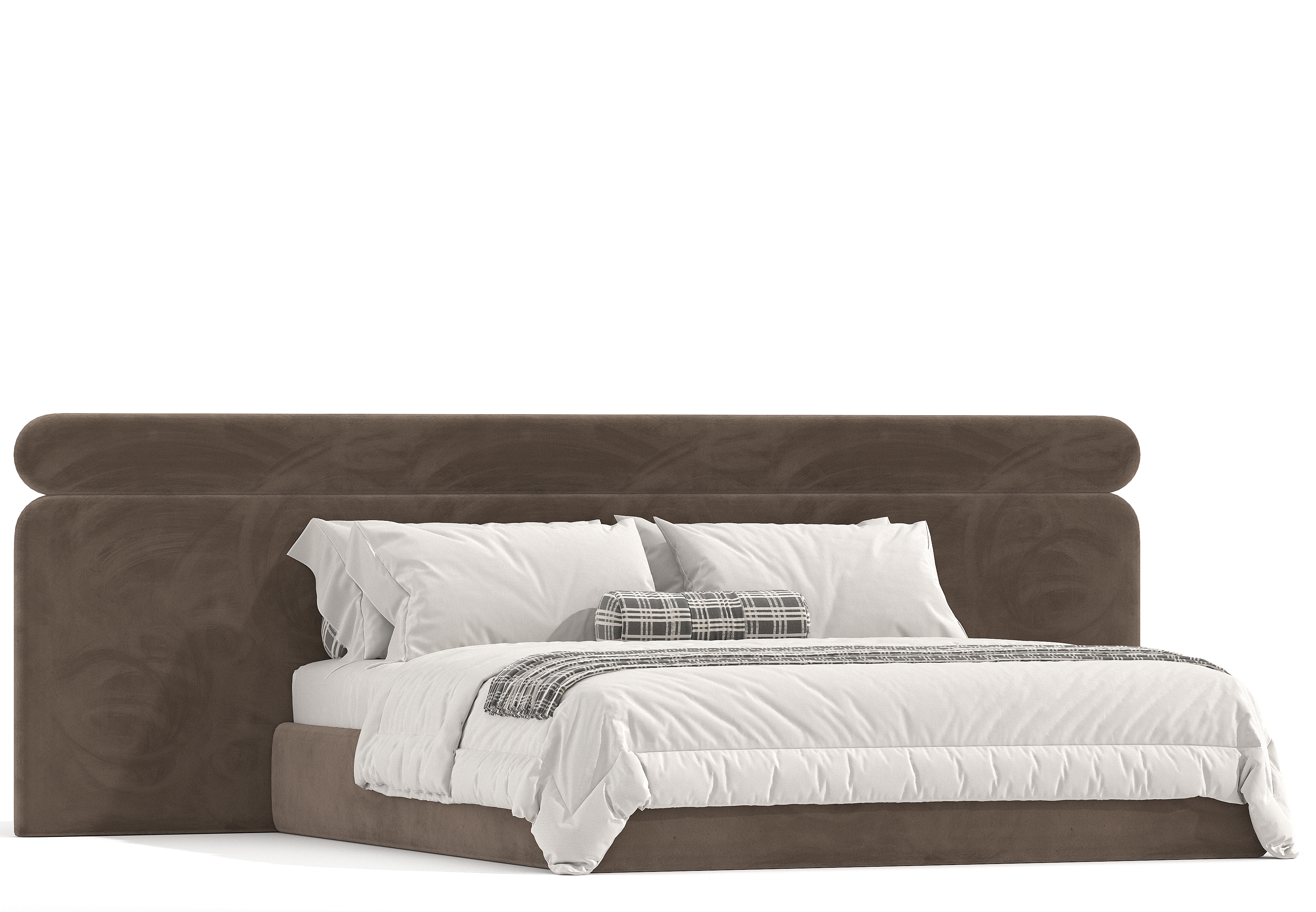 Дизайнерская кровать с широким изголовьем Эмбер. Горизонтальные полосы увеличивают комнату. Если для достижения эффекта расширения пространства горизонтальные полосы должны быть довольно широкими. Кровать Мальта простая, стильная модель, не обязывает по дизайну и цветовому решению, поэтому так популярна. Полосы могут быть шире, уже, пухлее, ровнее и т.д. Каждый элемент изготавливается отдельно. Рисунок изголовья адоптируется под ваши габариты, именно для вашей спальни, индивидуально. Дизайнер фабрики обрисовывает и согласовывает с вами эскиз перед запуском в работу.
