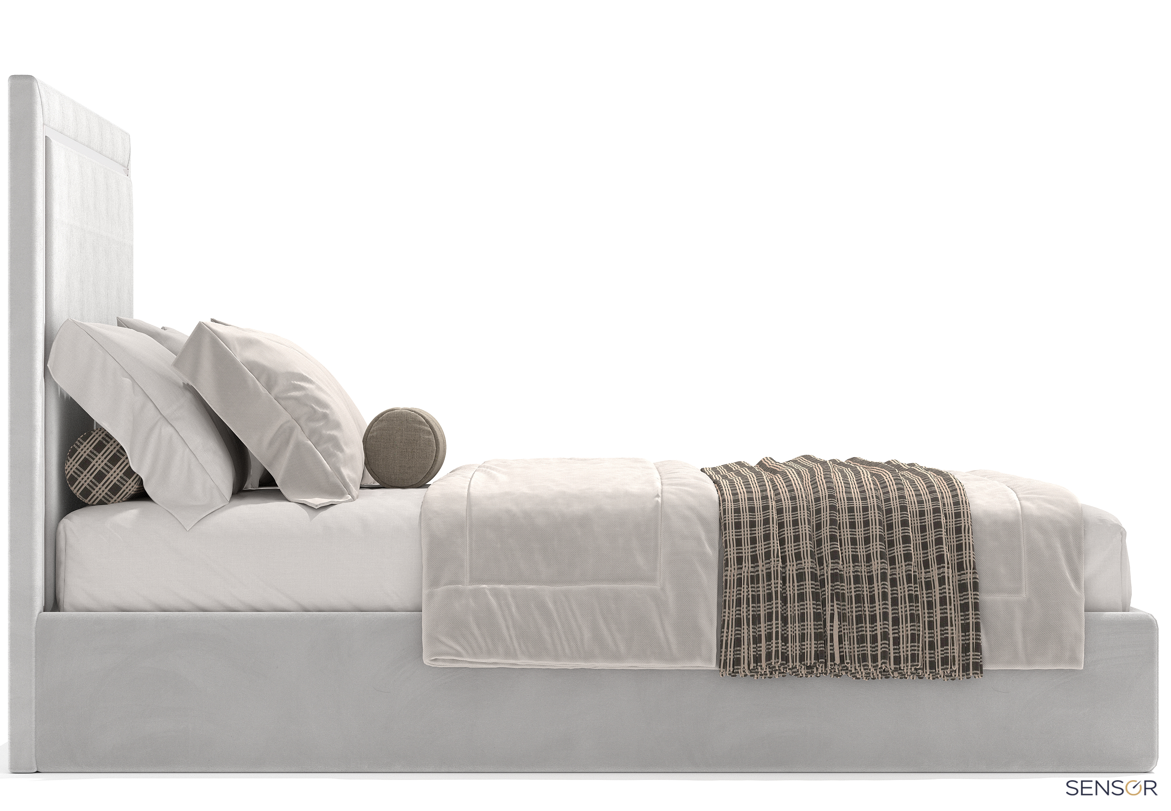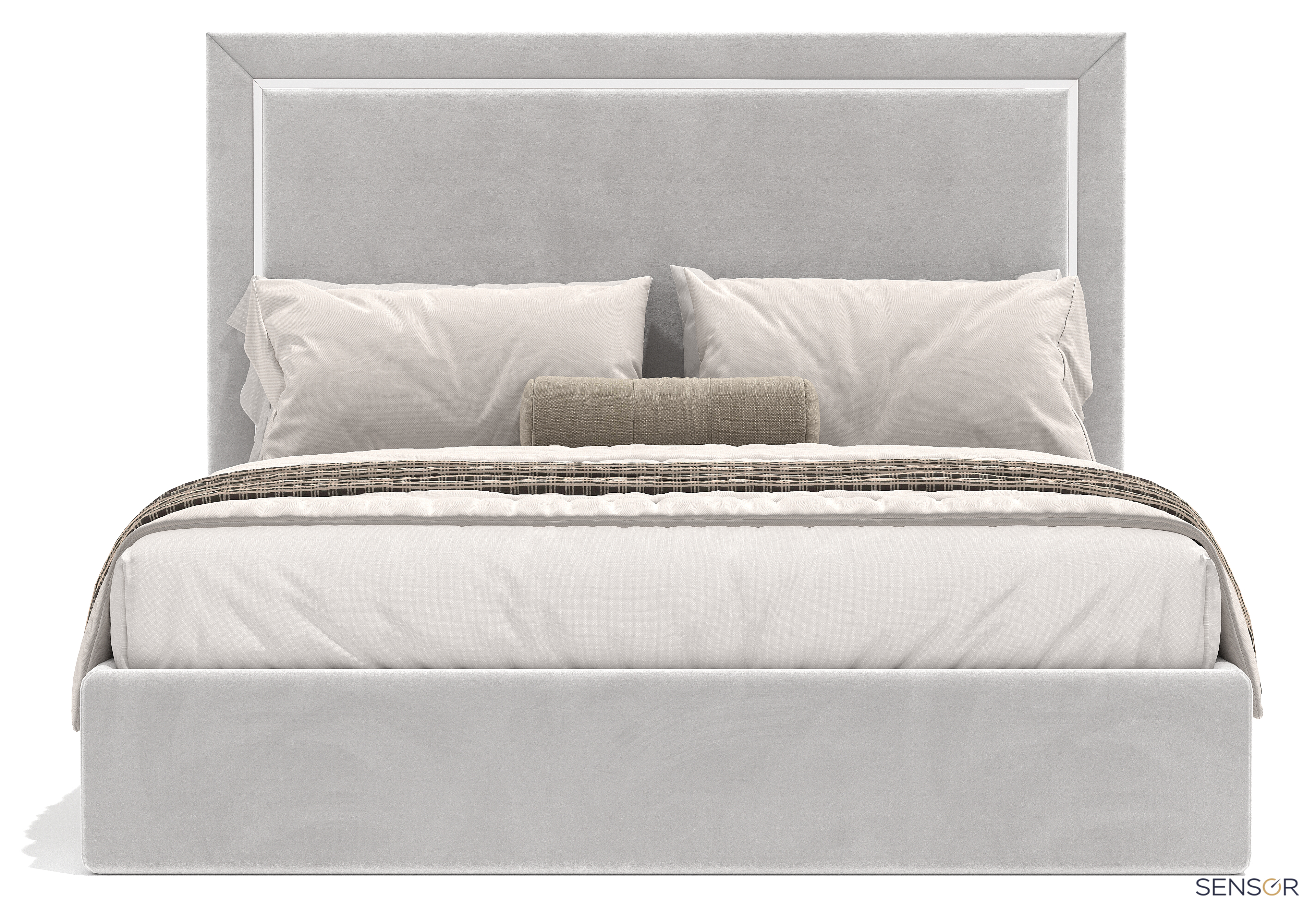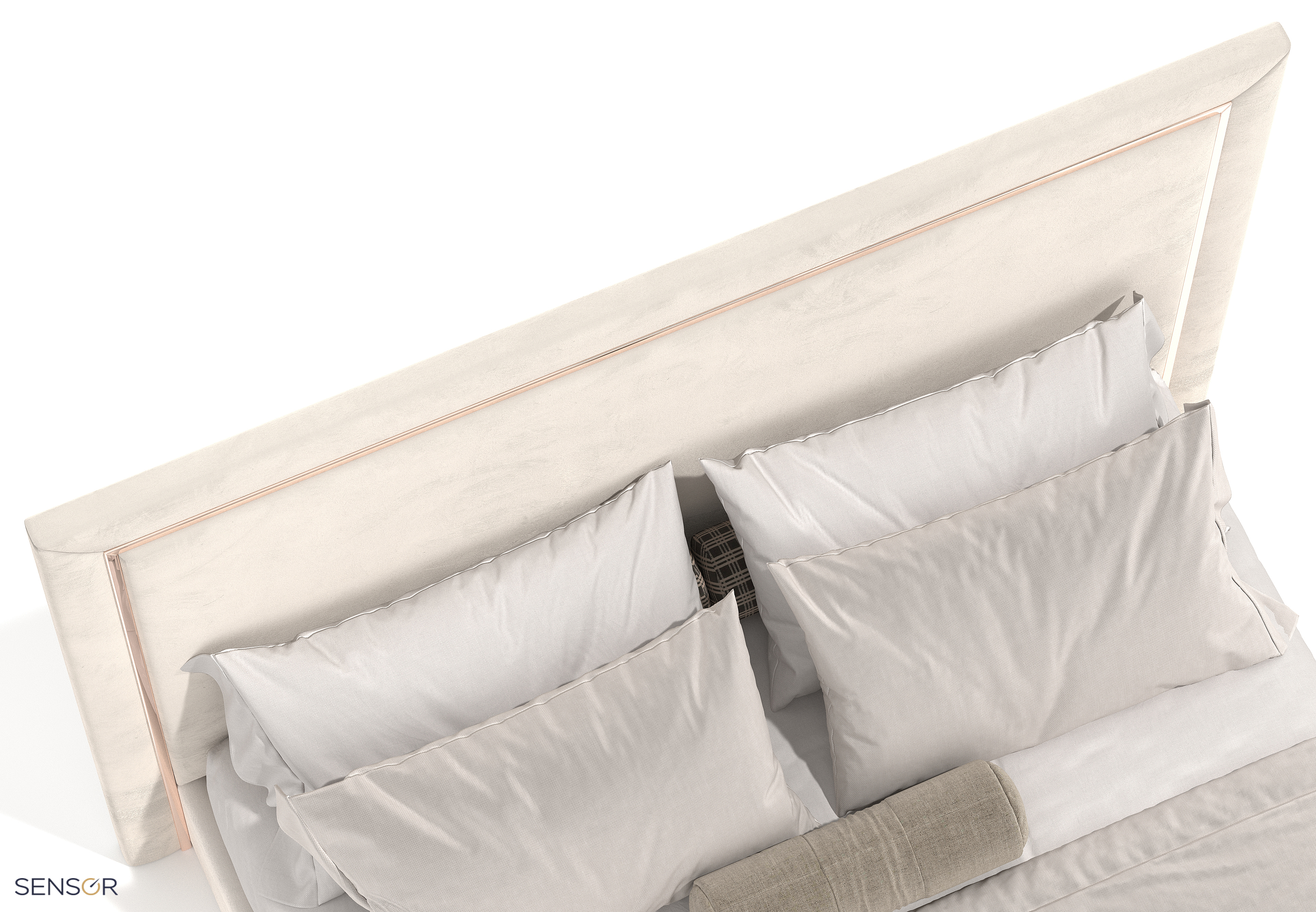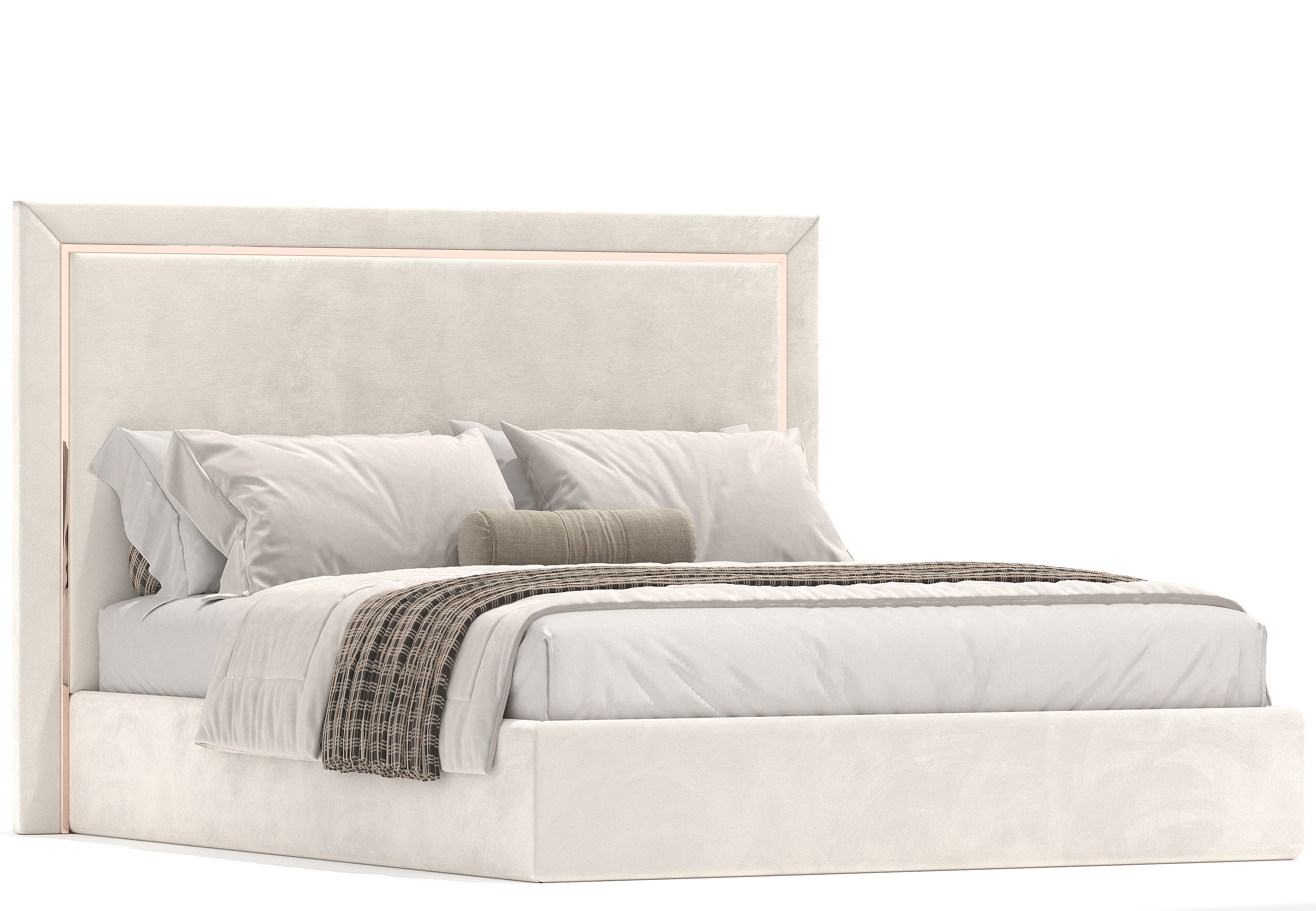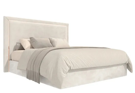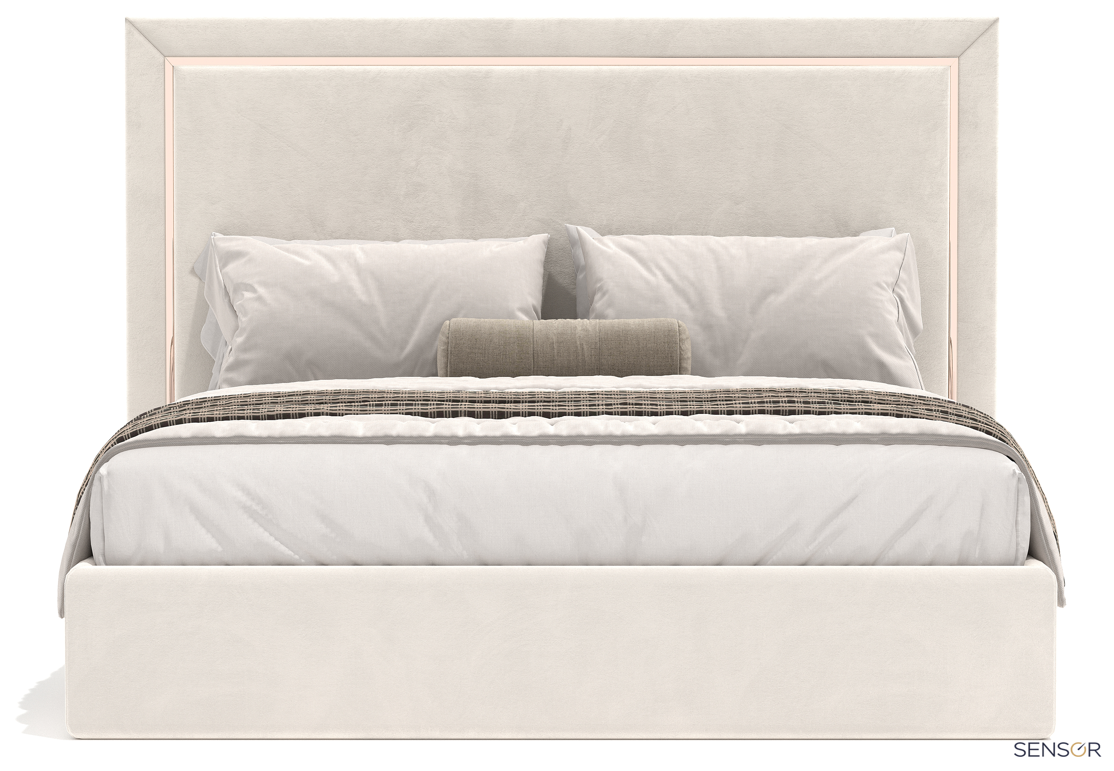 Эрика - удобная мягкая кровать, лаконично, минималистично, что даёт возможность поиграть цветом, текстурами тканей. Декоративный молдинг из латуни по периметру изголовья смотрится очень элегантно.