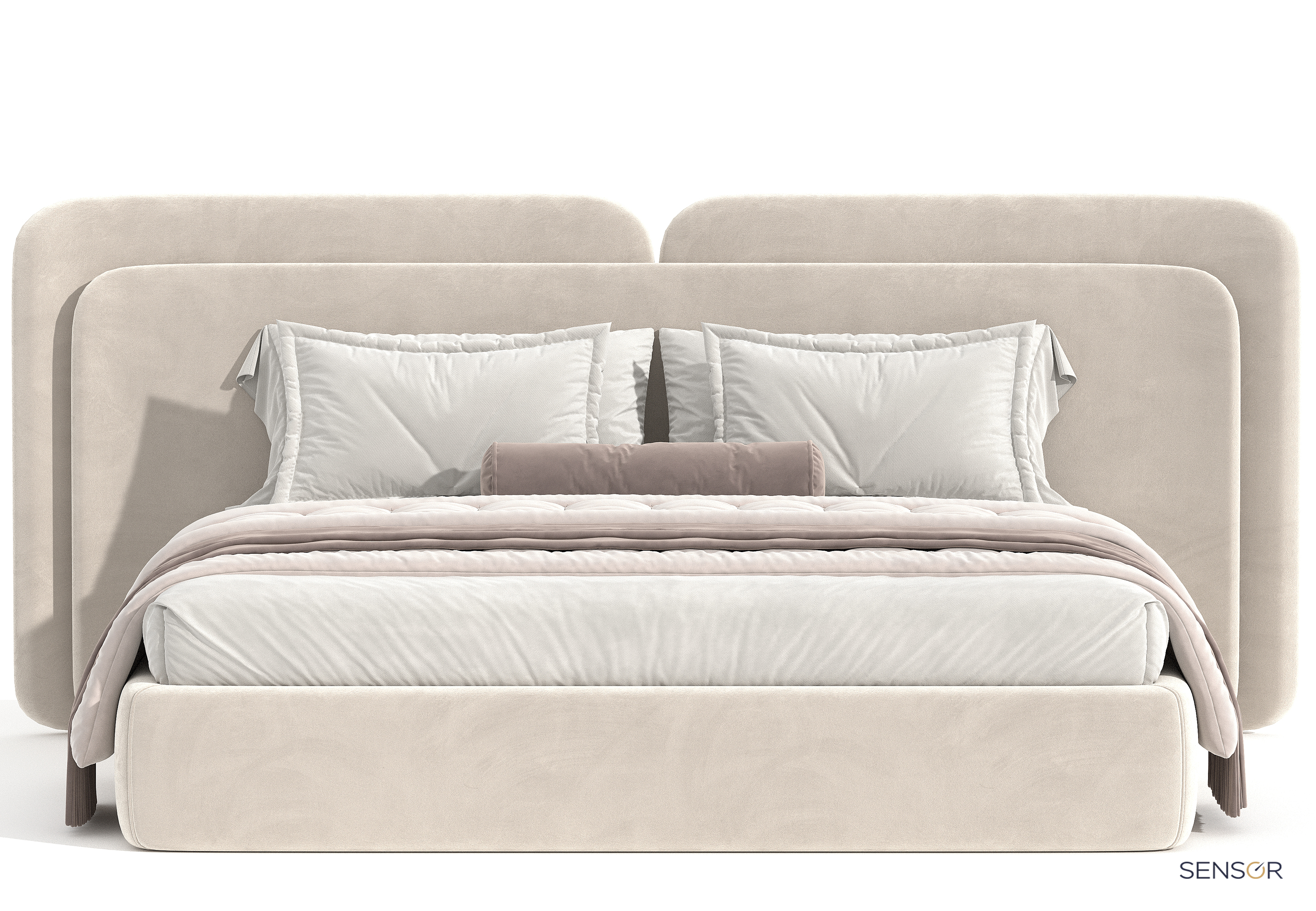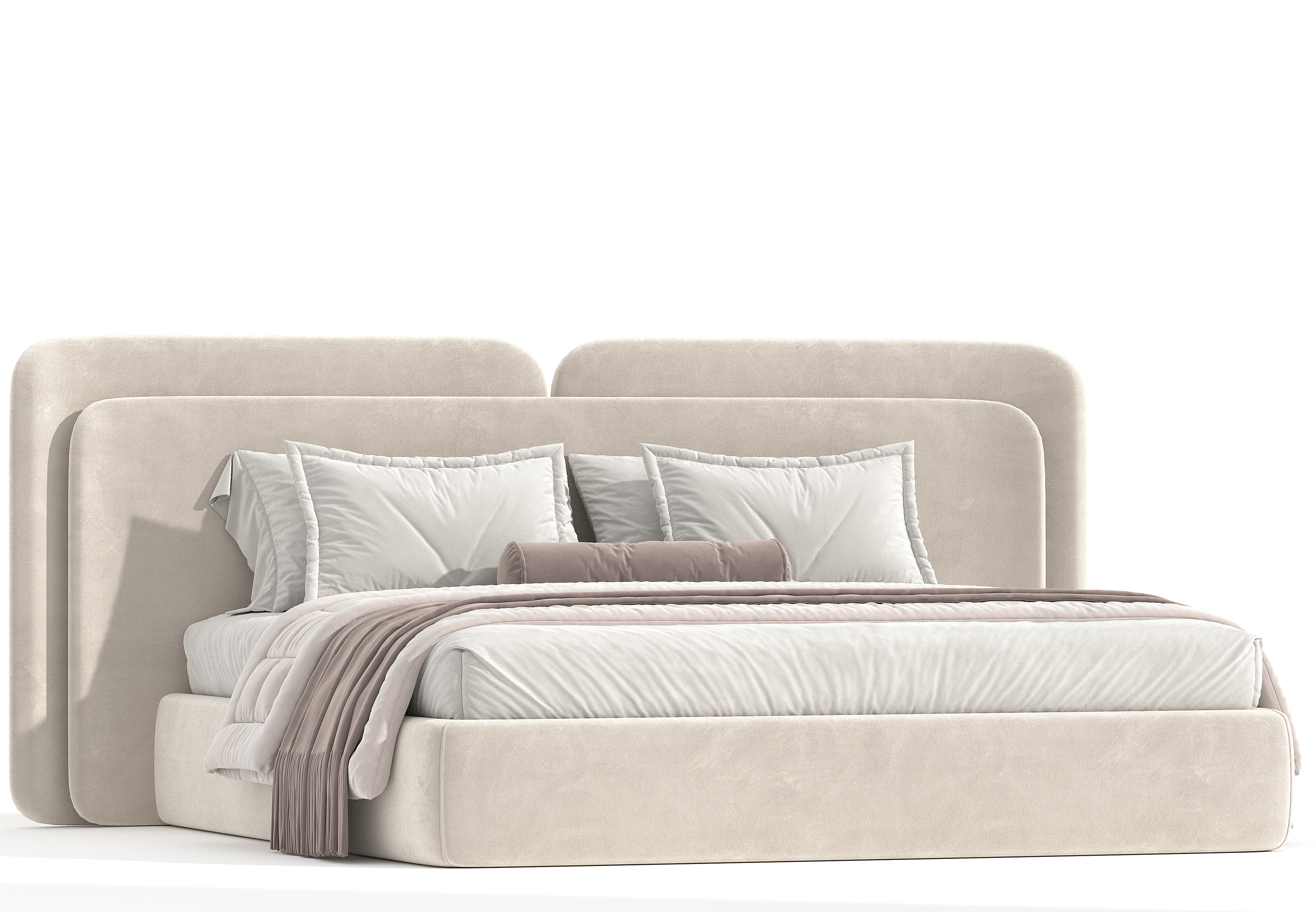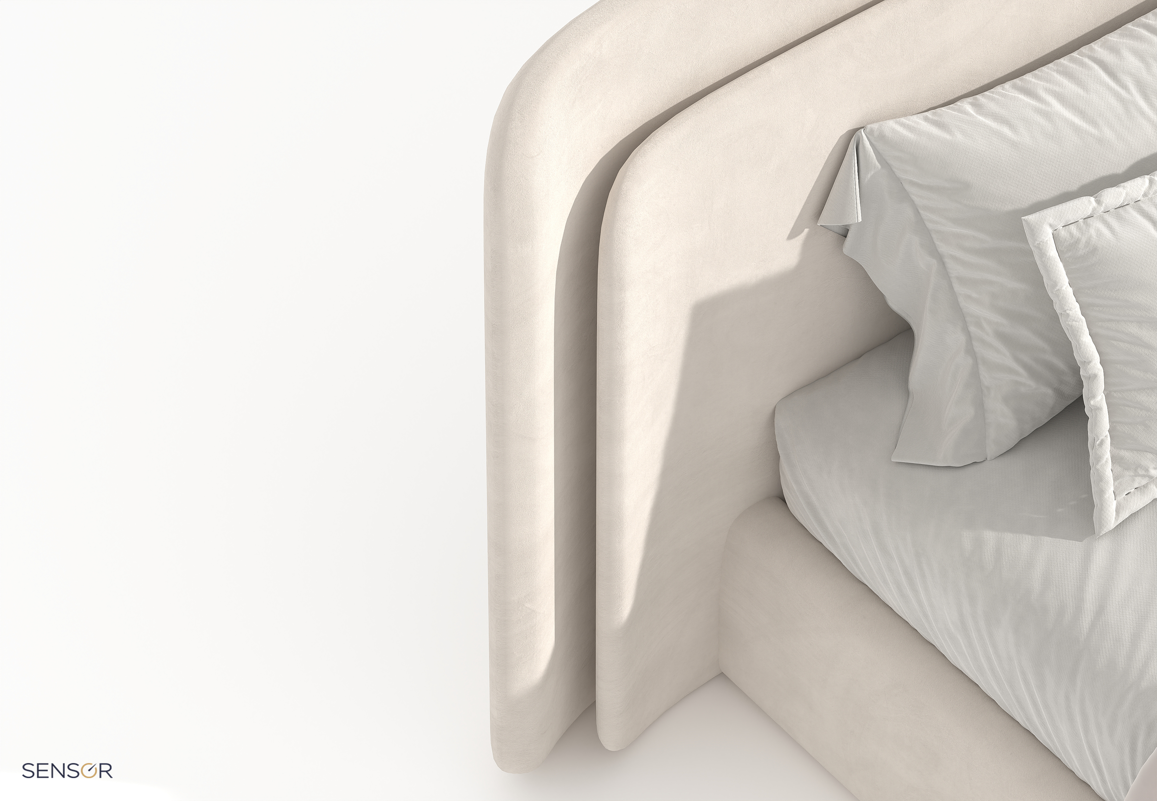 Дизайнерская кровать с широким изголовьем Эскада. Рисунок из плавных и загнутых внутрь геометрических фигур прекрасно подходит для разнообразных дизайнов, позволяя создавать идеальные интерьеры. Изголовье кровати — центральный элемент спального места. Можно оформить его лаконично, без излишеств, а можно превратить в настоящее произведение искусства.