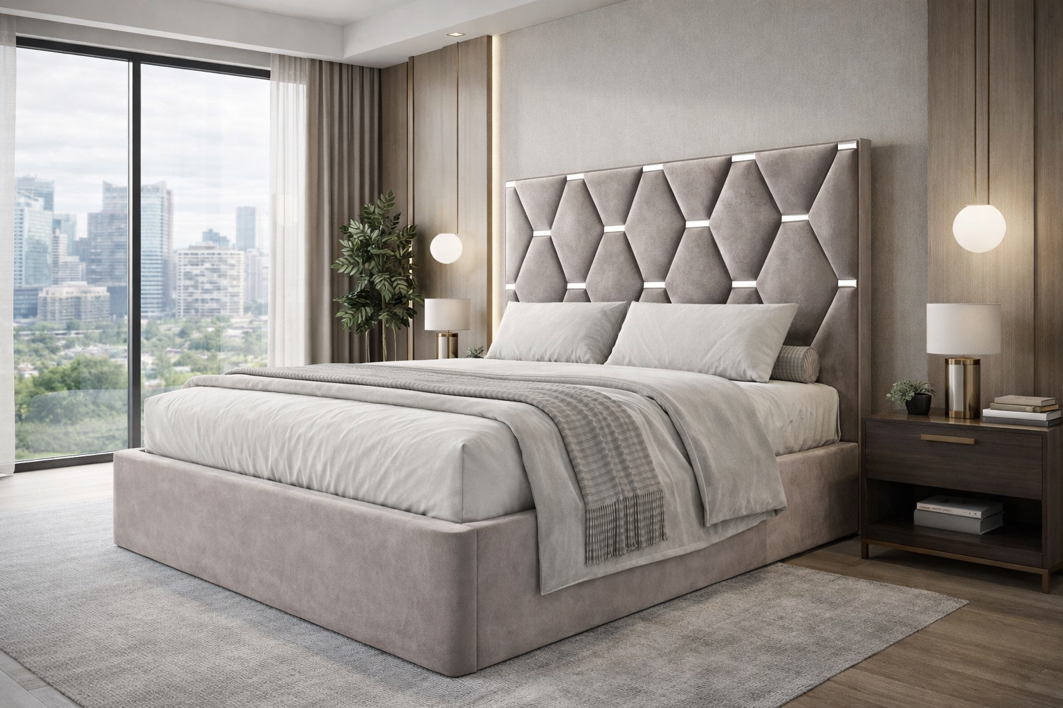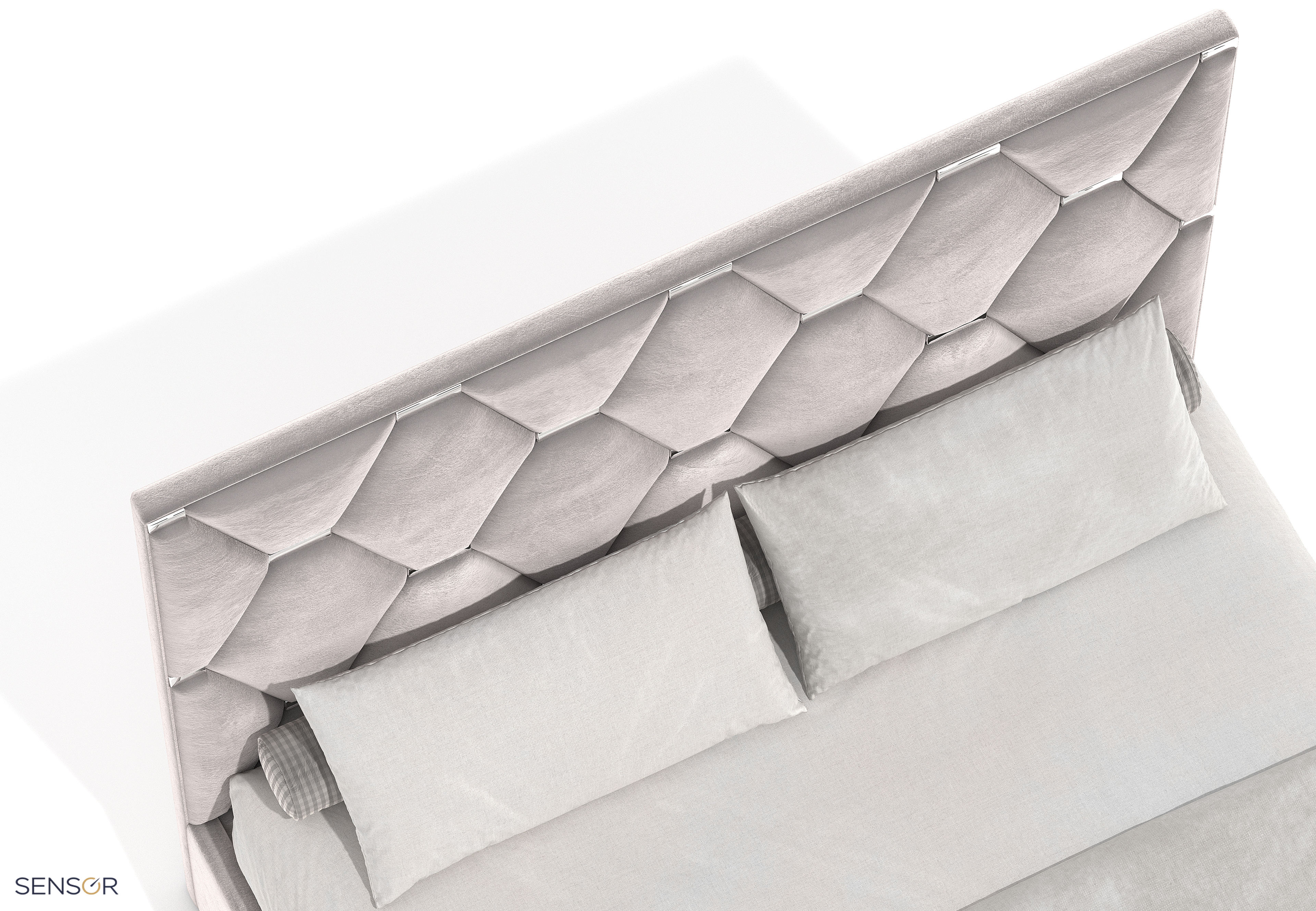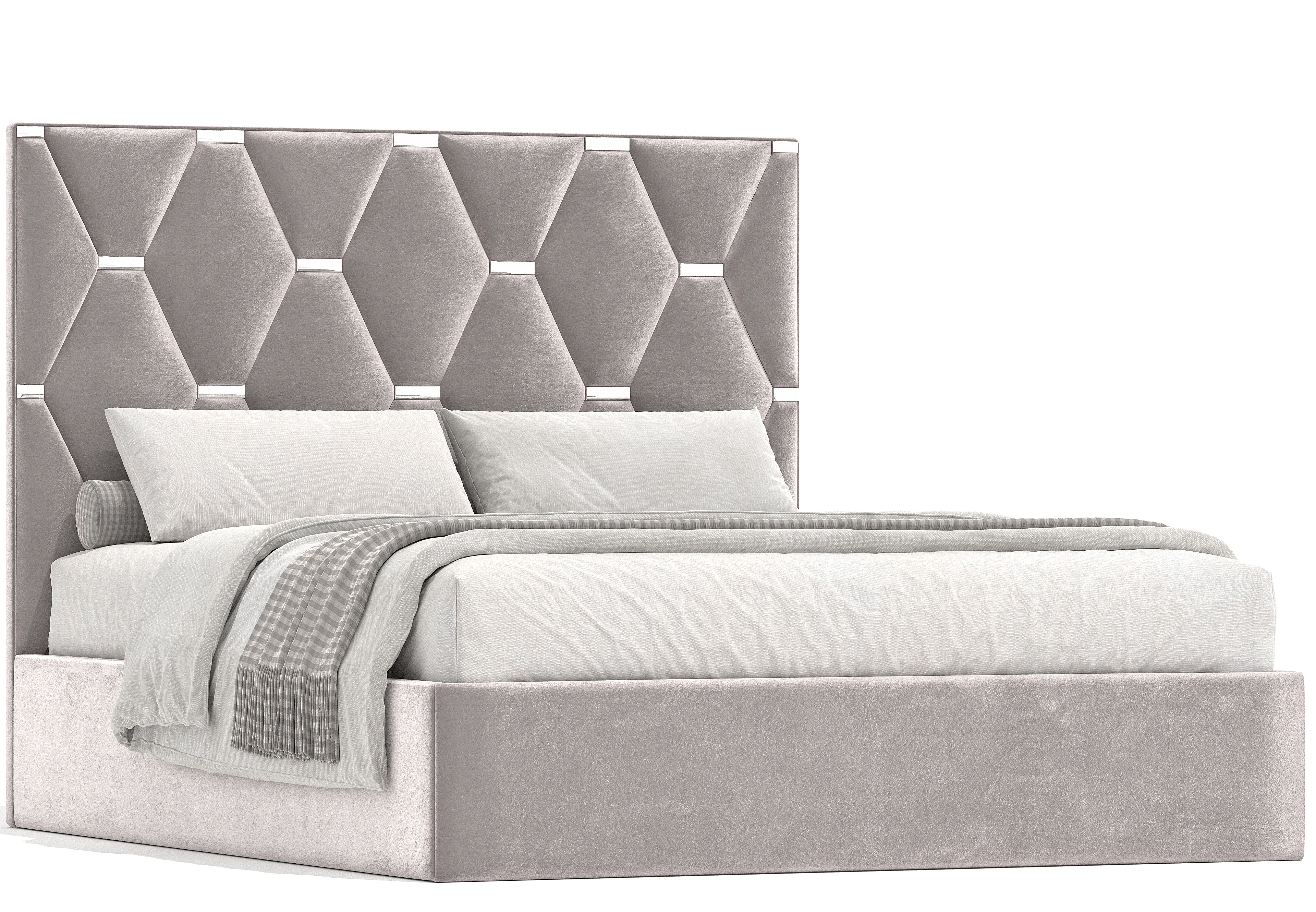 Кровать Фрателли с геометрическим рисунком изголовья для современной спальни. Изящные вставки из металла (серебро/золото на выбор) смотрятся элегантно, добавляя шика. Мебель на заказ имеет целый букет преимуществ. Вы выбираете ткань по цвету и текстуре в шоу-руме фабрики, или менеджеры делают подборку тканей из шоу-рума. Мы работаем с ведущими поставщиками дизайнерских тканей в России. Любую модель можно подкорректировать по размерам спального места, по высоте изголовья, вписать в нужные параметры.