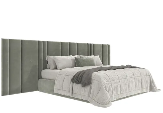 Кровать с широким изголовьем под тумбочки Калабрия. Сейчас такие модели находятся на пике популярности. Этому есть несколько причин: