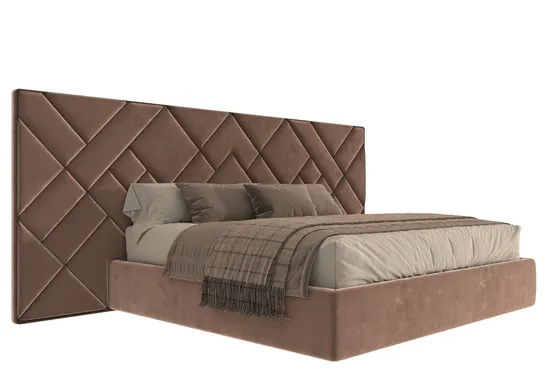 Дизайнерская кровать с широким изголовьем Кальвадос. Рисунок из геометрических фигур прекрасно подходит для разнообразных дизайнов, позволяя создавать идеальные интерьеры. Каждый элемент изготавливается отдельно, а затем, по принципу мозаики выкладывается общий рисунок изголовья. Изголовье кровати — центральный элемент спального места. Можно оформить его лаконично, без излишеств, а можно превратить в настоящее произведение искусства.
