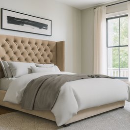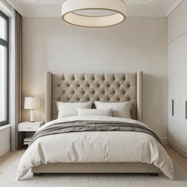 Кровать Картье с каретной стяжкой ромб. Отличительная черта этой дизайнерской кровати боковые ушки, отделанные декоративными гвоздиками. Мебельные гвоздики словно прорисовывают четкие линии изголовья. Без гвоздиков кровать выглядит более строго и аристократично. Боковые ушки ограничивают пространство, создают внутри атмосферу защищённости и комфорта. А ещё это ограничитель для подушки во время сна! Интерьер вашей спальни будет выглядеть изысканно и роскошно, если вы выберите эту модель!