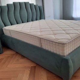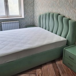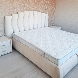 Линза - изголовье притягивает взгляд. Необычные изгибы создают ощущение кругов на воде от упавшей капли. Такое изголовье визуально расширяет пространство. А благодаря широкому выбору тканей, отлично впишется в любой интерьер. Кровать с подъемным механизмом - газлифт, при легком нажатии дает плавный подъем ортопедической решетке.