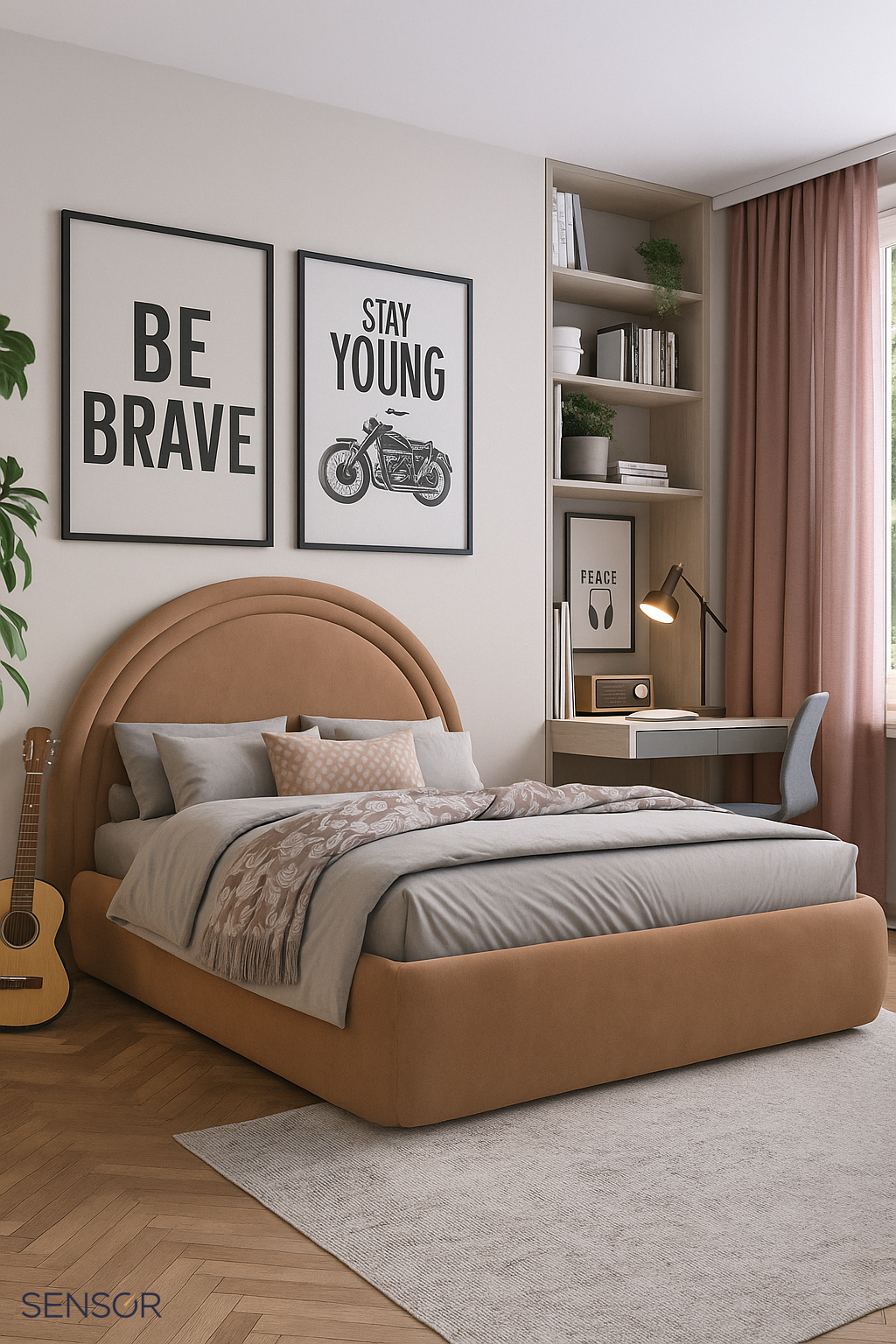 Дизайнерская кровать Левел для детской комнаты. Стильная, современная модель, лаконичный дизайн. Кровать с дизайнерским изголовьем вписывается в абсолютно любой интерьер, создаёт дополнительный комфорт и уют. Заказать детскую кровать на заказ с учётом вашего запроса по габаритам, дизайну и функционалу можно в шоу-руме фабрики. Оформить заказ можно и удаленно, менеджеры фабрики сделают вам качественный видео обзор по моделям и тканям, помогут подобрать нужный вариант.