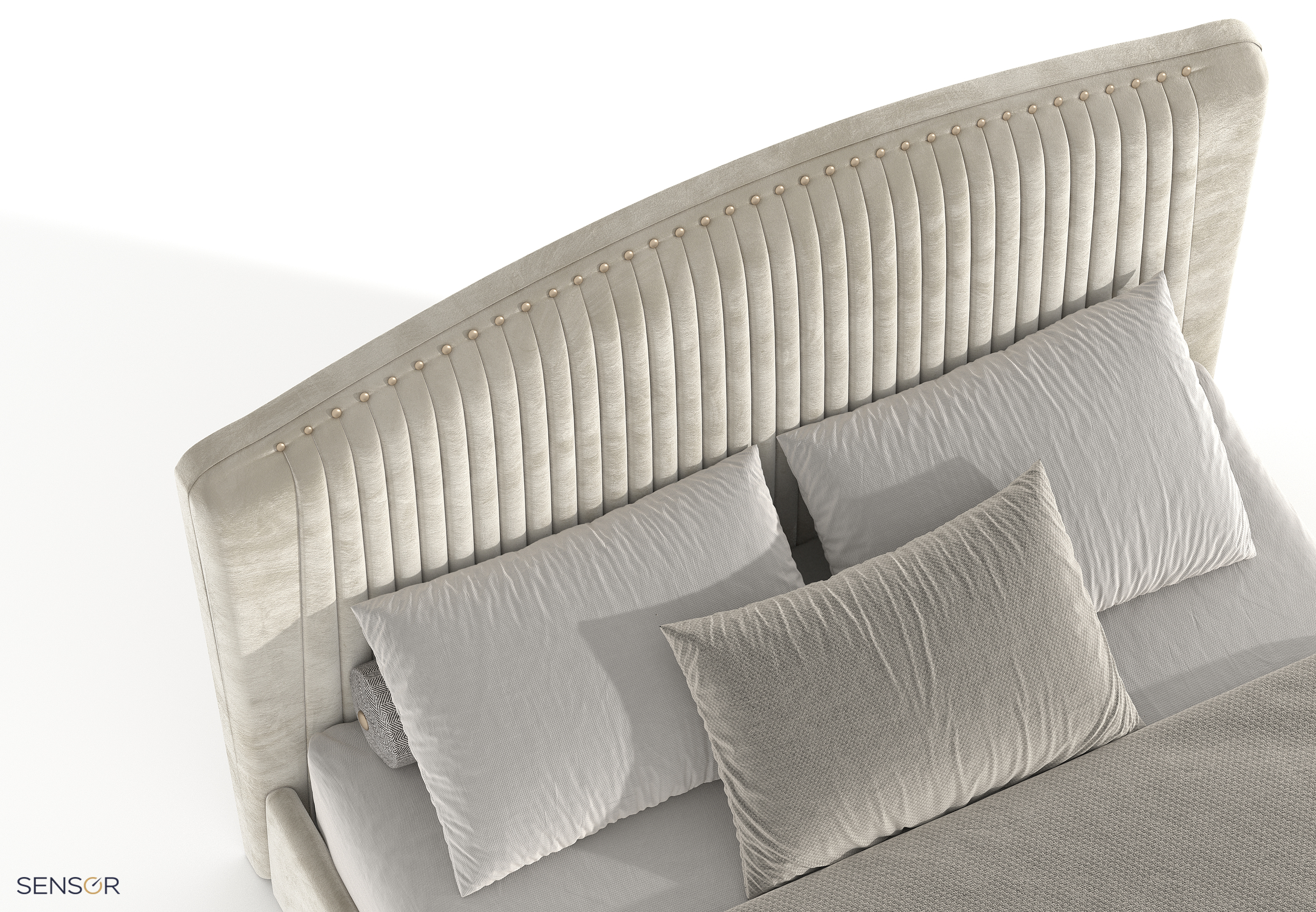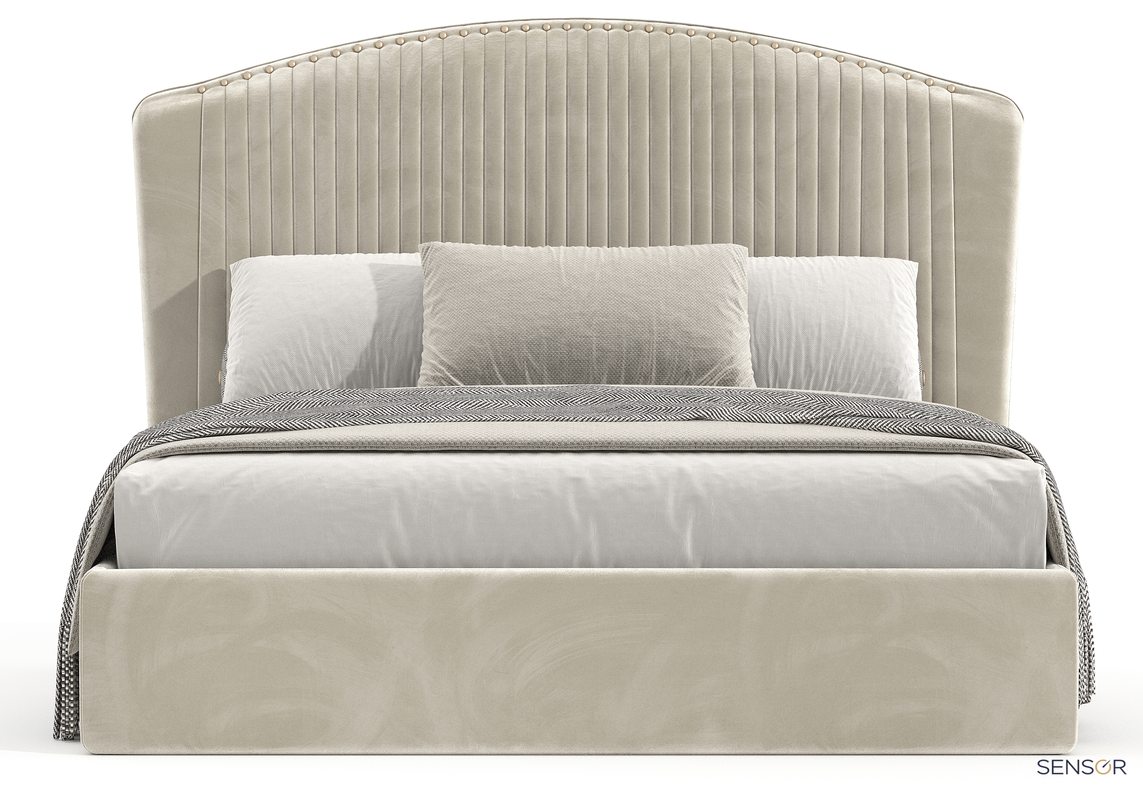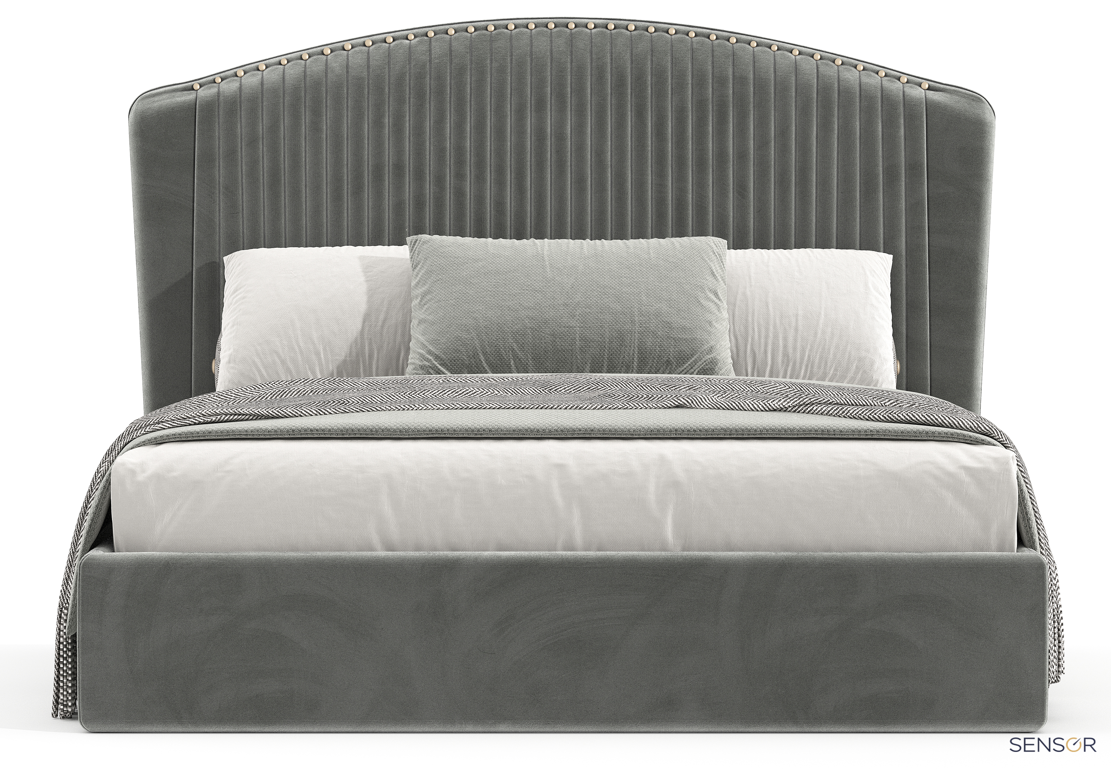 Элегантная кровать Пальмира прекрасный вариант для современного интерьера спальни. Шикарное, плавное изголовье, украшенное фактурными складками и штучным латунным гвоздем. Модель Пальмира сделает ваш интерьер неповторимым, индивидуальным! Яркая, дерзкая, особенная. Мы готовы создавать настроение вашей спальне, ведь у нас богатый выбор дизайнерских тканей, вы сможете подобрать по цвету и фактуре самые смелые варианты. Кровать Пальмира нежная, статная, сделано с любовью, каждую складочку аккуратно выкладывают мастера вручную, аккуратно фиксируя штучным гвоздем. Кровати от фабрики Сенсор это история про качество и стиль!