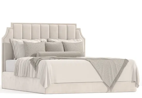 Двуспальная кровать Риоха для современной спальни. Ее выбирают за лаконичность и сдержанный дизайн. Вертикальные полосы «вытягивают» пространство вверх и «приподнимают» потолок. Модель идеально вписывается в интерьер спальной комнаты, оформленной как в классическом стиле, так и современном. Основной акцент в дизайне изголовья сделан на сочетание современных вертикальных полос и изящной багетной рамки в классическом стиле. Изготовление мебели на заказ даёт вам возможность подкорректировать высоту изголовья, подобрать ткань по цвету и текстуре. В шоу-руме фабрики вы можете оценить качество готовых изделий, посмотреть конструкцию кровати.
