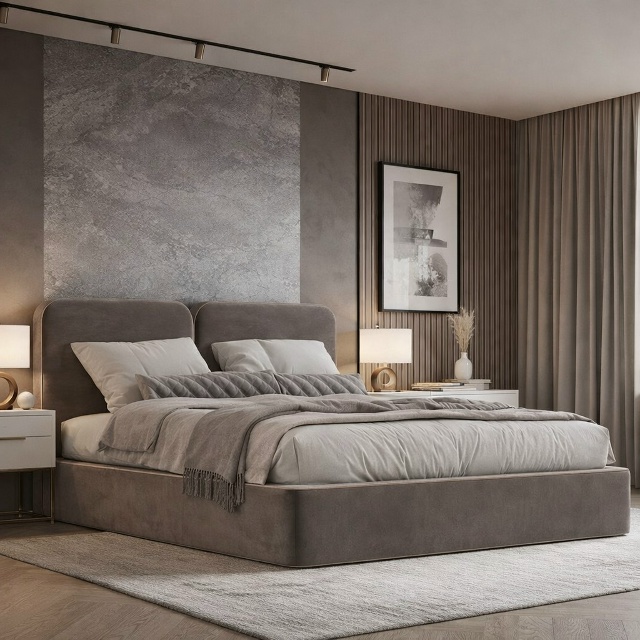 Дизайнерская мягкая кровать Румика - универсальная модель для современного интерьера спальни. Эта модель подкупает своим минималистичным дизайном и мягкими формами. Плавные линии изголовья кровати продиктованы модными тенденциями, модель прекрасно впишется в самые разнообразные современные интерьеры. Для отделки подушек изголовья может быть применен как декоративный кант под цвет кровати или контрастный, так и в цвет кровати. Более 300 коллекций дизайнерских тканей, более 10 000 вариантов по цвету на выбор, чтобы выбрать именно то что подходит для вашего интерьера. В шоу-руме мебельной фабрики Сенсор в Москве Вас ждет множество вариантов двуспальных дизайнерских кроватей, которые идеально дополнят вашу спальню. От мягкой спинки до изящных ножек – каждый элемент кровати тщательно продуман. Преимущество элитных кроватей на заказ - сами определяете размер, материал и цвет обивки, изголовье, выбираете фурнитуру. Мы реализуем самые амбициозные идеи.