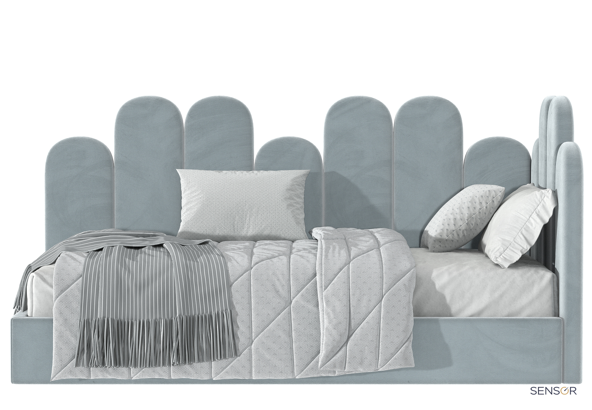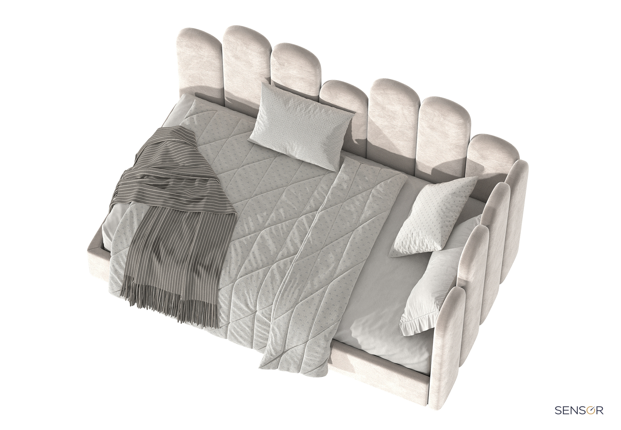 Савоярди kids разноуровневая - стильный, модный дизайн, сейчас в топе. Действительно, изделие смотрится очень мило, а детали спинок похожи на знаменитое печенье Савоярди. Здесь совместная креативная работа заказчиков, менеджера и конструктора. В шоу-руме фабрики подобрали ткани, цвета, а конструктор распределил заданный рисунок на нужный размер. И уже на готовом эскизе заказчик комбинировал цвета. Казалось бы, ничего сложного, но проделана большая совместная работа, надеемся, вам понравится.