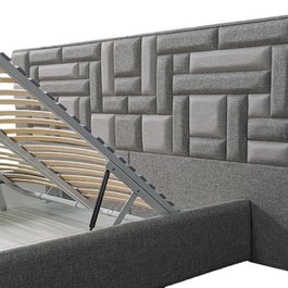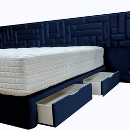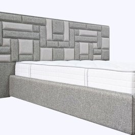 Дизайнерская кровать с широким изголовьем Стоун. Геометрические формы создают атмосферу упорядоченности и гармонии. Квадраты стильно дополняют прямоугольники, а мелкие детали, средние и крупные формы прекрасно сочетаются. Каждый элемент изготавливается отдельно, а затем, по принципу мозаики выкладывается общий рисунок изголовья. Четкие линии, прямые углы прекрасно сочетаются со сдержанными современными стилями. Рисунок изголовья адоптируется под ваши габариты, именно для вашей спальни, индивидуально. Дизайнер фабрики отрисовывает и согласовывает с вами эскиз перед запуском в работу.
