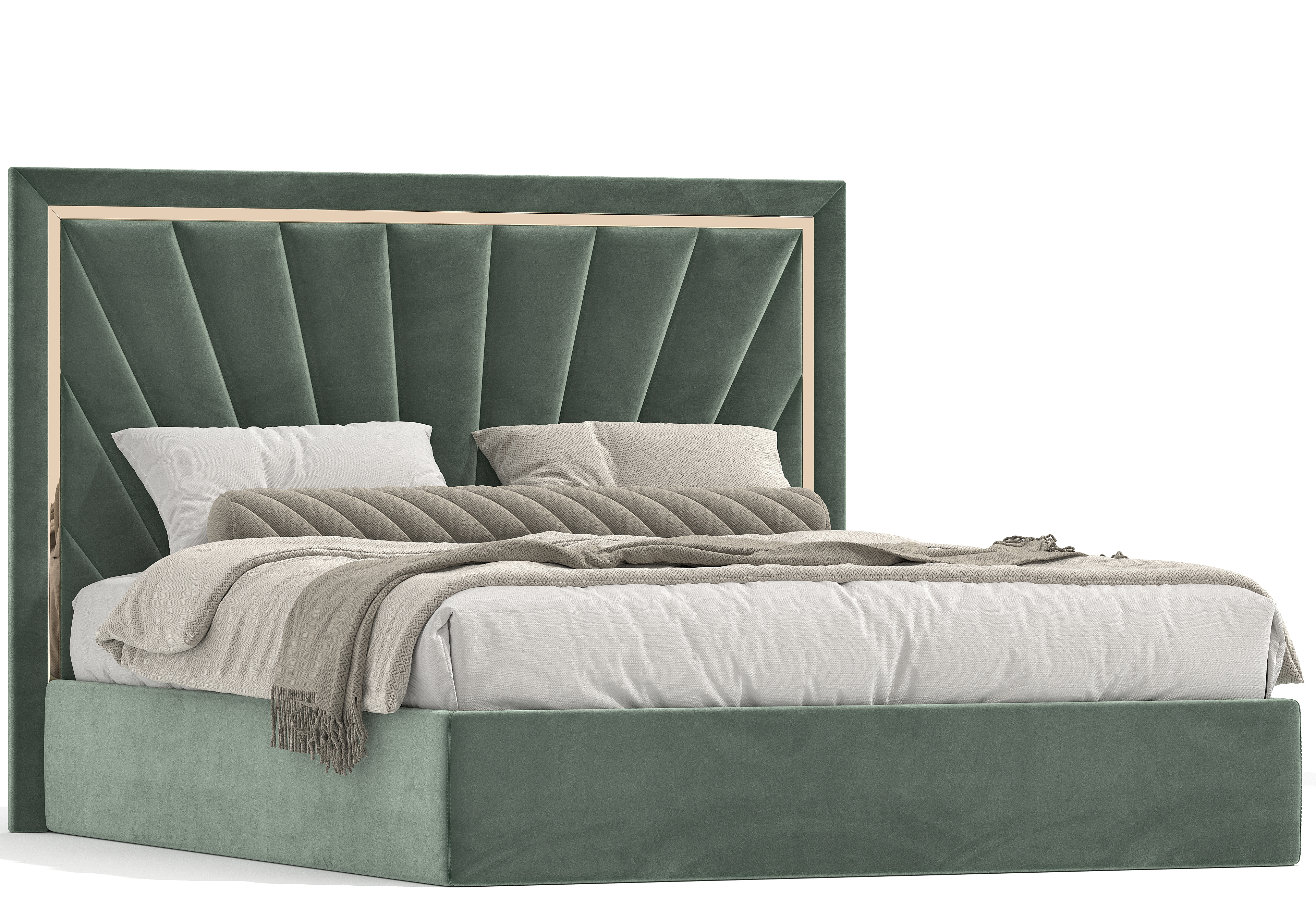 Тренд на латунь держится уже несколько лет, дизайнеры активно используют модный металл в своих проектах. Декоративная отделка по периметру изголовья латунным молдингом смотрится стильно, добавляет шика дизайну изголовья. Цвет декоративного молдинга на выбор (золото, серебро).