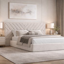 Кровать с широким изголовьем Торонто с геометрическим рисунком изголовья. Геометрические формы создают атмосферу упорядоченности и гармонии. Такой вариант прекрасно впишется в современный интерьер спальни. Каждый элемент на изголовье изготавливается отдельно, собирается и обтягивается вручную.