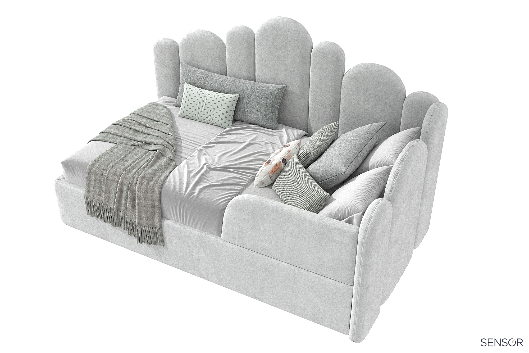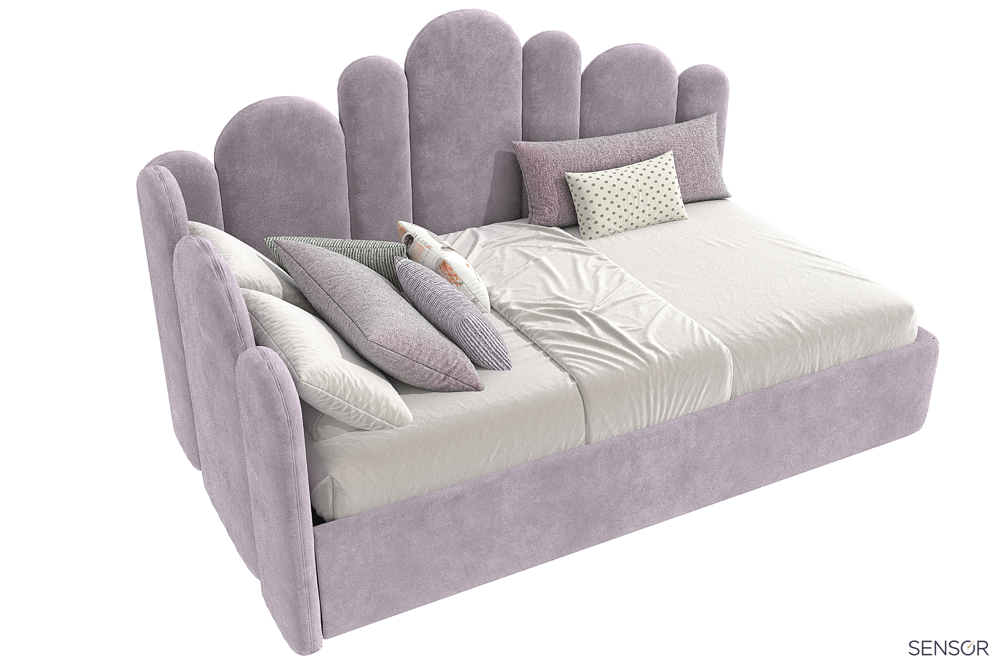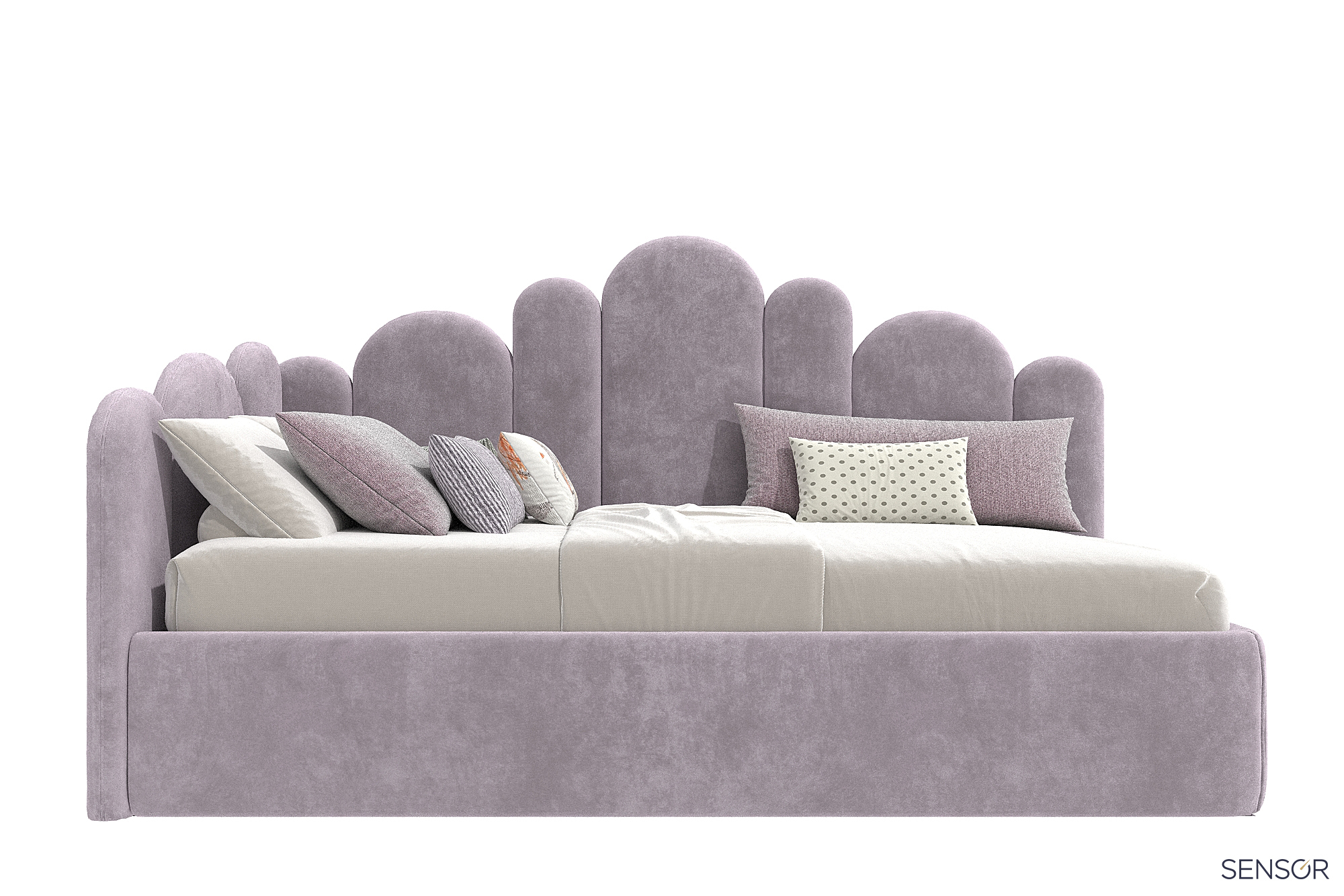 Угловая мягкая кровать Бамбини Дизайн для современной детской спальни. Универсальный дизайн изголовья подойдет как для девочки, так и для мальчика. Выбирая изготовление кровати на заказ, вы получаете возможность сделать её в нужных вам размерах, нужного вам цвета!