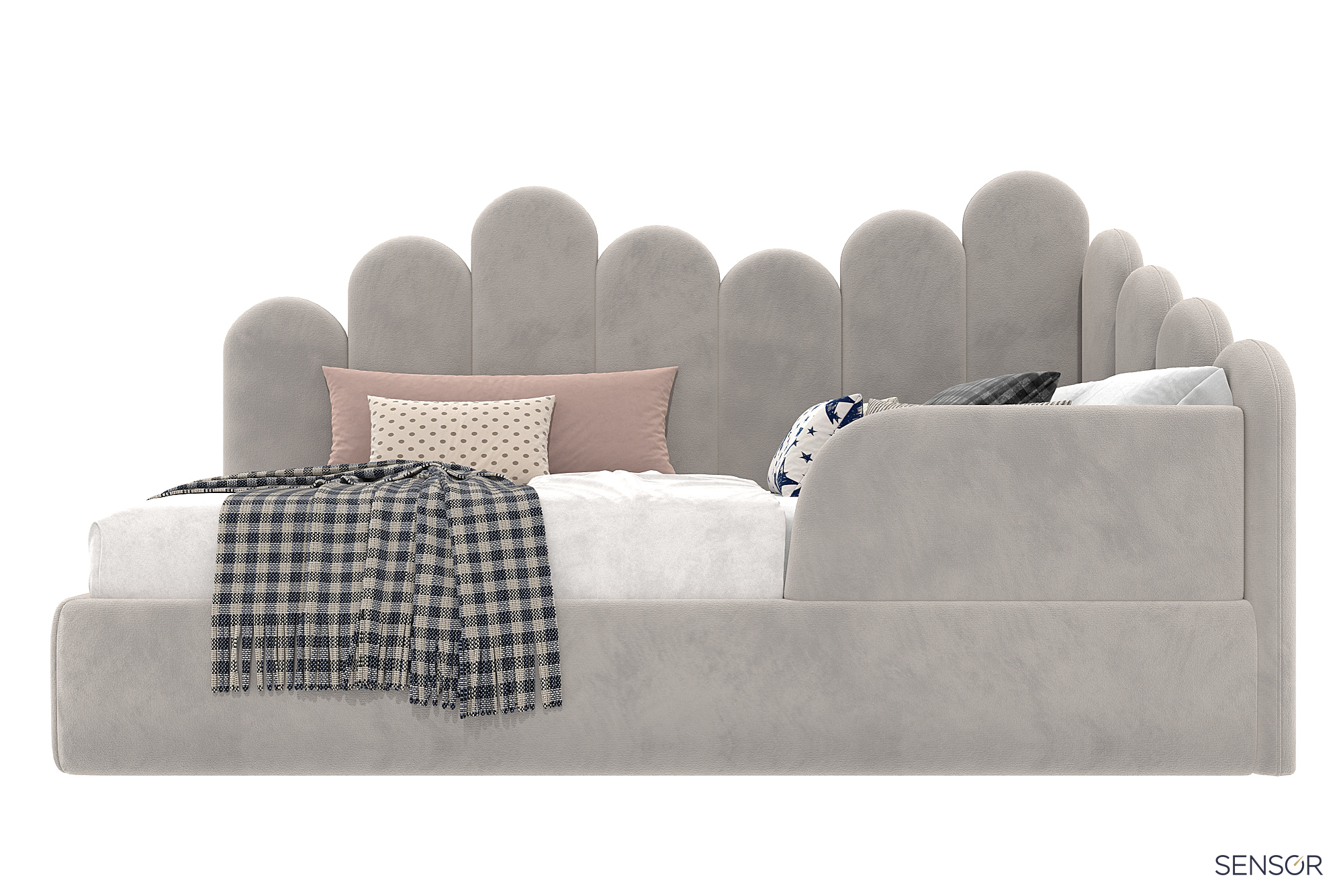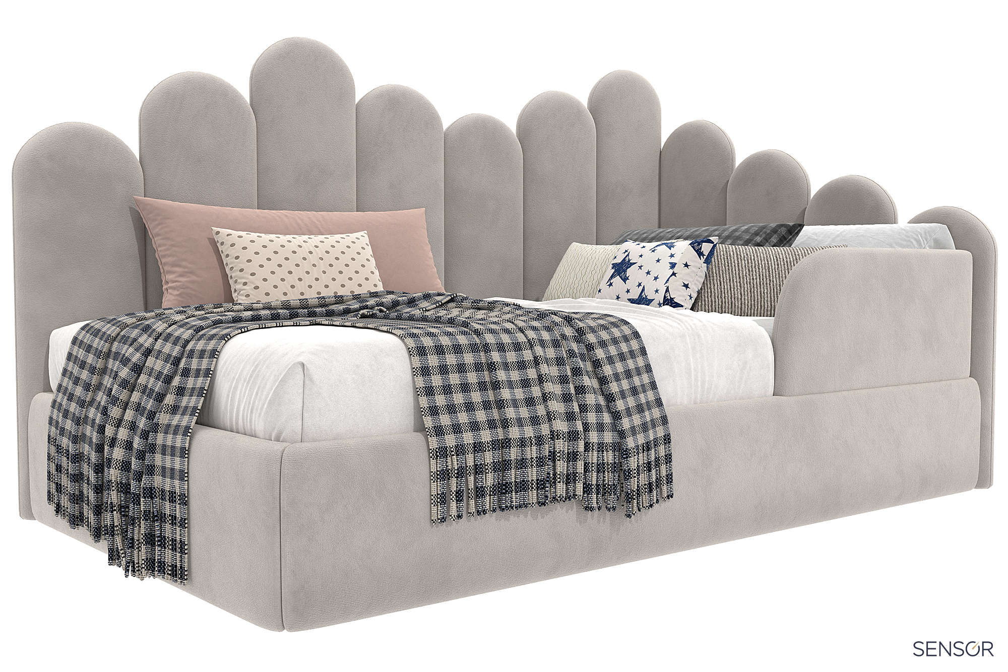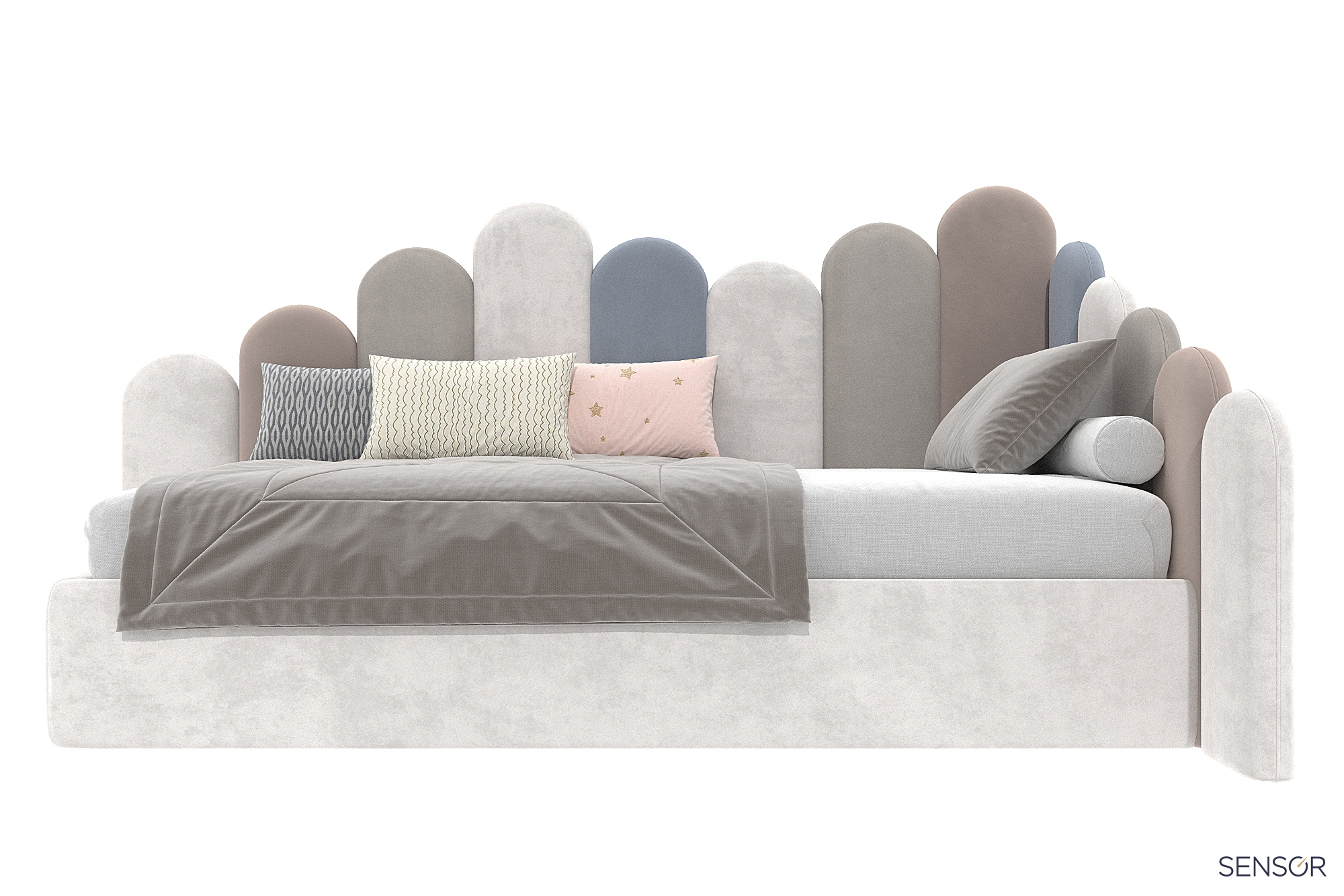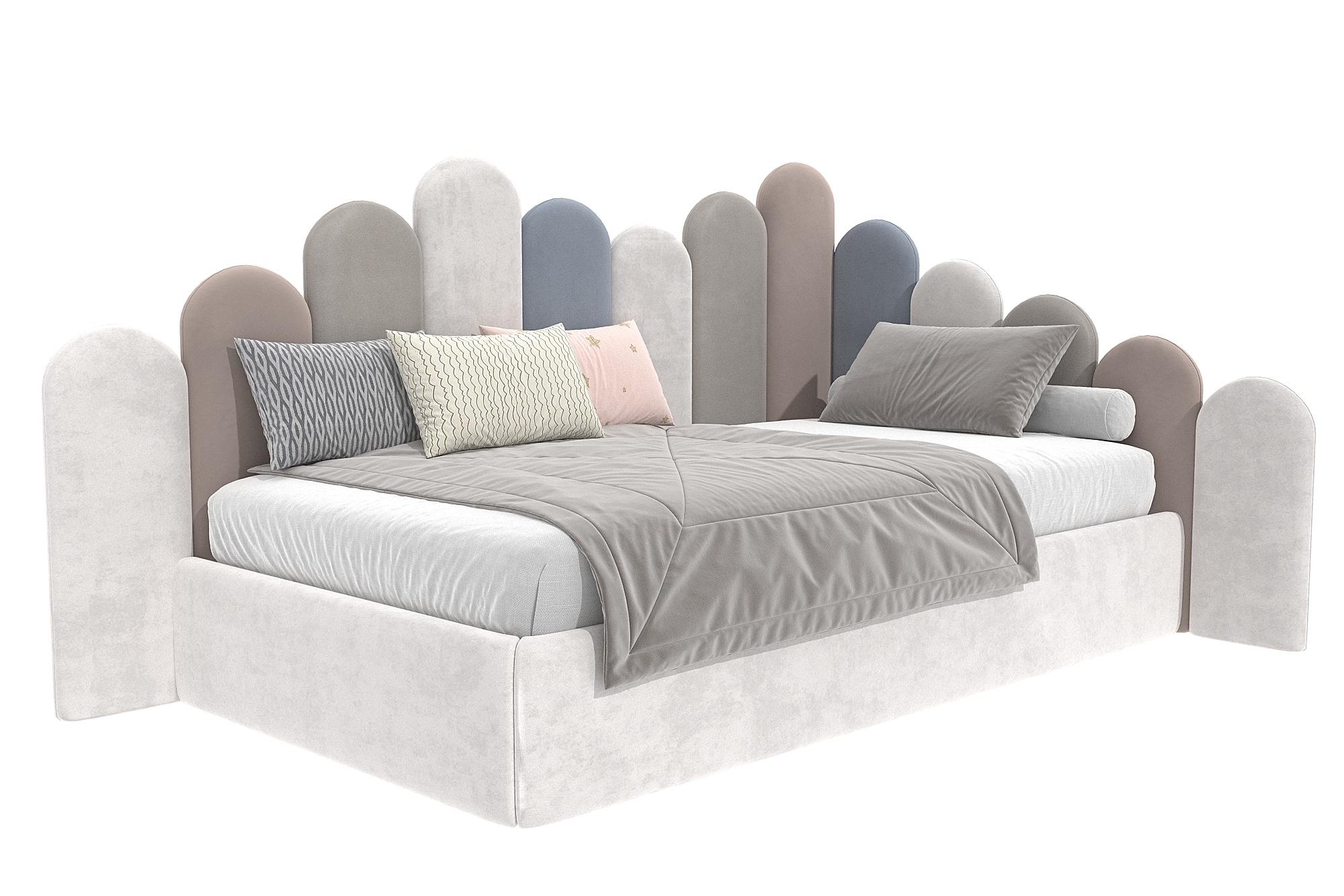 Кровать угловая Бамбини разноуровневая - красивое дизайнерское решение детской мягкой кровати. Стильный модный дизайн, сейчас на пике популярности! Мечта каждого ребенка - красивая и оригинальная кровать. Ручная работа мастеров фабрики.