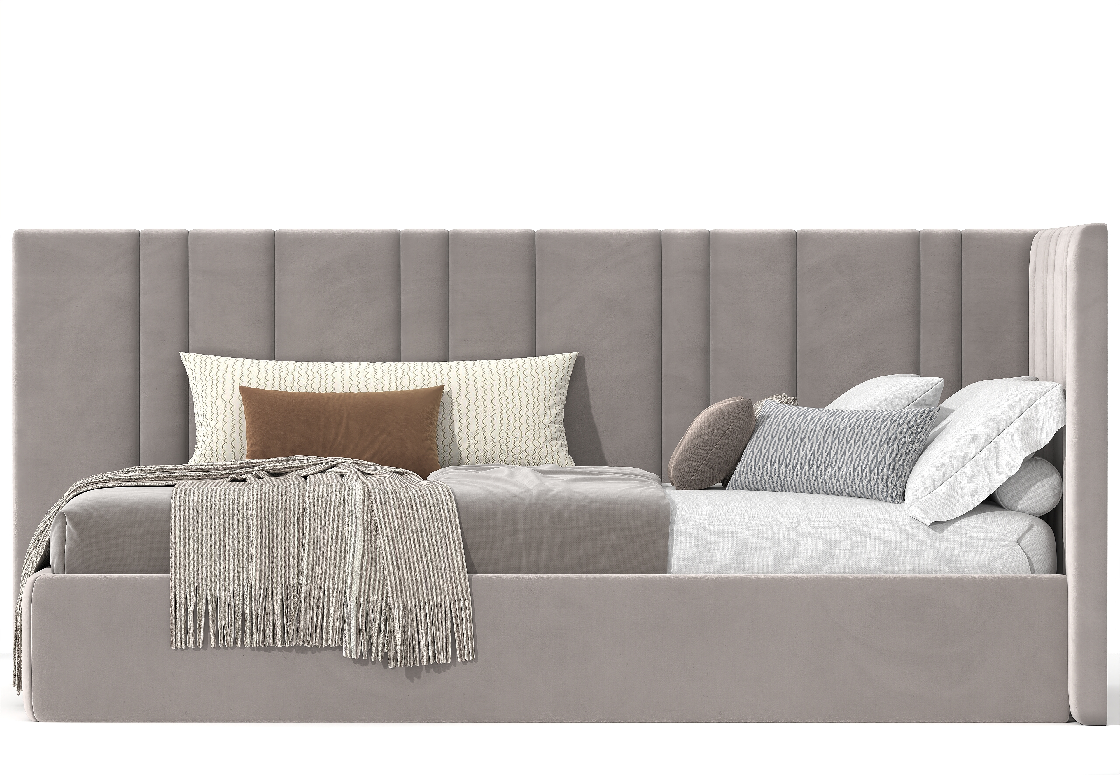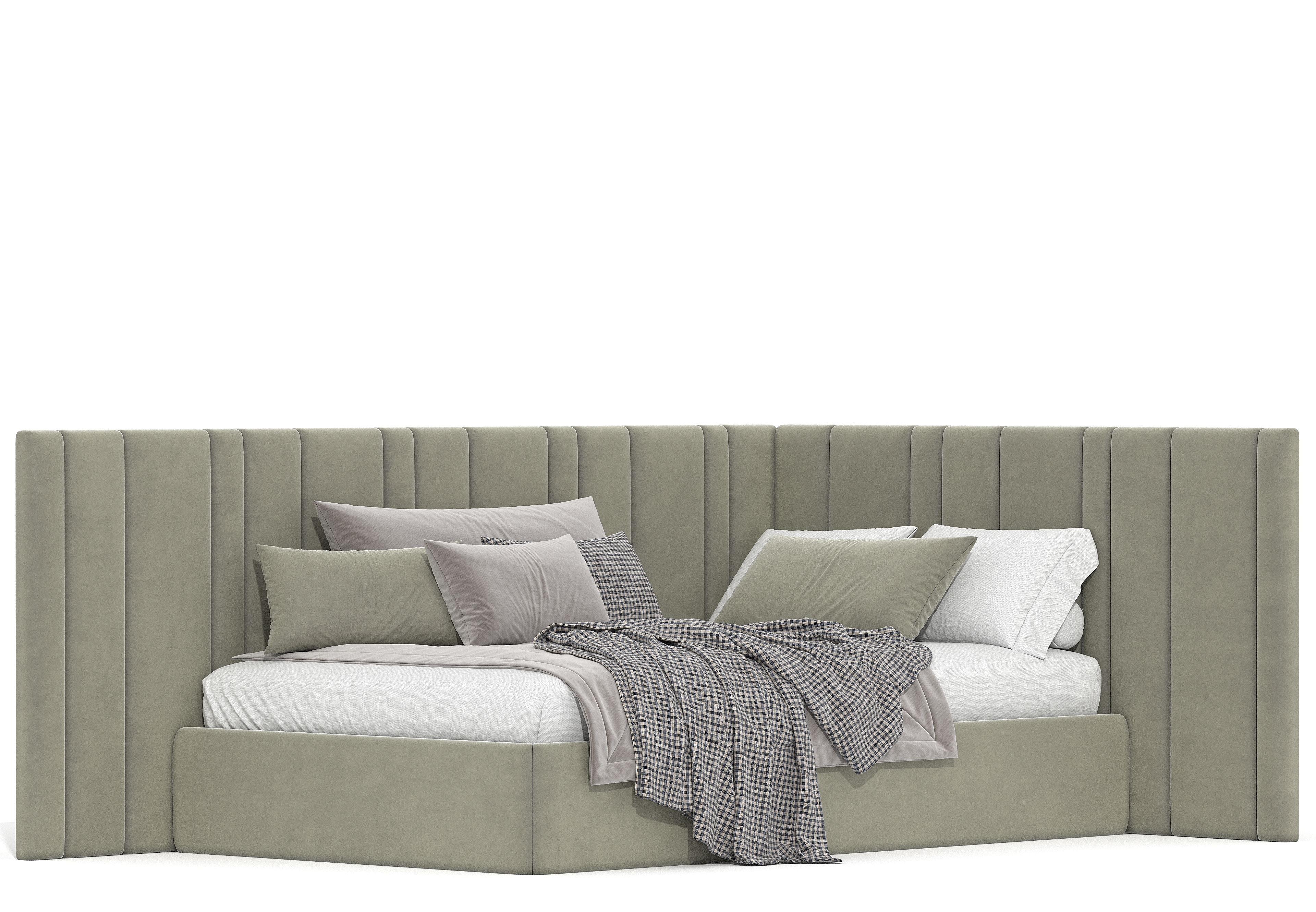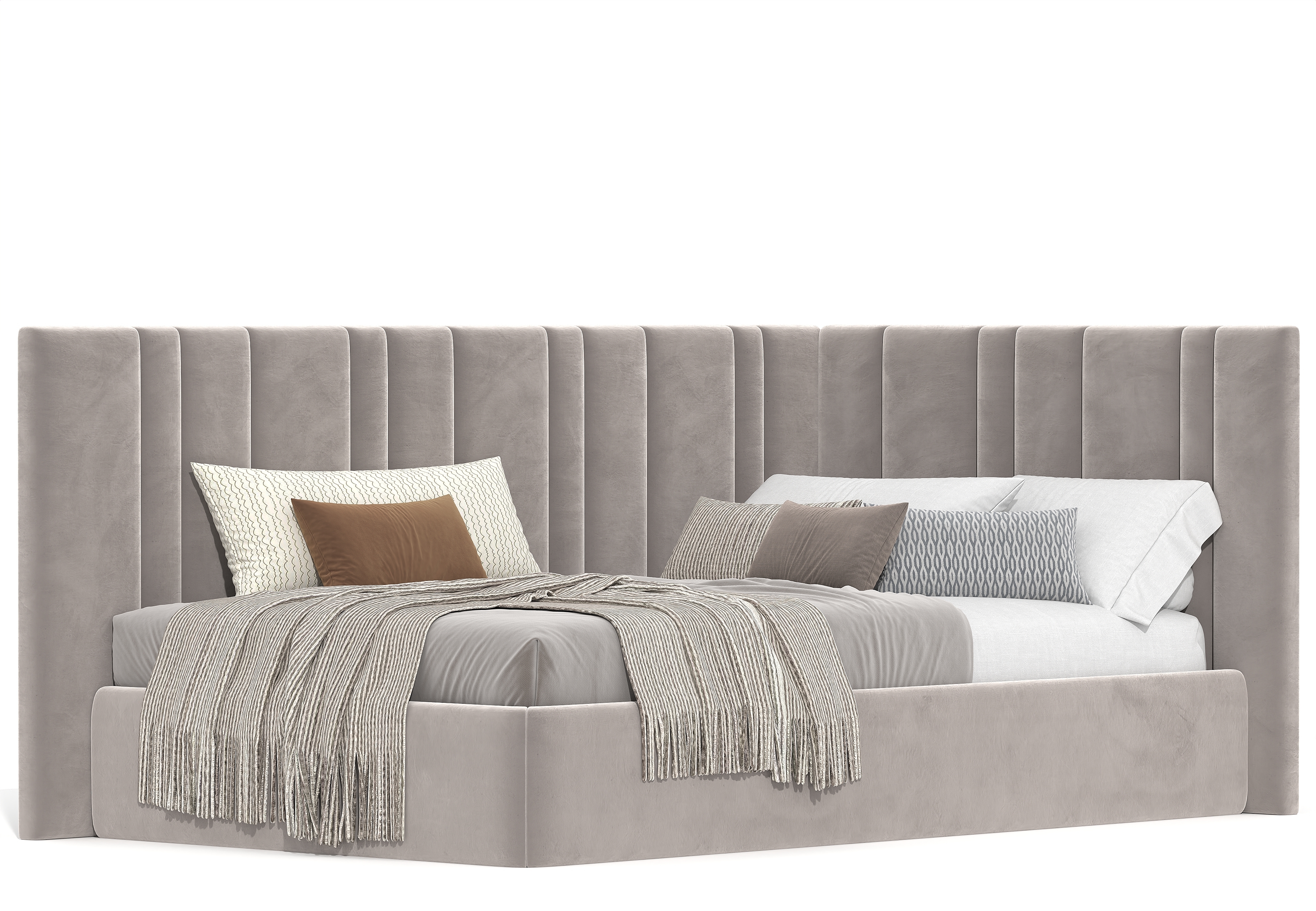 Кровать угловая Денди дизайн kids - подростковая кровать, сочетающая в себе удобство и функциональность. Стильный дизайн, где каждый элемент собран и обтянут вручную. Элементы продублированы и на царгах кровати. Модель подойдет как для девочек, так и для мальчиков.