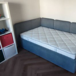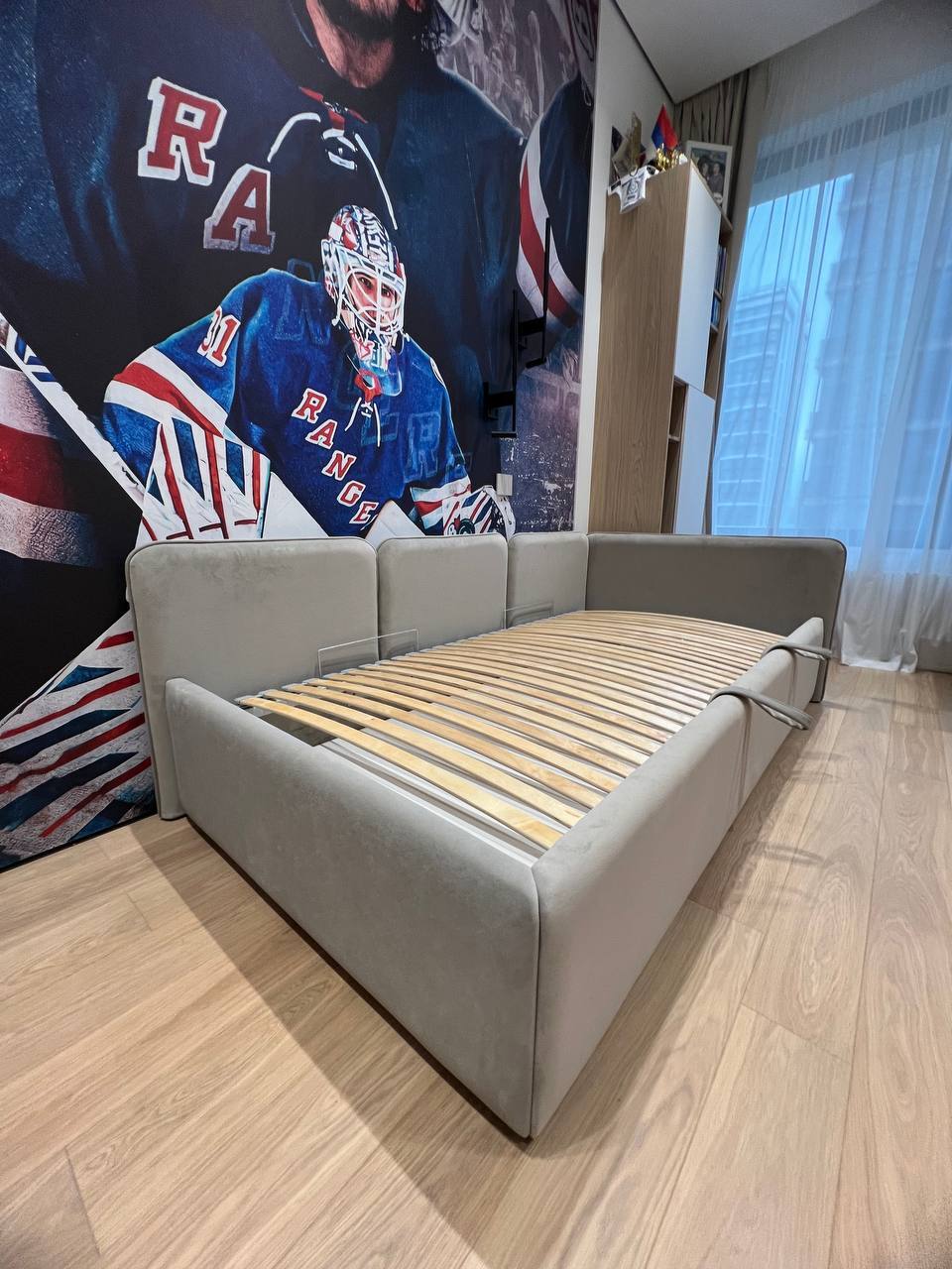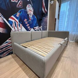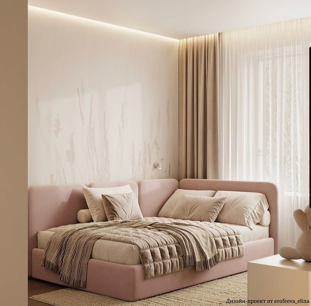 Угловая кровать Флит дизайн Проект № 2 для современной деткой комнаты. Решение, привлекающее своей практичностью и выразительностью. Выверенные пропорции, использование экологичных гипоаллергенных материалов в основании каркаса и современных наполнителей – гарантия качества и удобства нашей мягкой мебели. Мы работаем с сертифицированными производителями мебельной ткани из России, Турции, Европы и Китая. Изготовление мебели на заказ дает вам возможность адаптировать любую модель из каталога фабрики под параметры вашей спальни.