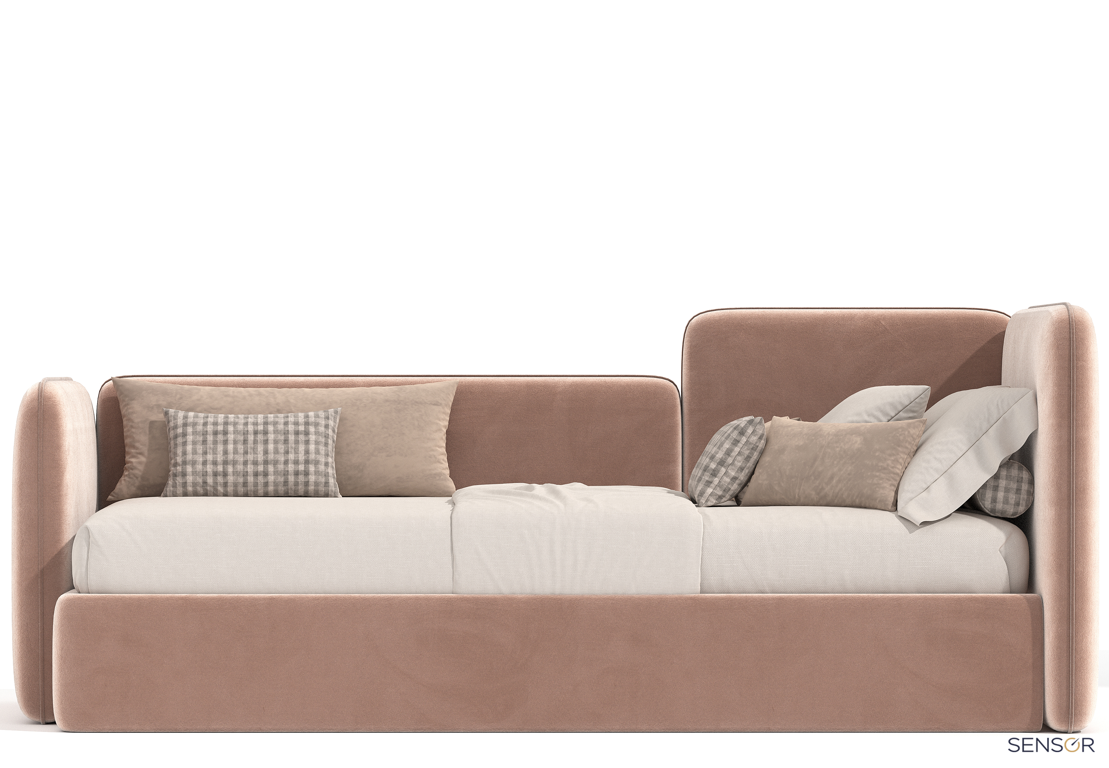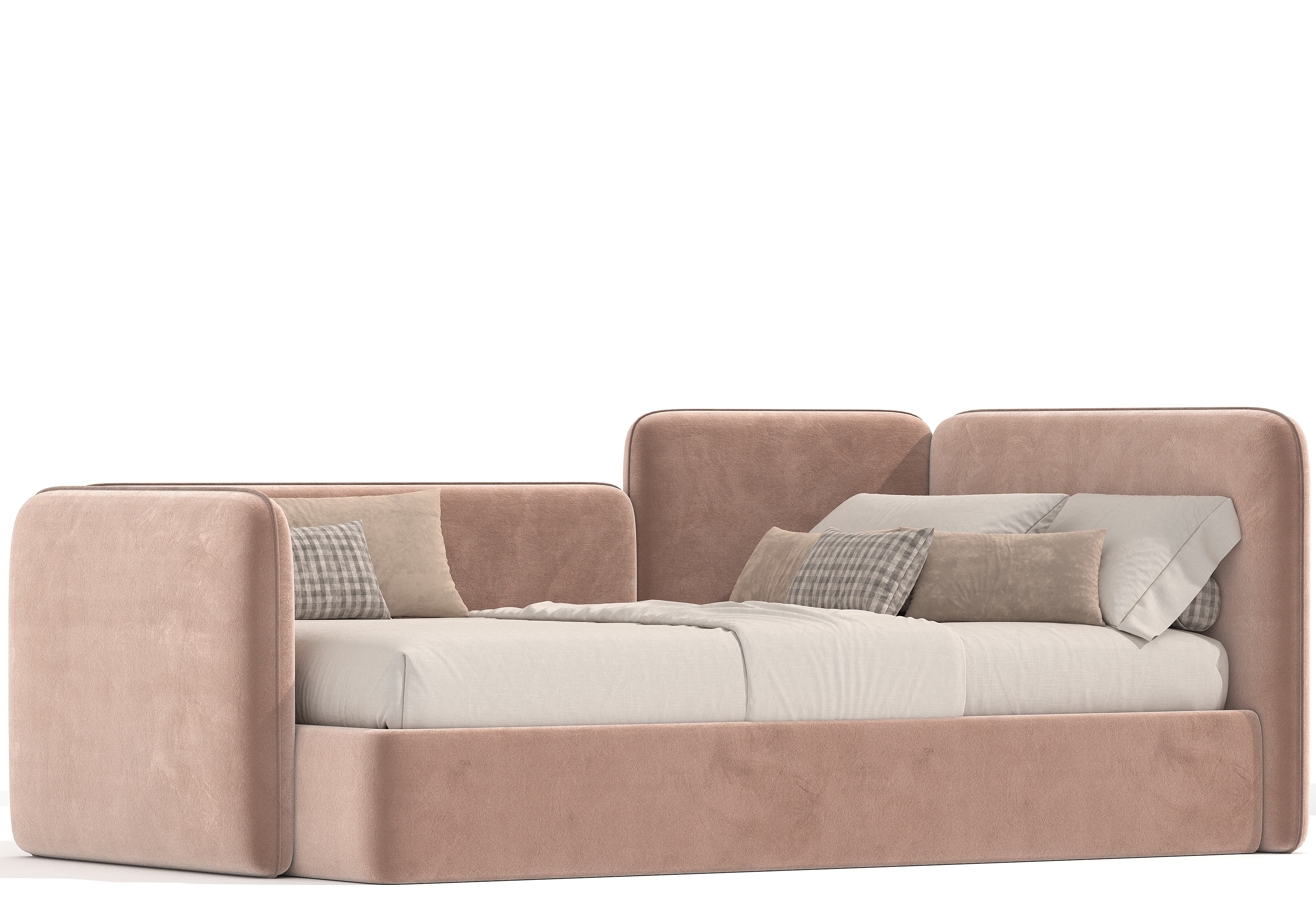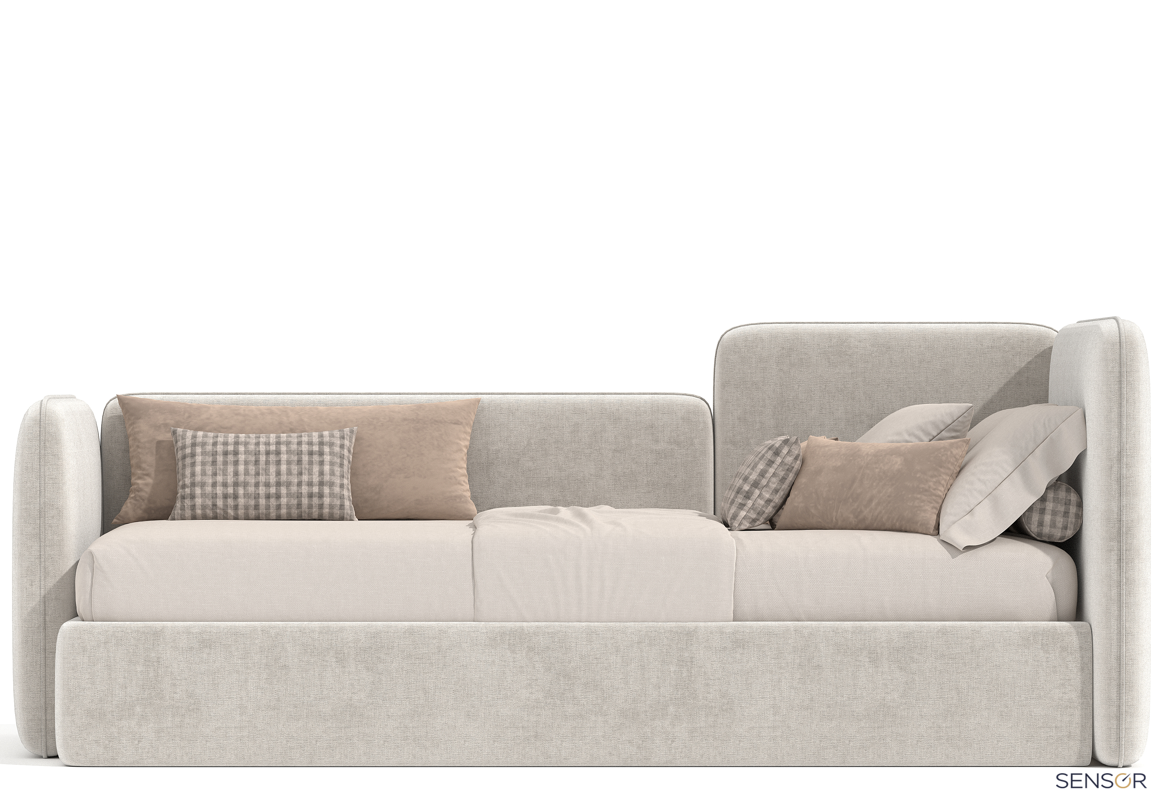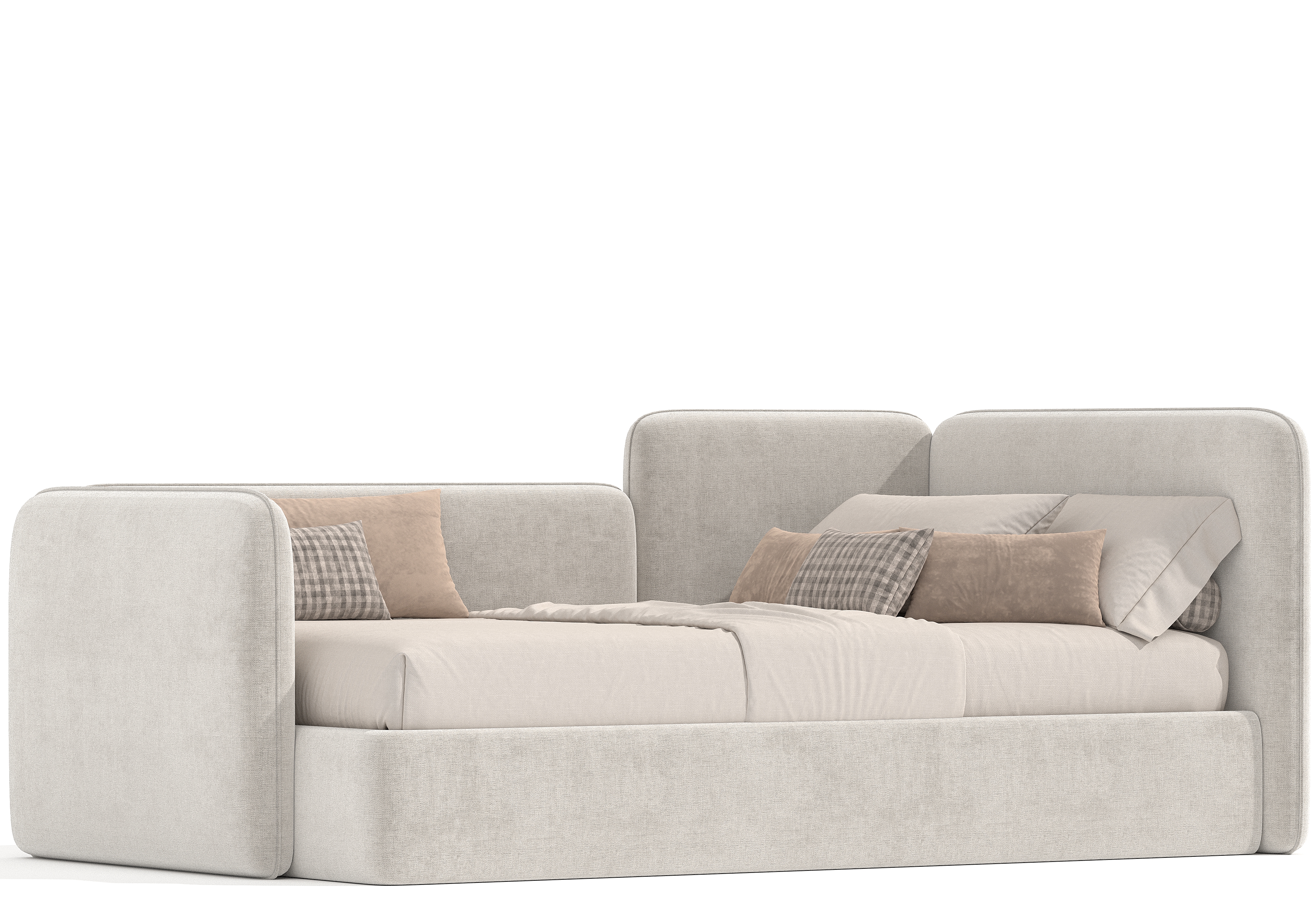 Угловая мягкая кровать Флит Дизайн Проект № 12. Спокойный, лаконичный дизайн, идеально впишется в любой интерьер современной детской. Данная модель подойдет для любого возраста, как для девочки так и для мальчика. Модель можно сделать как однотонной, так и с контрастным кантом по периметру спинок.