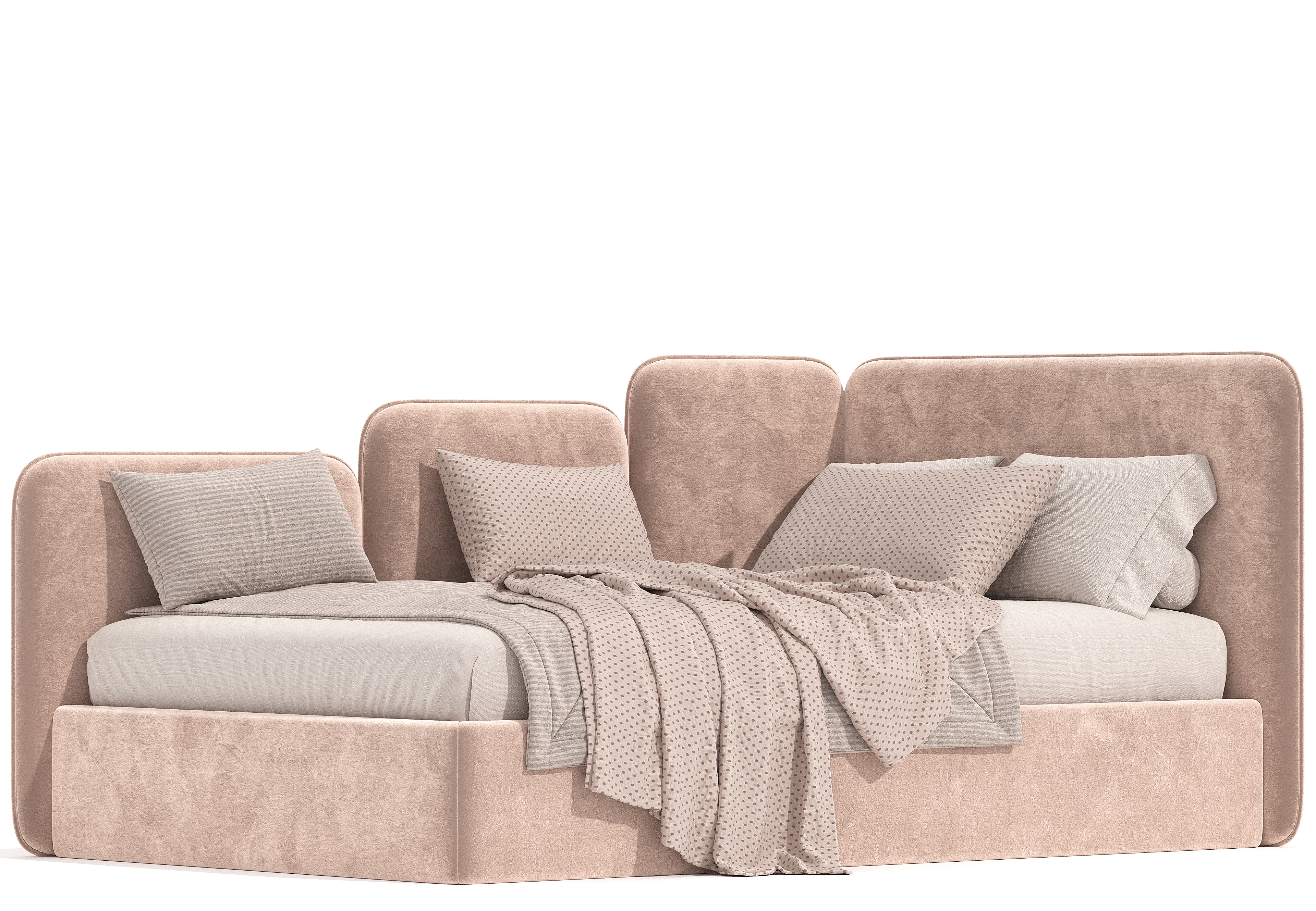 Угловая мягкая кровать Флит Дизайн Проект № 5. Спокойный, лаконичный дизайн, идеально впишется в любой интерьер современной детской. Данная модель подойдет для любого возраста, как для девочки так и для мальчика. Модель можно сделать как однотонной, так и с контрастным кантом по периметру спинок.
