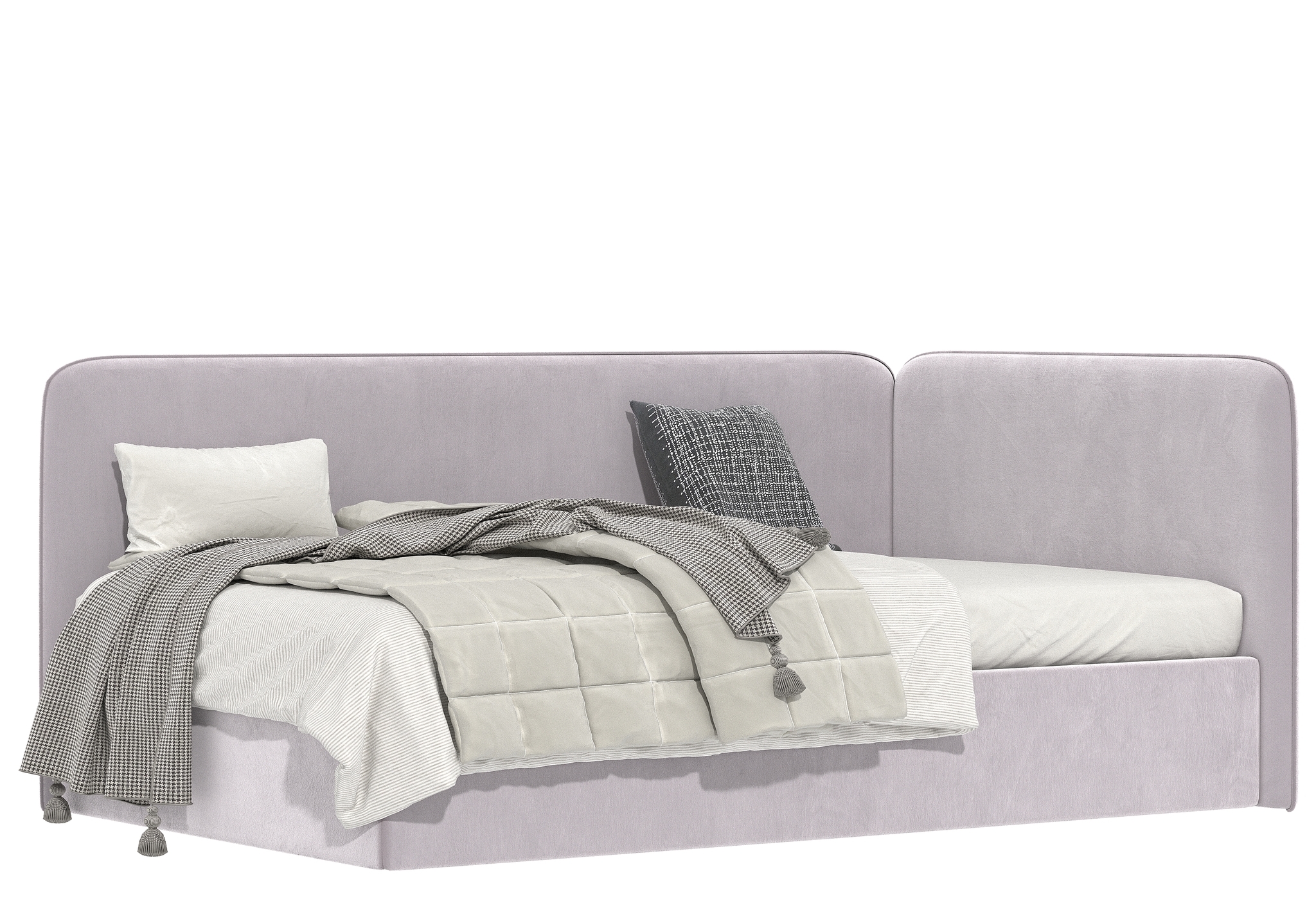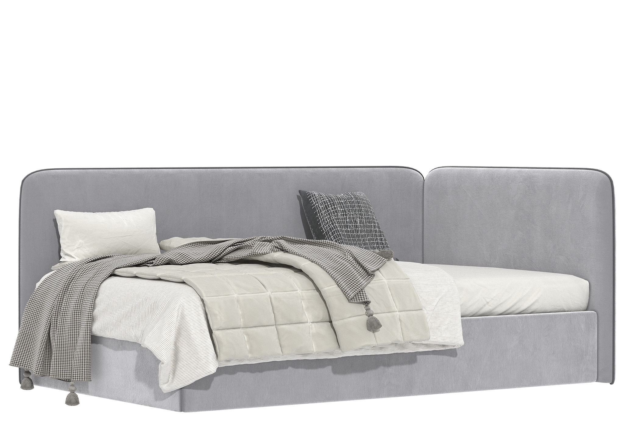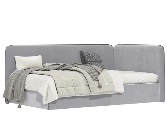 Угловая мягкая кровать Флит. Спокойный, лаконичный дизайн, идеально впишется в любой интерьер современной детской. Данная модель подойдет для любого возраста, как для девочки так и для мальчика. Модель можно сделать как однотонной, так и с контрастным кантом по периметру спинок.
