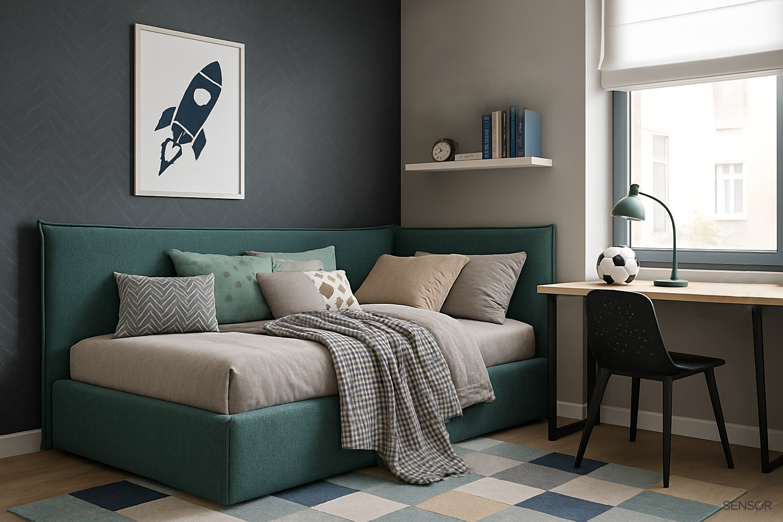 Угловая кровать Релакс - мягкая, удобная кровать идеально впишется в интерьер современной детской комнаты. Простой дизайн даёт возможность поиграть текстурами тканей, подобрать что то интересное из большого каталога дизайнерских тканей. Любую модель из каталога можно адаптировать под ваш запрос по размеру, ткани и другим характеристикам.