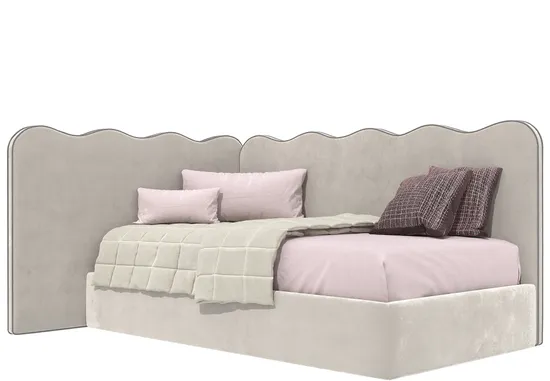 Угловая кровать Ривьера для современной детской комнаты. Детская вашего ребенка будет яркой и удобной, если вы делаете выбор в пользу изготовления кровати под ваш индивидуальный запрос. Правильно подобранная кровать задает тон всей комнате, обеспечивает ребенку здоровый отдых и сон. Самостоятельно создать дизайн мебели, выбрав цвет и материал обивки, вы получите стильный предмет интерьера премиум-класса, который станет украшением детской комнаты. Детская кровать, сделанная на нашем производстве, будет служить долгие годы благодаря прочной конструкции и материалам премиум-класса. Для заказа выберите модель из каталога или сбросьте свой дизайн проект, свяжитесь с менеджерами фабрики, и они помогут подобрать ткани по цвету и текстуре, сориентировать по размерам.