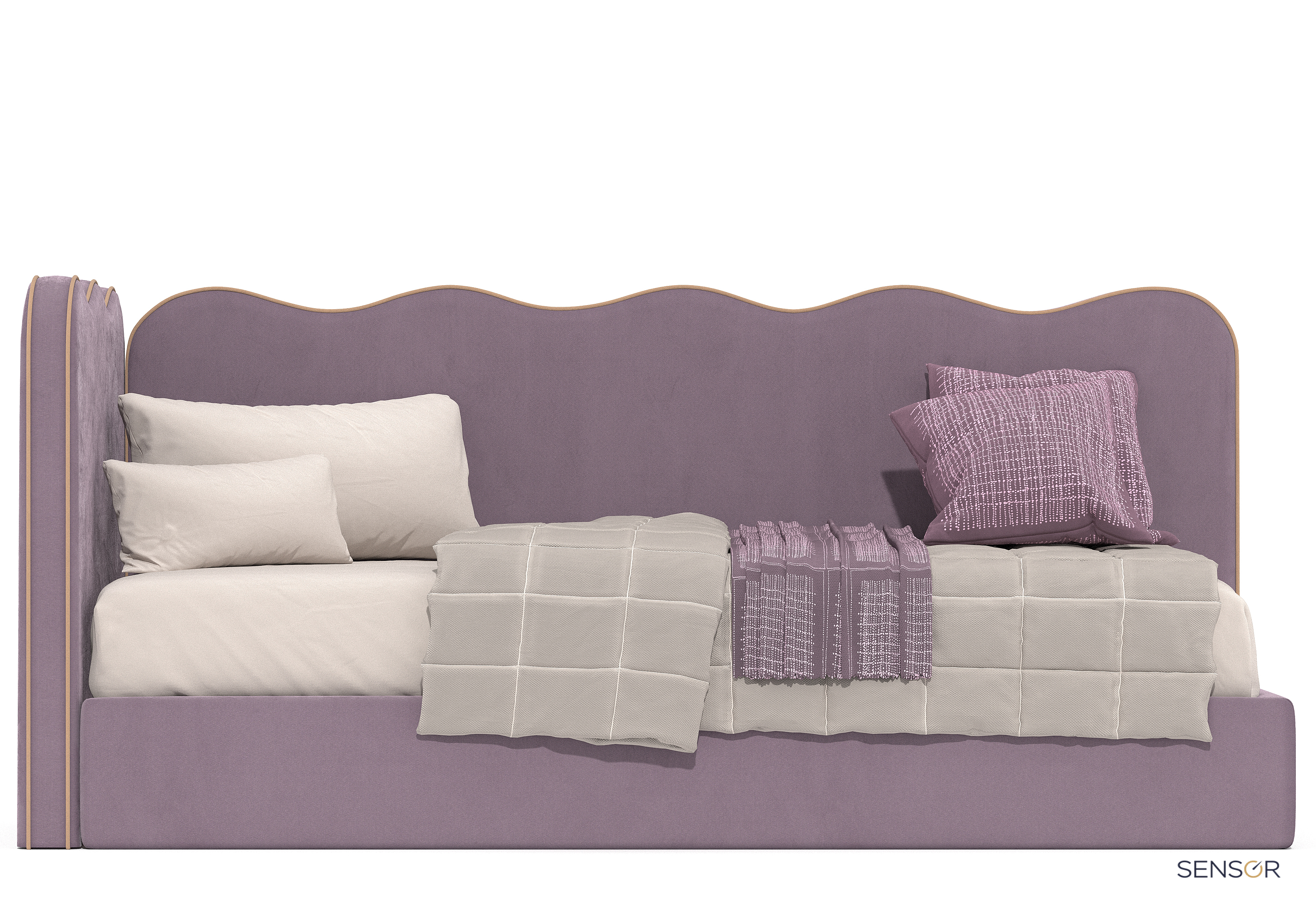 Угловая кровать Ривьера для современной детской комнаты. Детская вашего ребенка будет яркой и удобной, если вы делаете выбор в пользу изготовления кровати под ваш индивидуальный запрос. Правильно подобранная кровать задает тон всей комнате, обеспечивает ребенку здоровый отдых и сон. Самостоятельно создать дизайн мебели, выбрав цвет и материал обивки, вы получите стильный предмет интерьера премиум-класса, который станет украшением детской комнаты. Детская кровать, сделанная на нашем производстве, будет служить долгие годы благодаря прочной конструкции и материалам премиум-класса. Для заказа выберите модель из каталога или сбросьте свой дизайн проект, свяжитесь с менеджерами фабрики, и они помогут подобрать ткани по цвету и текстуре, сориентировать по размерам.