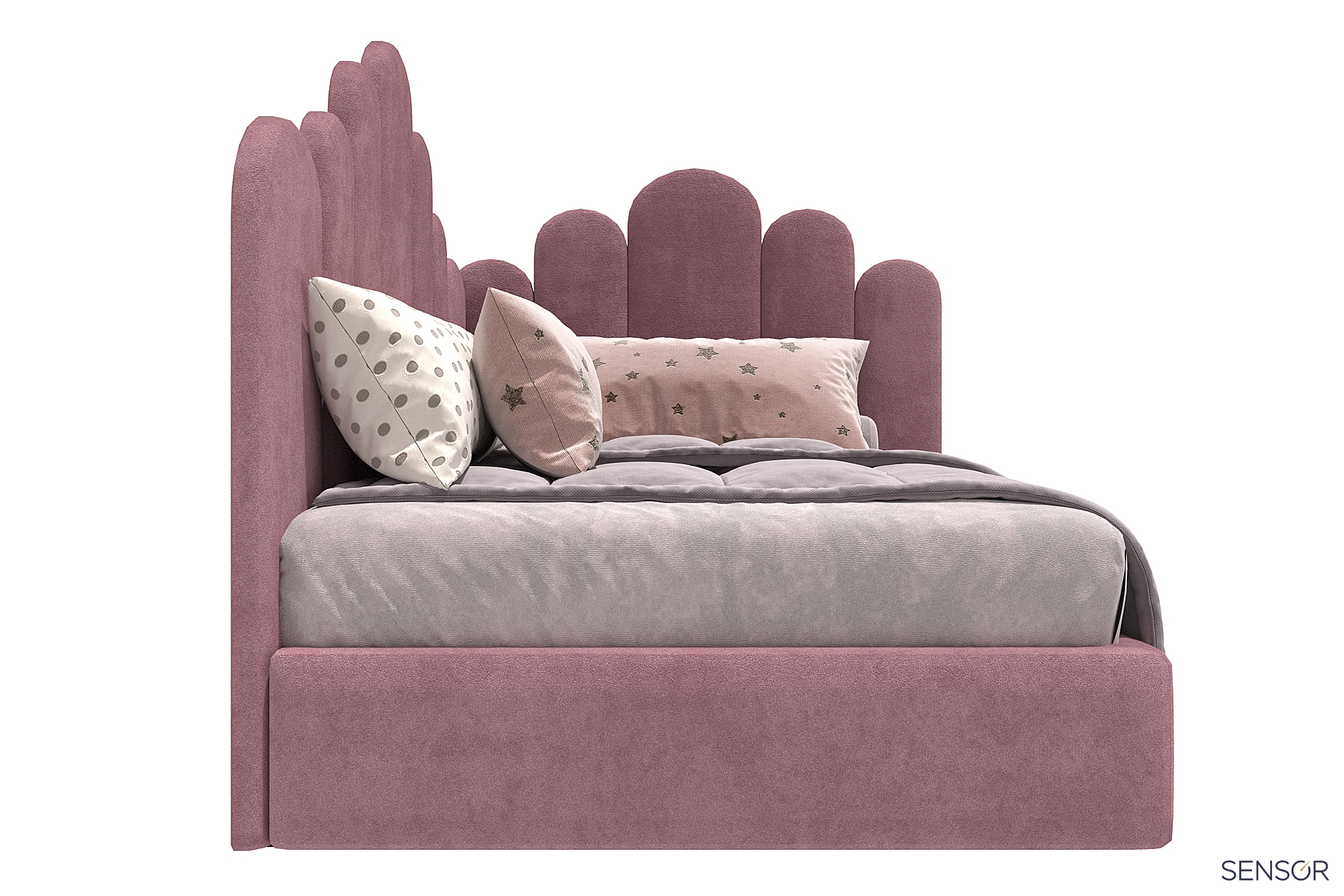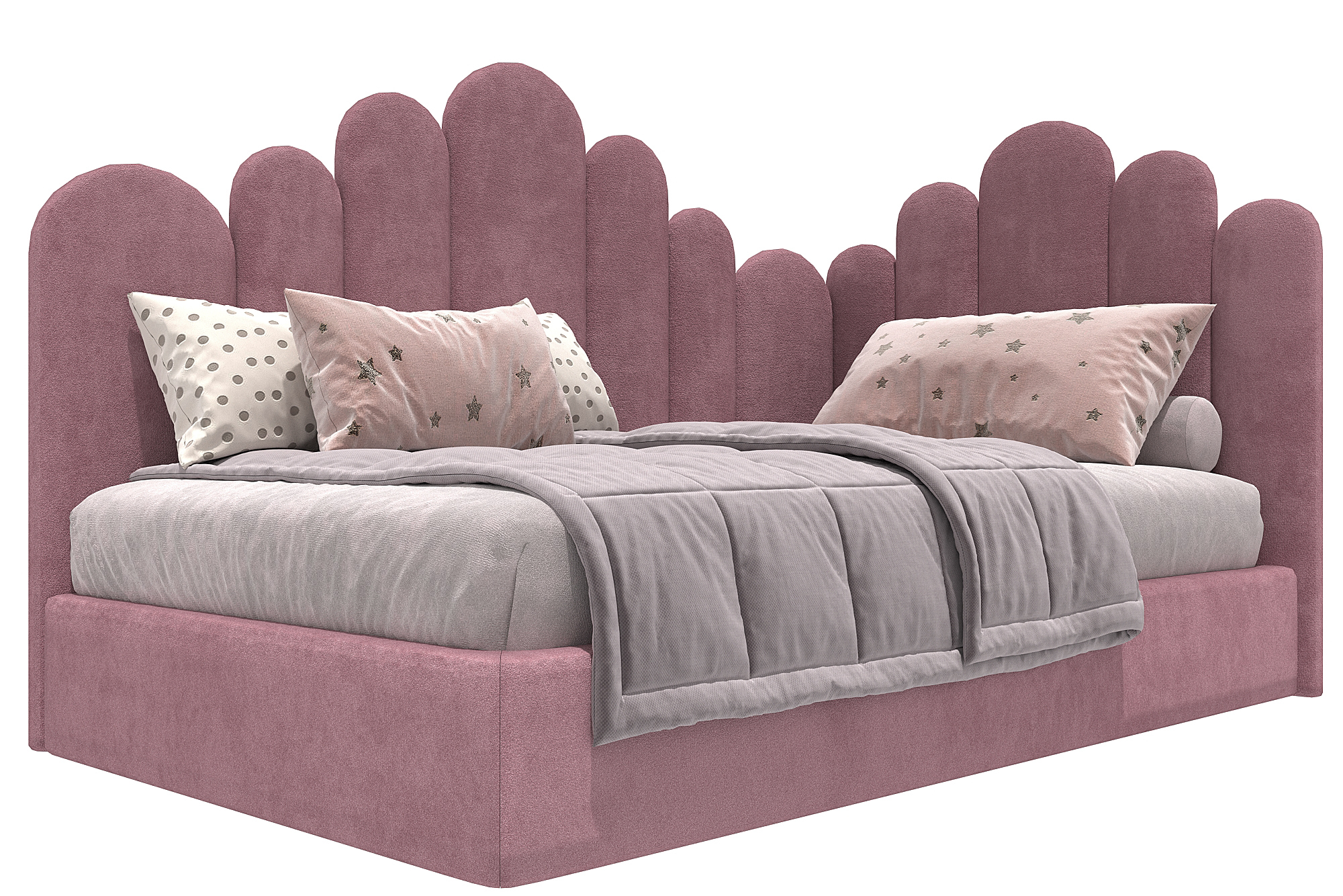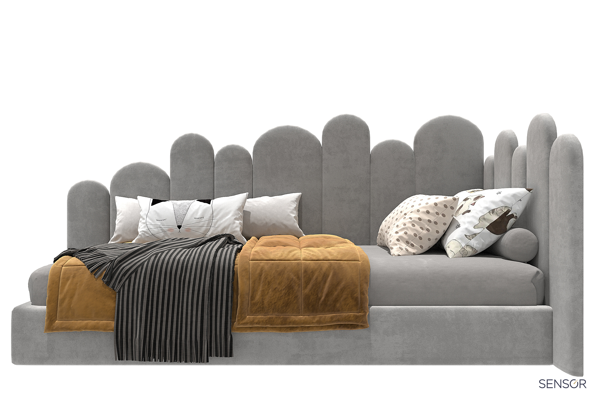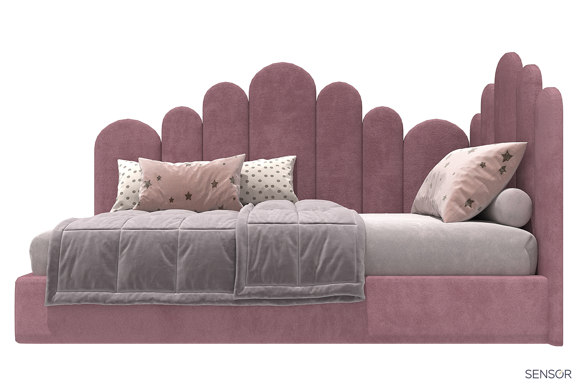 Угловая кровать Савоярди Дизайн kids - стильный, модный дизайн, сейчас в топе. Действительно, изделие смотрится очень мило, а детали спинок похожи на знаменитое печенье Савоярди. Здесь совместная креативная работа заказчиков, менеджера и конструктора. Данная модель украсит любую современную детскую. Детство должно быть ярким! На выбор широкий ассортимент дизайнерских тканей по цвету, текстуре.
