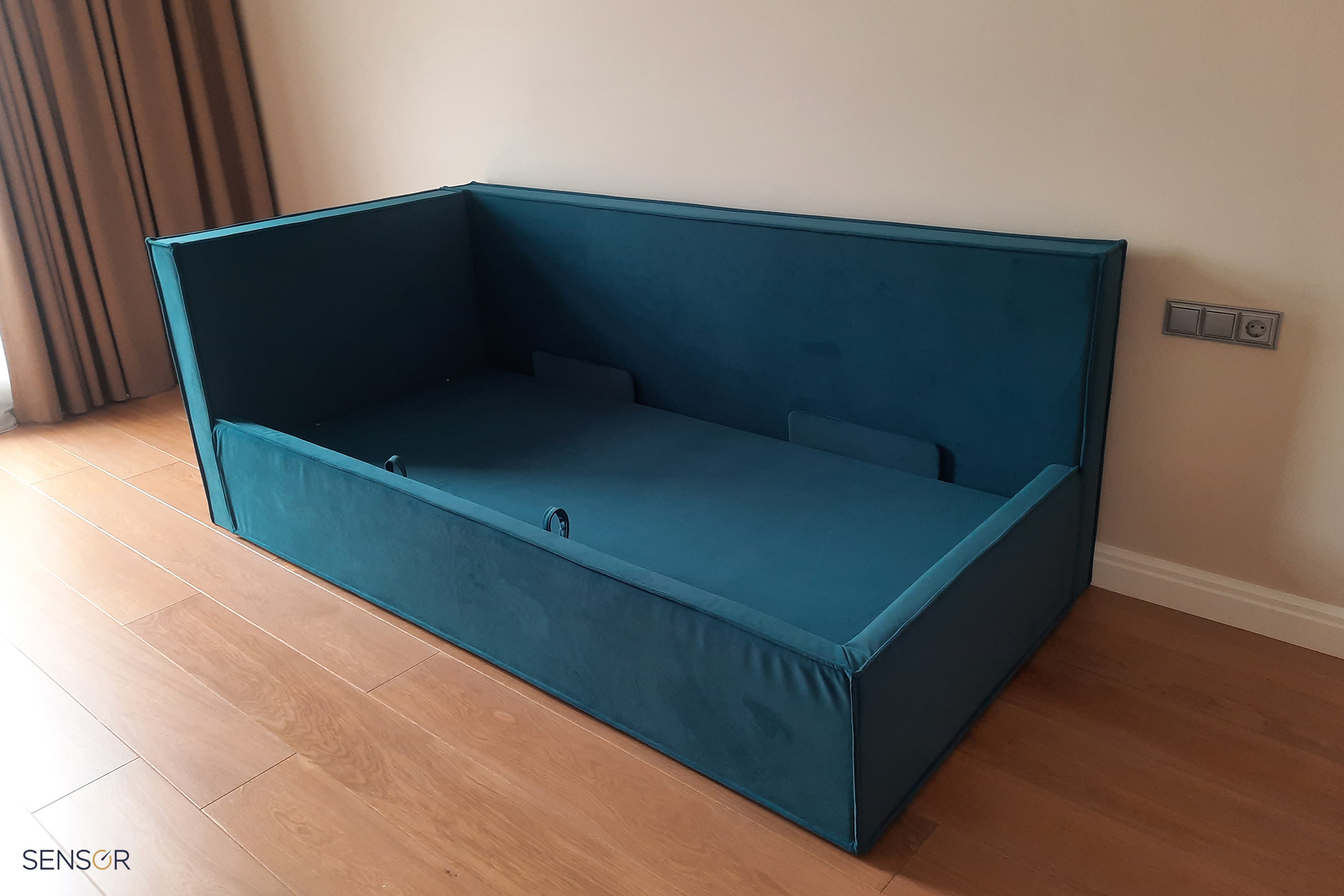Угловая кровать Сохо Кидс совмещает в себе три основных требования к кровати - функциональность, качество и эстетичность. Современный дизайн кровати позволяет ей органично вписаться в любые интерьерные решения детской. А индивидуальное изготовление даёт возможность подобрать не только цветовую гамму, но и любые размеры кровати.