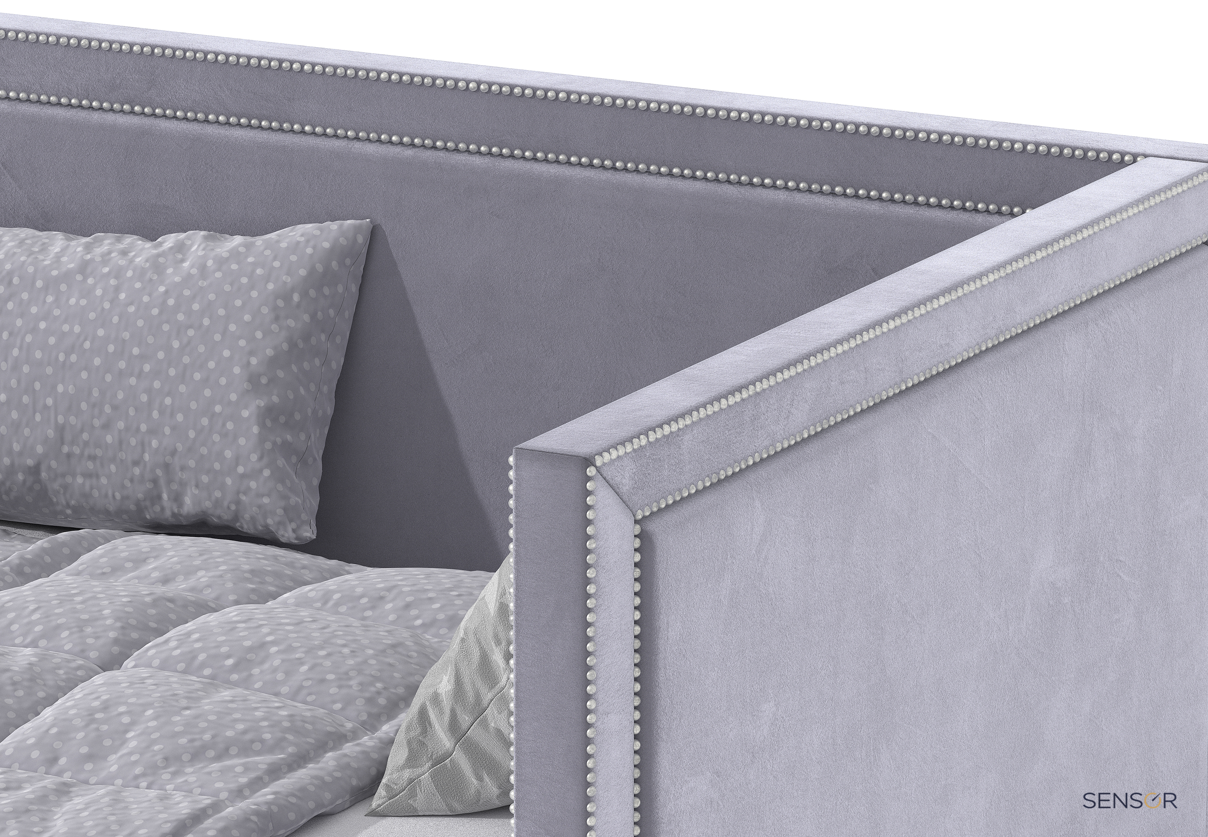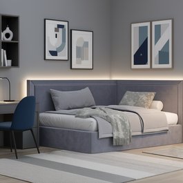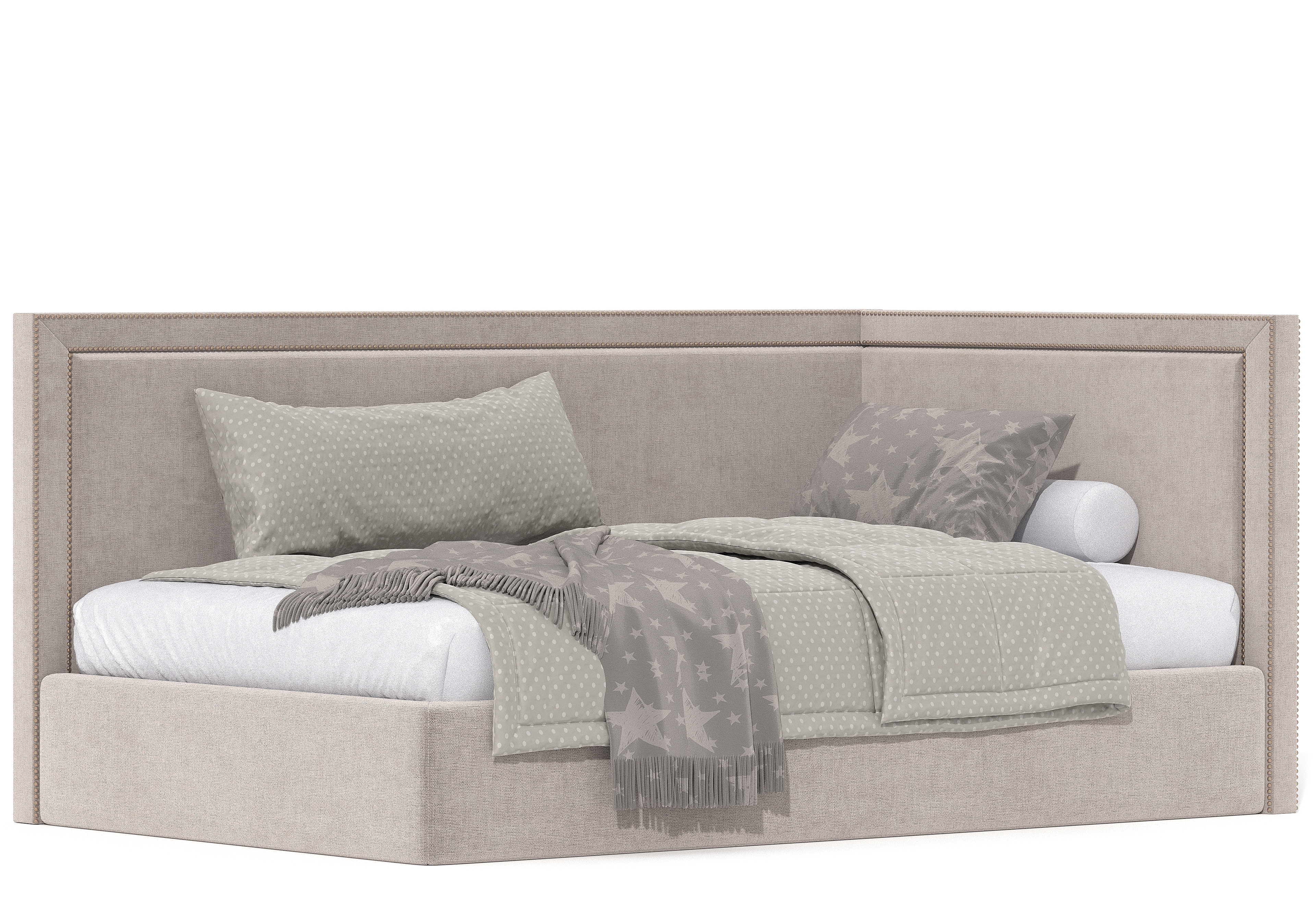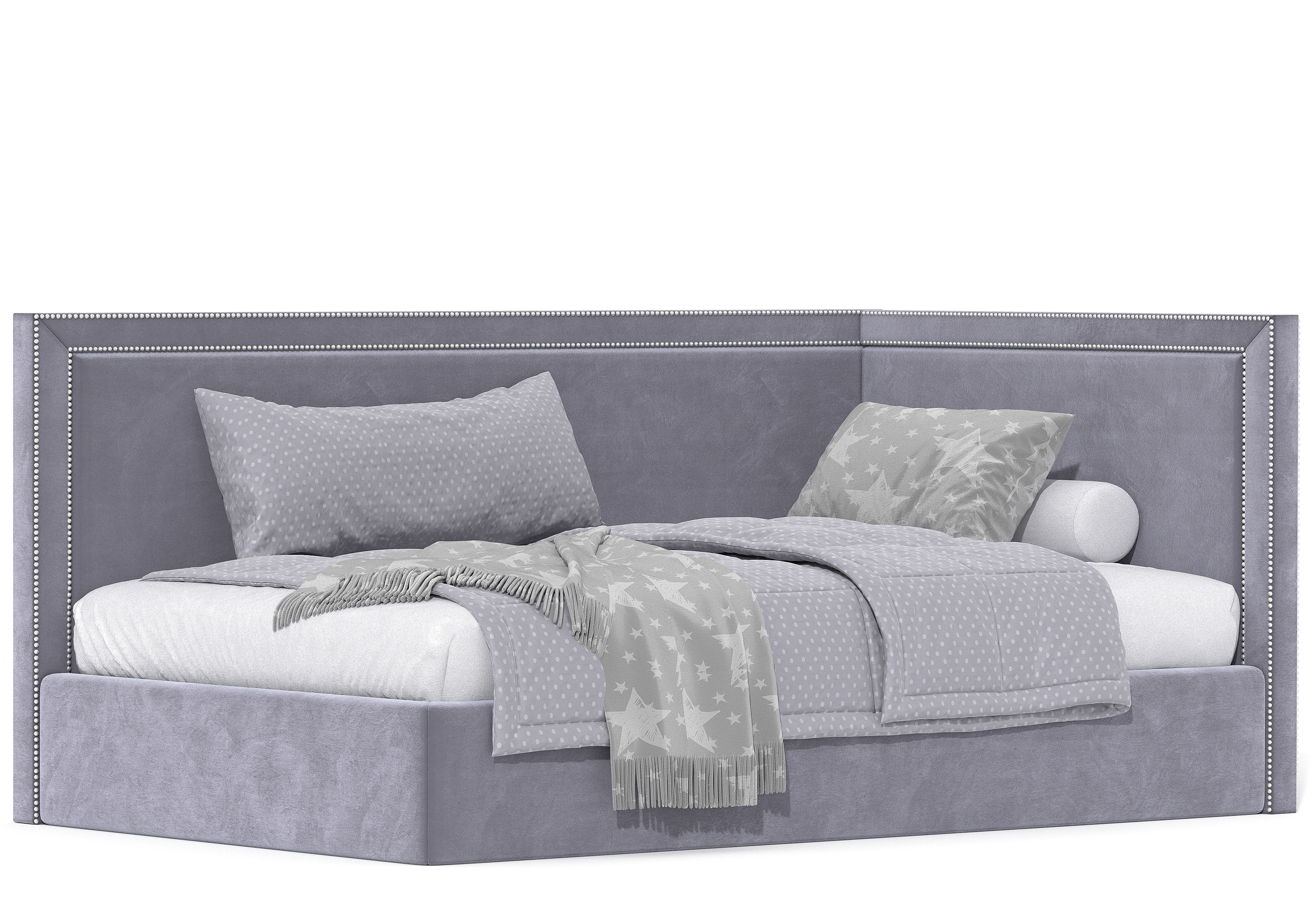 Угловая кровать Стелс kids с простым лаконичным дизайном. Основной изюминкой данной модели является декоративная отделка из металлических гвоздиков.
