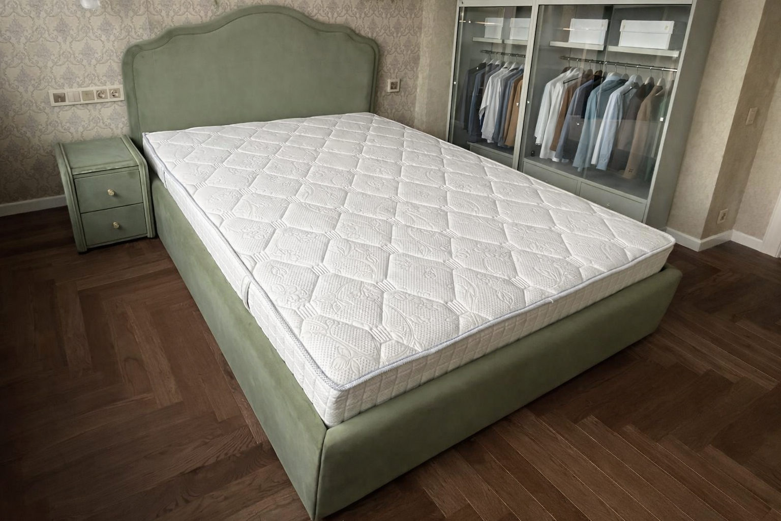 Интерьерная кровать Ванесса для современной спальни. Элегантная модель с мягкими плавными линиями изголовья. Универсальная модель прекрасно подойдет для мастер спальни, где молдинги на стене, красивая фреска или акцентные обои. Одно из преимуществ это небольшая высота изголовья, но при этом красивые изящные очертания изголовья смотрятся интересно, не проигрывая высоким акцентным изголовьям. Данная модель кровати украсит и детскую комнату, подчеркнет в ней нежность, главное подобрать цвет ткани. Изготовление мягкой кровати на заказ дает много преимуществ. Вы имеете возможность выбрать ткань по цвету и текстуре из огромного каталога дизайнерских тканей. Любую модель кровати можно адаптировать по размерам под вашу спальню.