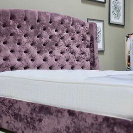 Кровать Винтаж Премиум - уютное изголовье, за счет боковых ушек создается эффект защищенности и комфорта. На данном изголовье можно увидеть технику каретной стяжки, что придает ему особую роскошь и богатство. Премиум кровать выполнена в ткани Crush. Ворс этого микровелюра замят в различных направлениях, что дает неповторимый «морозный эффект». Технология предполагает, что данный результат не поддается систематизации, ворс всегда ложится по-разному, получаем неоспоримый плюс - некую индивидуальность. В мире существуют дорогие велюры с таким же свойством, а мы предлагаем достойную, доступную и красивую альтернативу.
